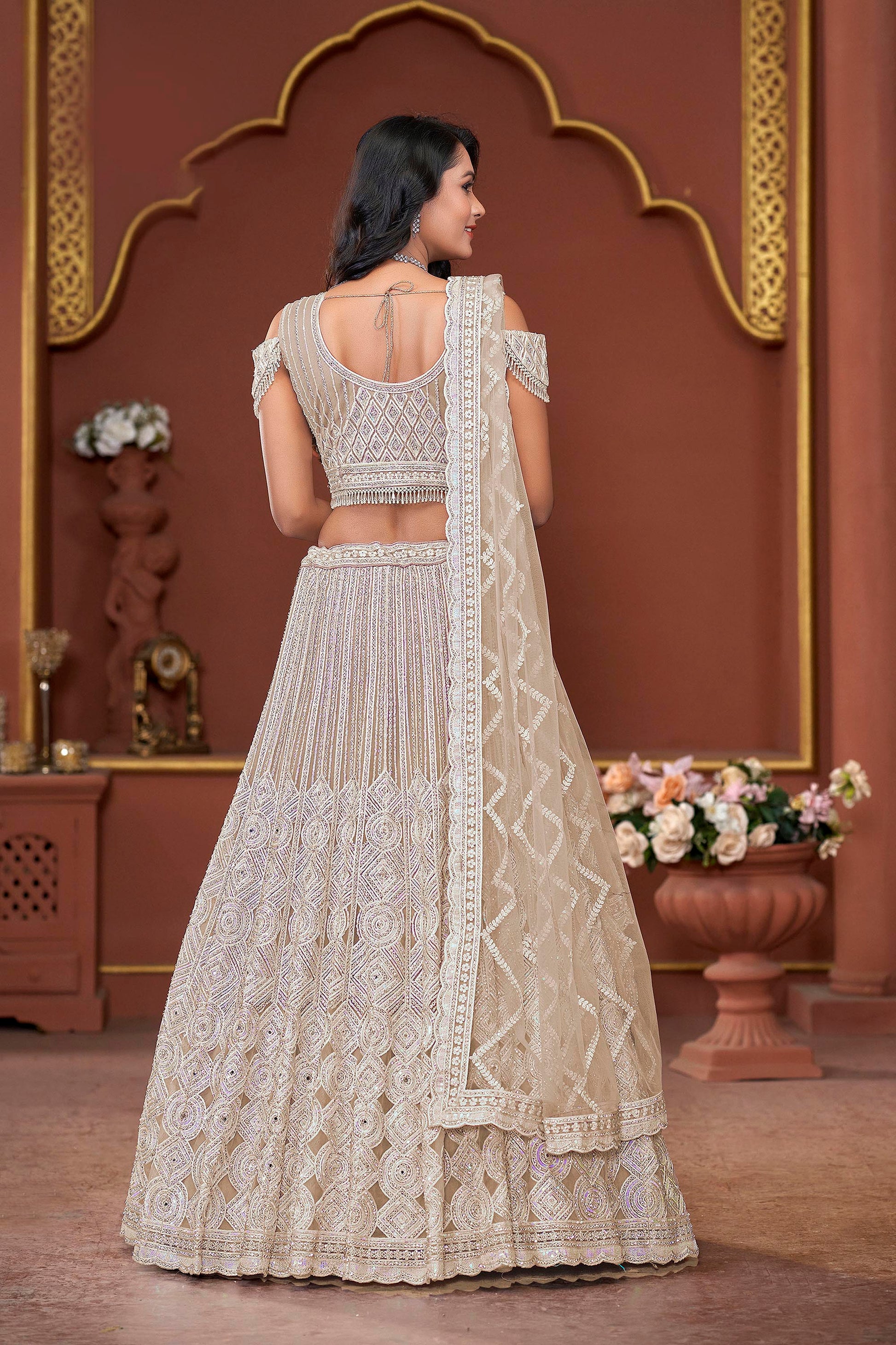 Chiku Heavy Mirror & Sequence Embroidery Net Wedding Guest Lehenga