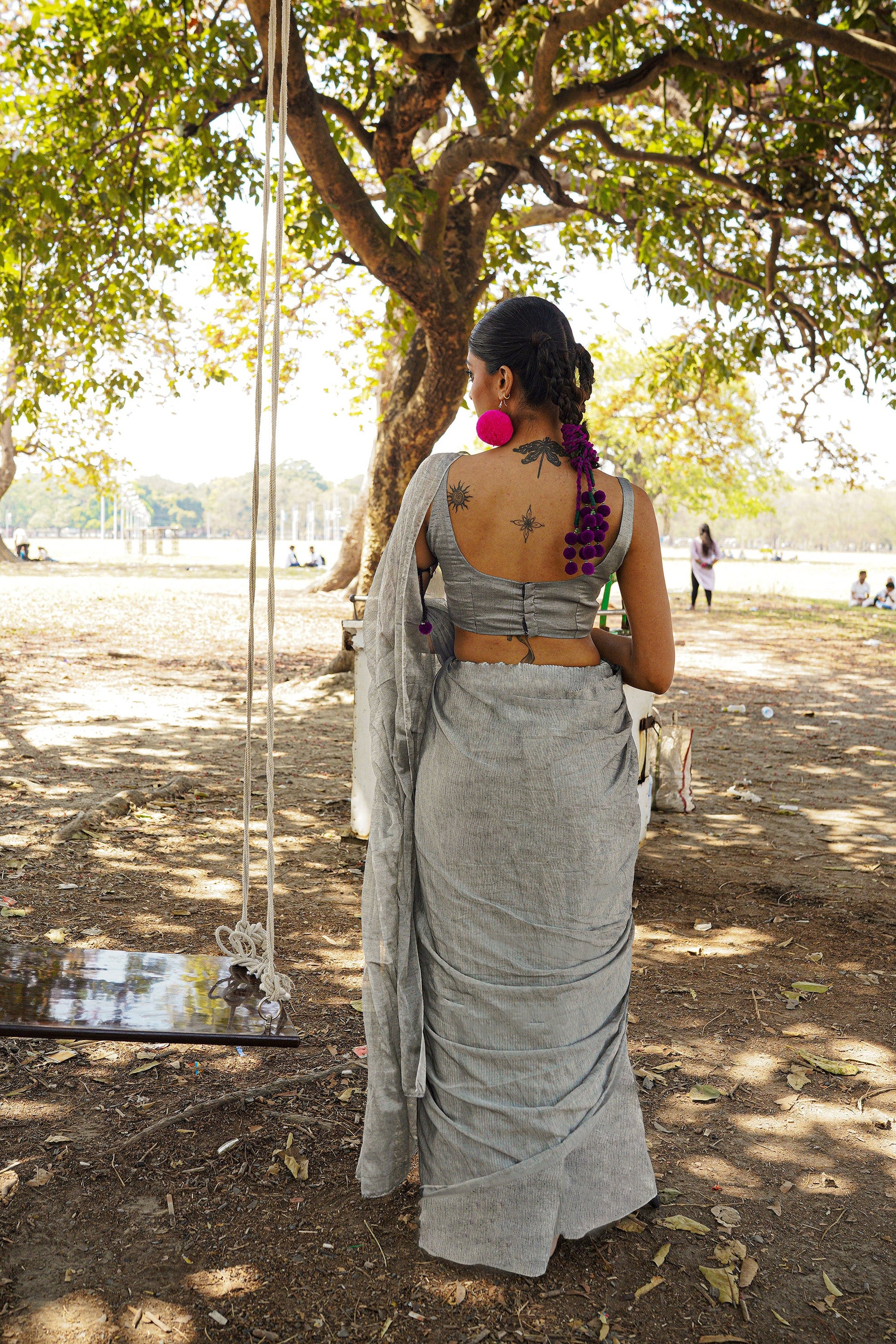 Cola Ice Gola | Grey Handloom Cotton Silk Saree