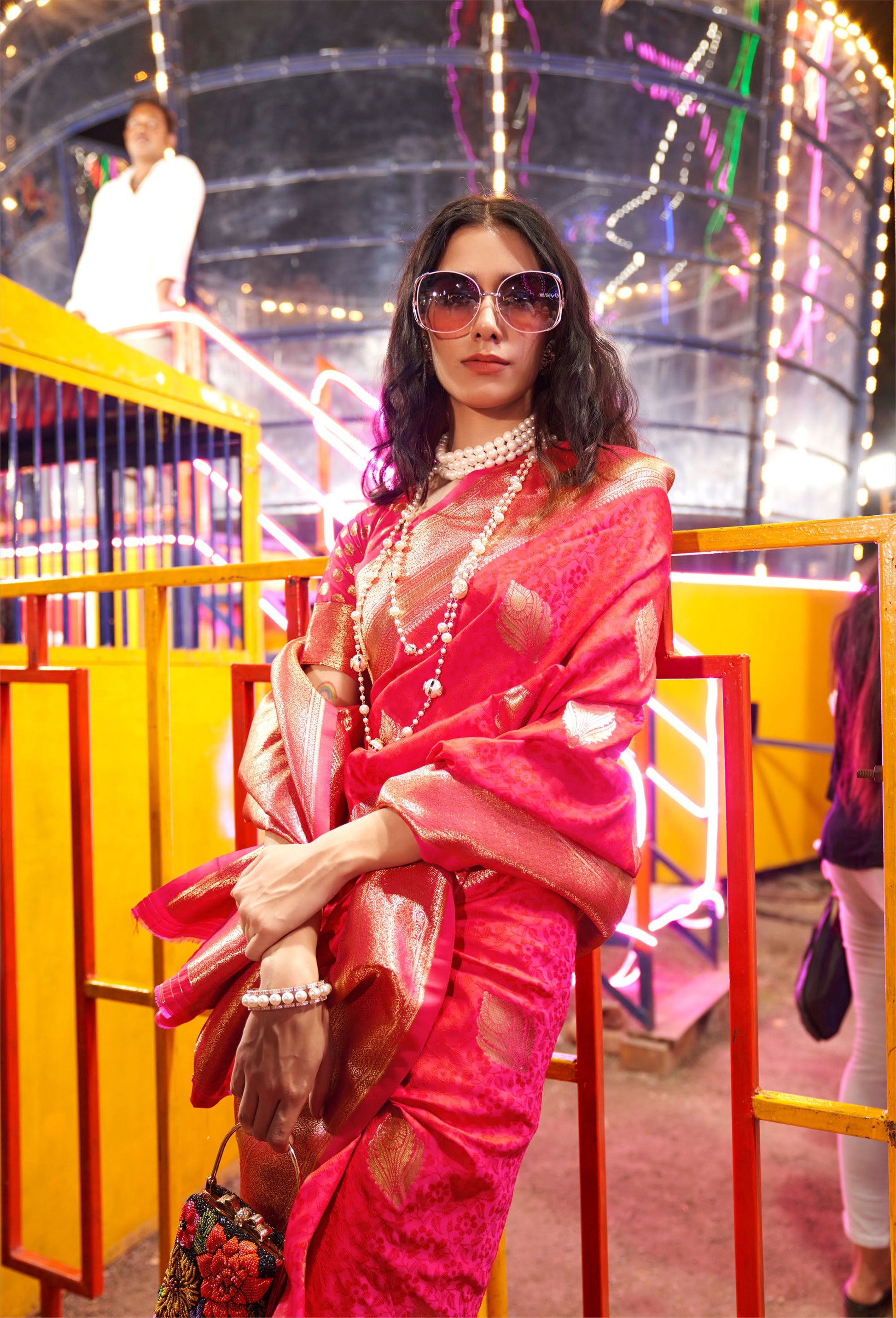 Does your wardrobe need more versatility? Then, check out this. Let your skin feel the refreshing touch as you adorn this superior-quality lightweight Saree to match the overall modest design.