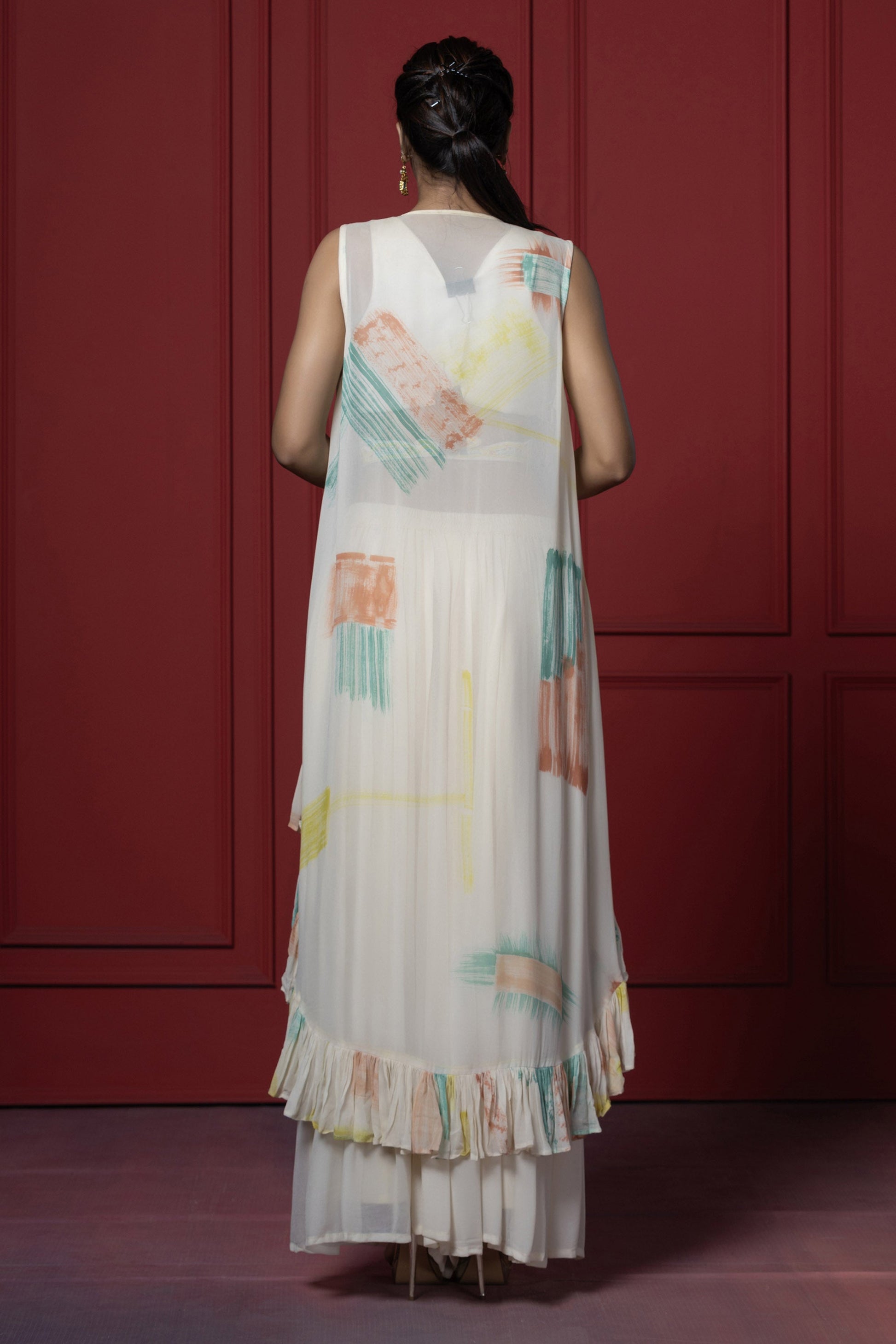 Cream Georgette Brush Dye Jacket Set