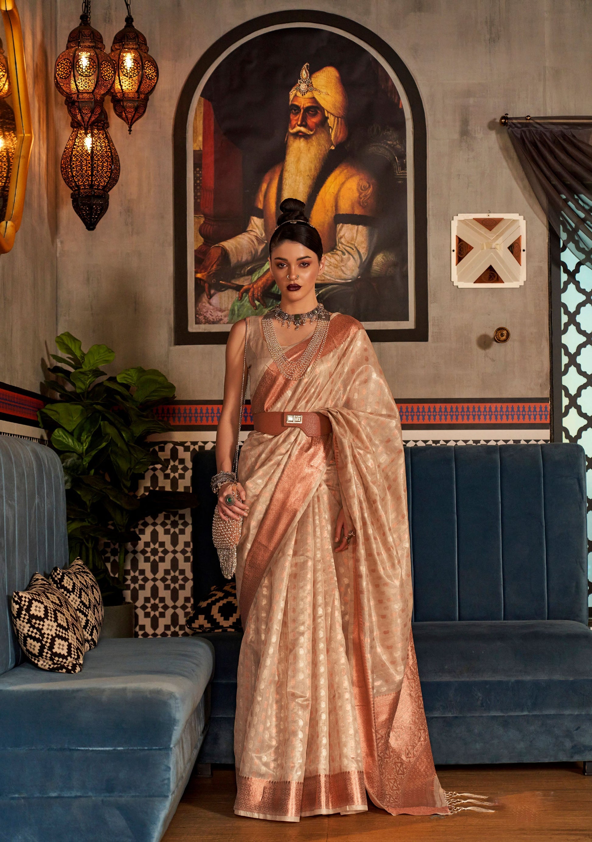 Cream Karshini Silk Tissue Zari Handloom Saree