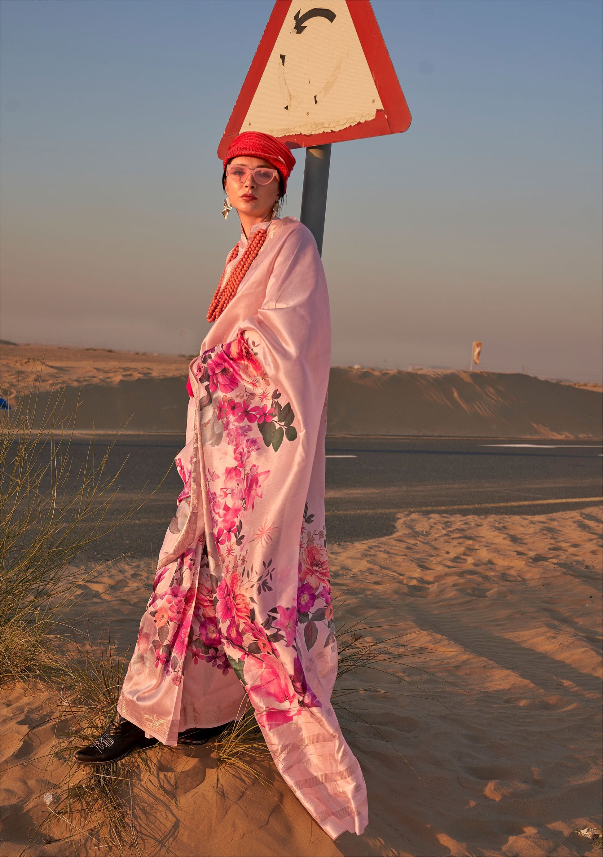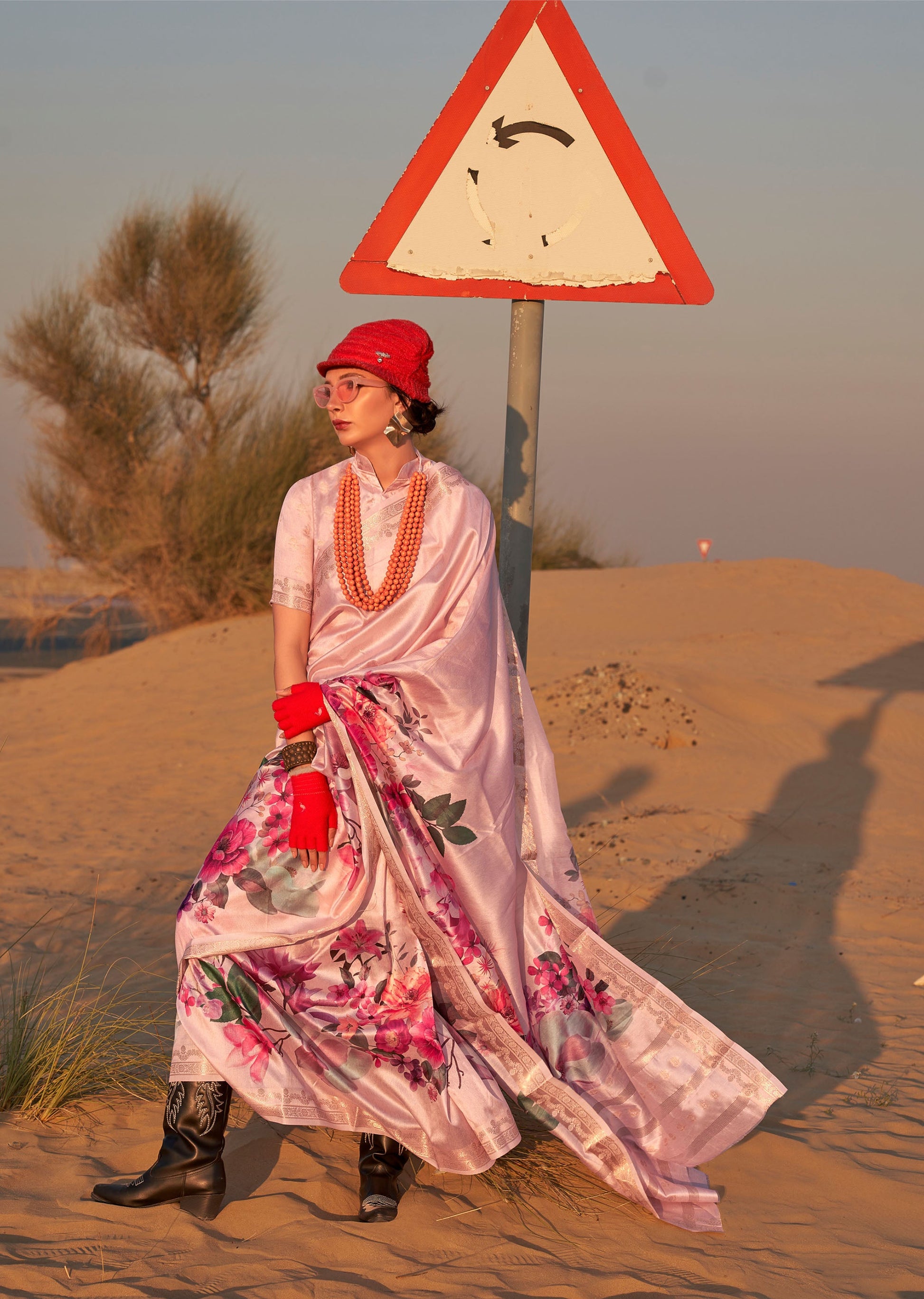Does your wardrobe need more versatility? Then, check out this. Let your skin feel the refreshing touch as you adorn this superior-quality lightweight Saree to match the overall modest design.