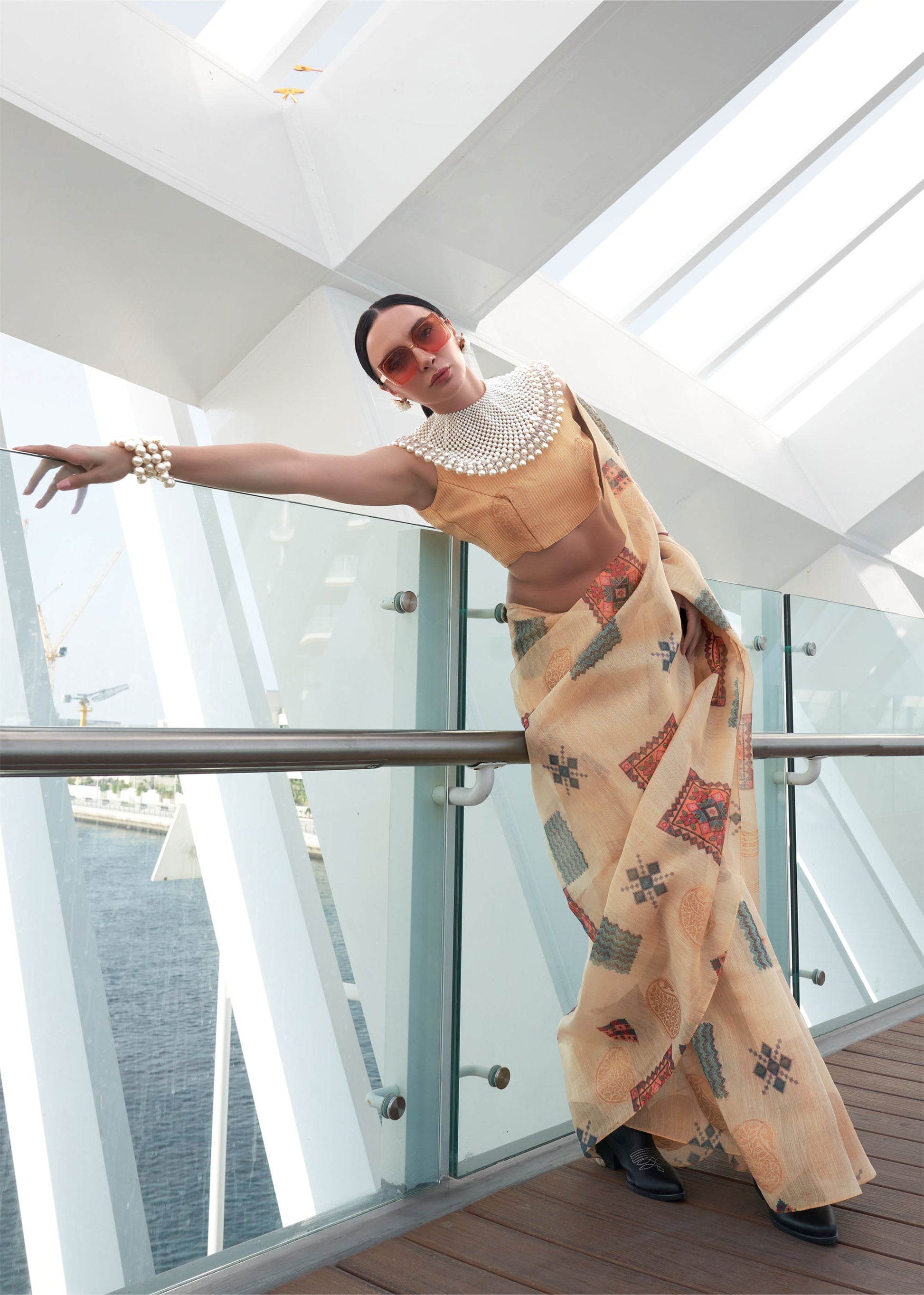 Cream Kroma Zari Tissue handwoven Printed Silk Saree