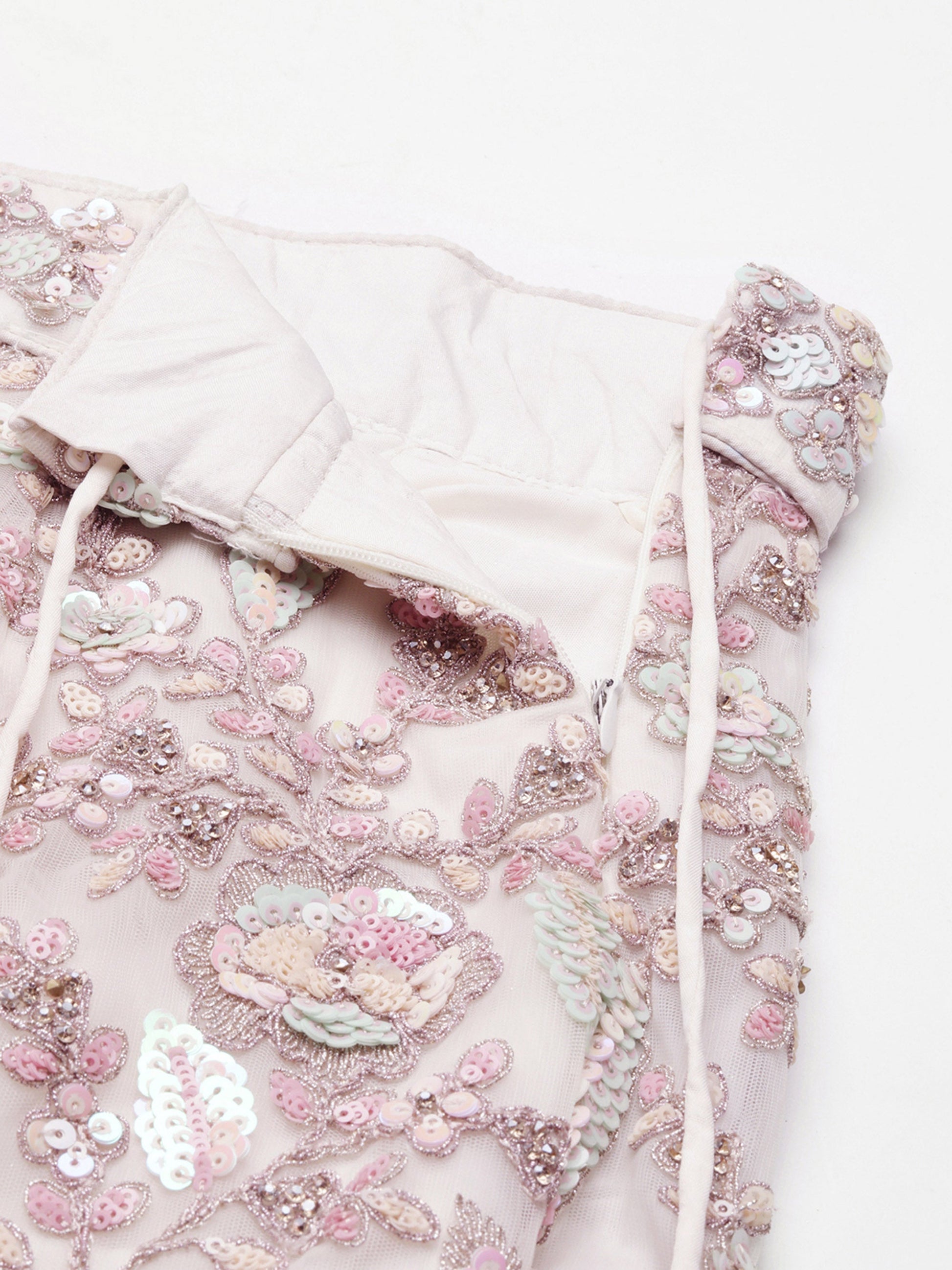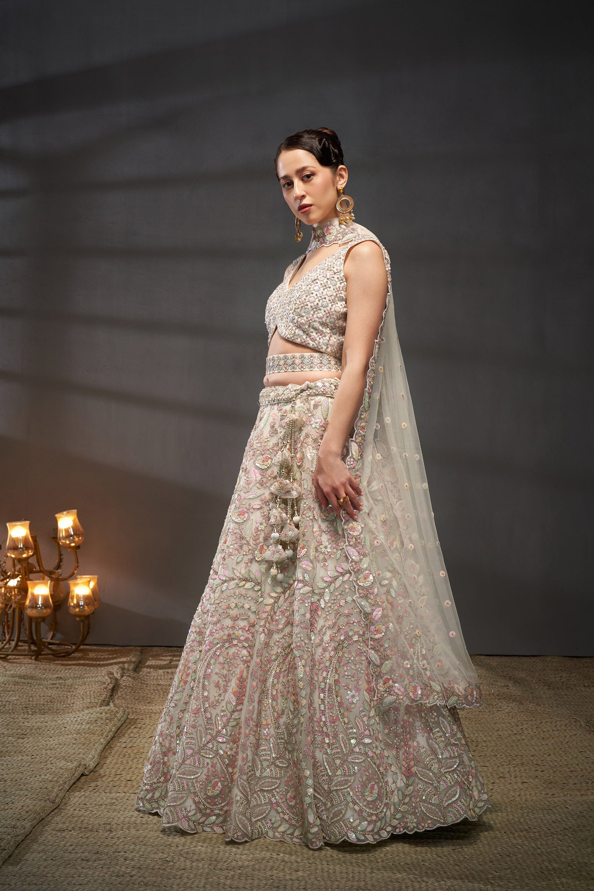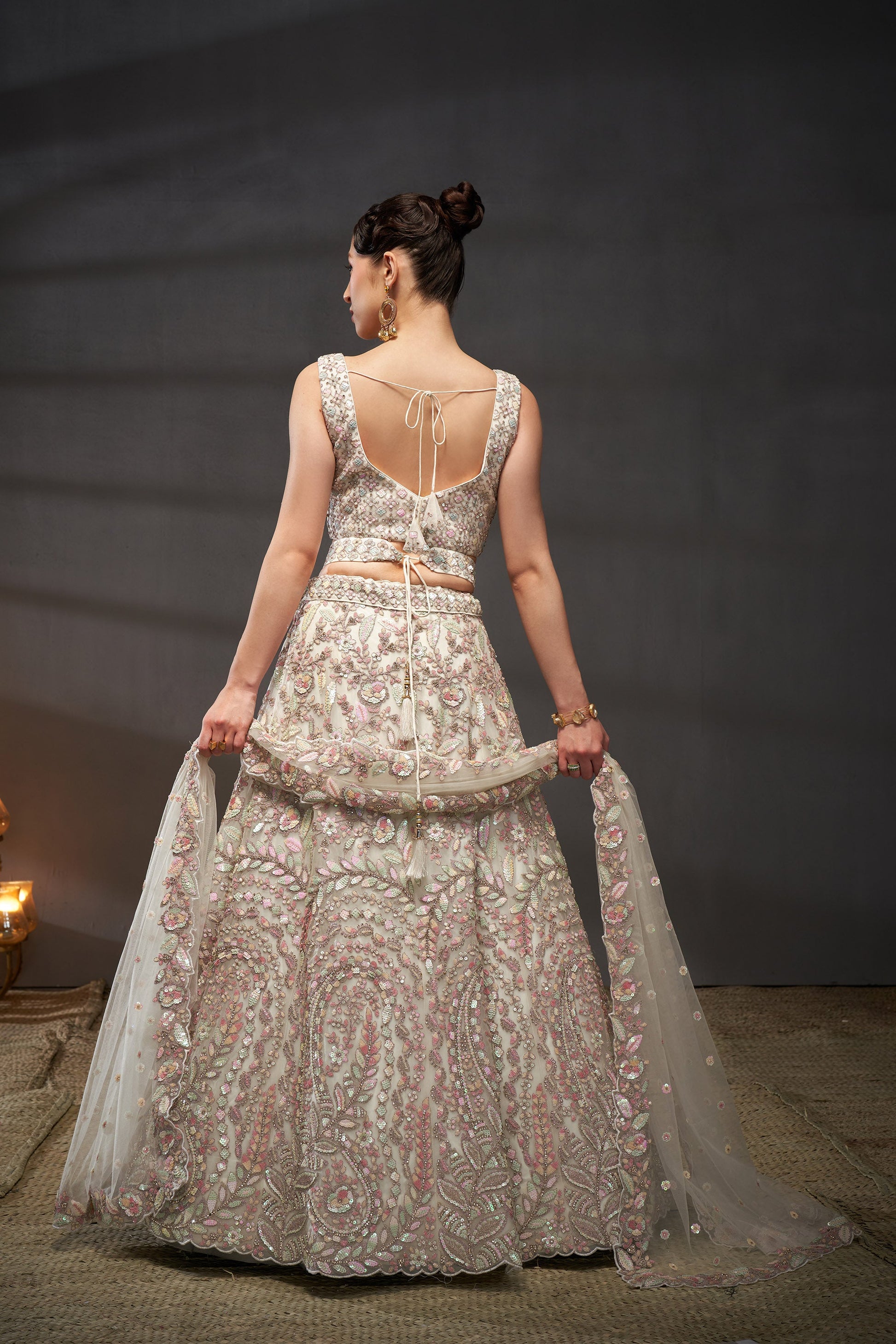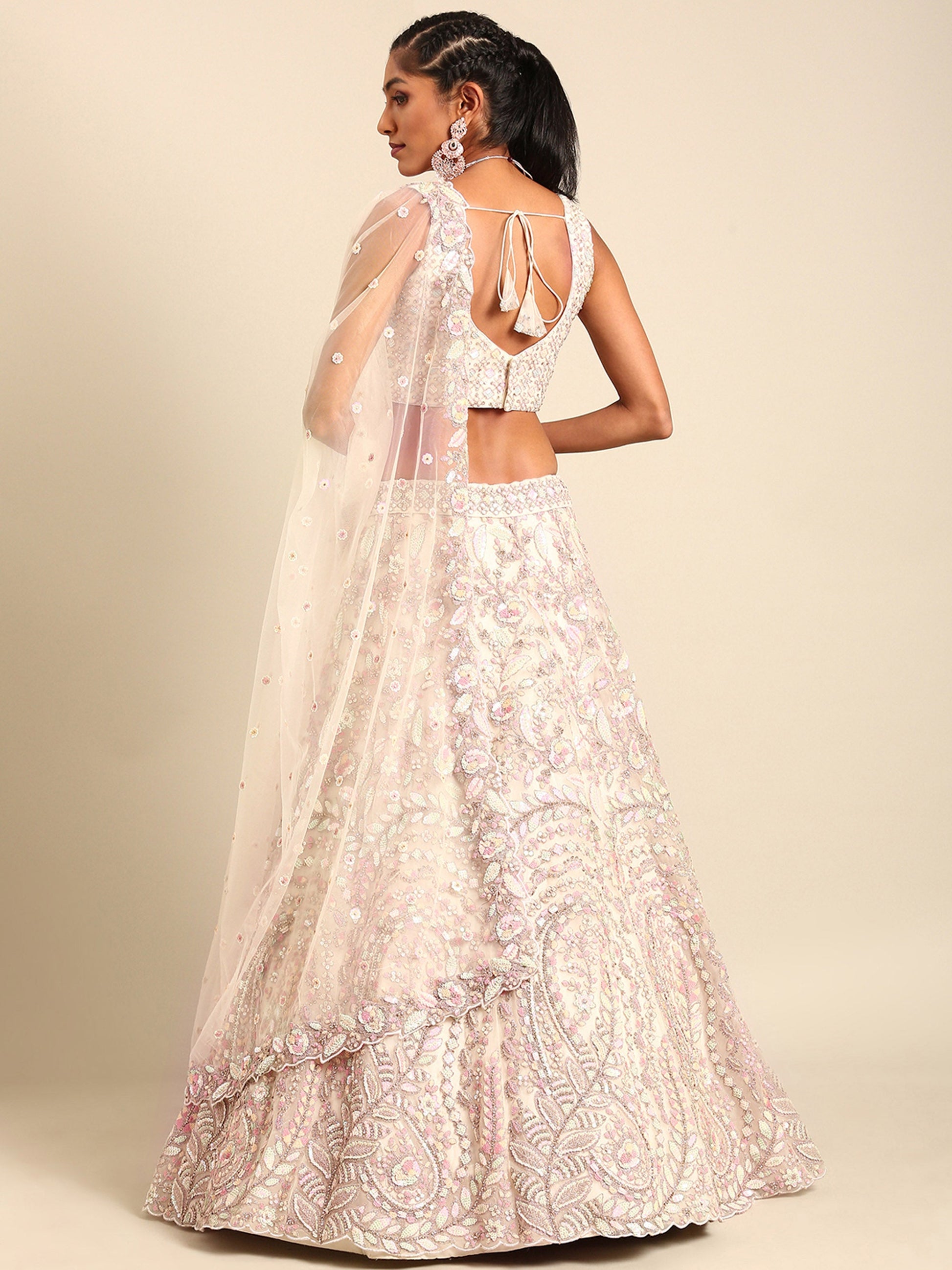 Cream Net Multi Sequins Embroidery Bridesmaid Lehenga