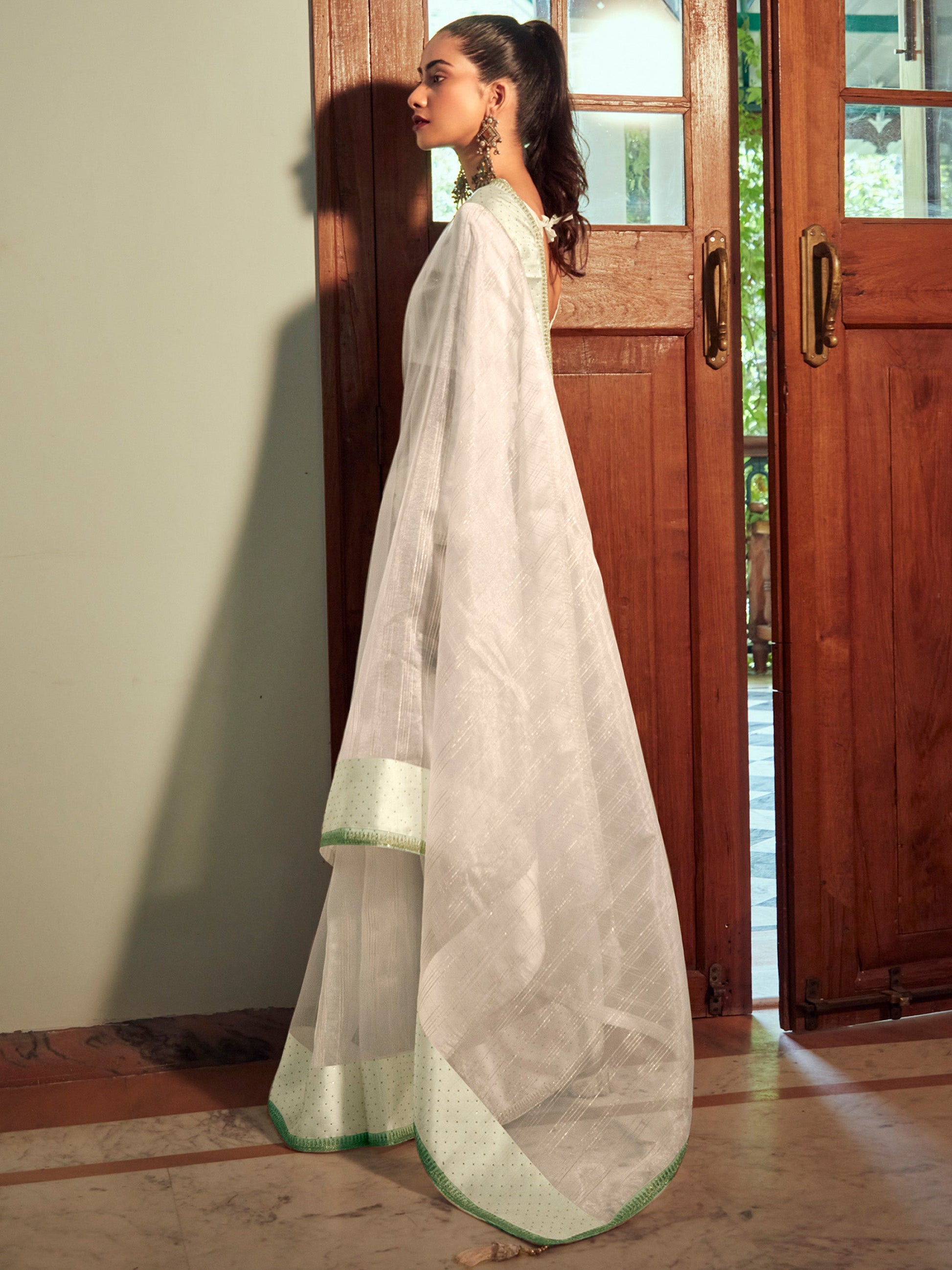 Cream Organza Woven Style Saree