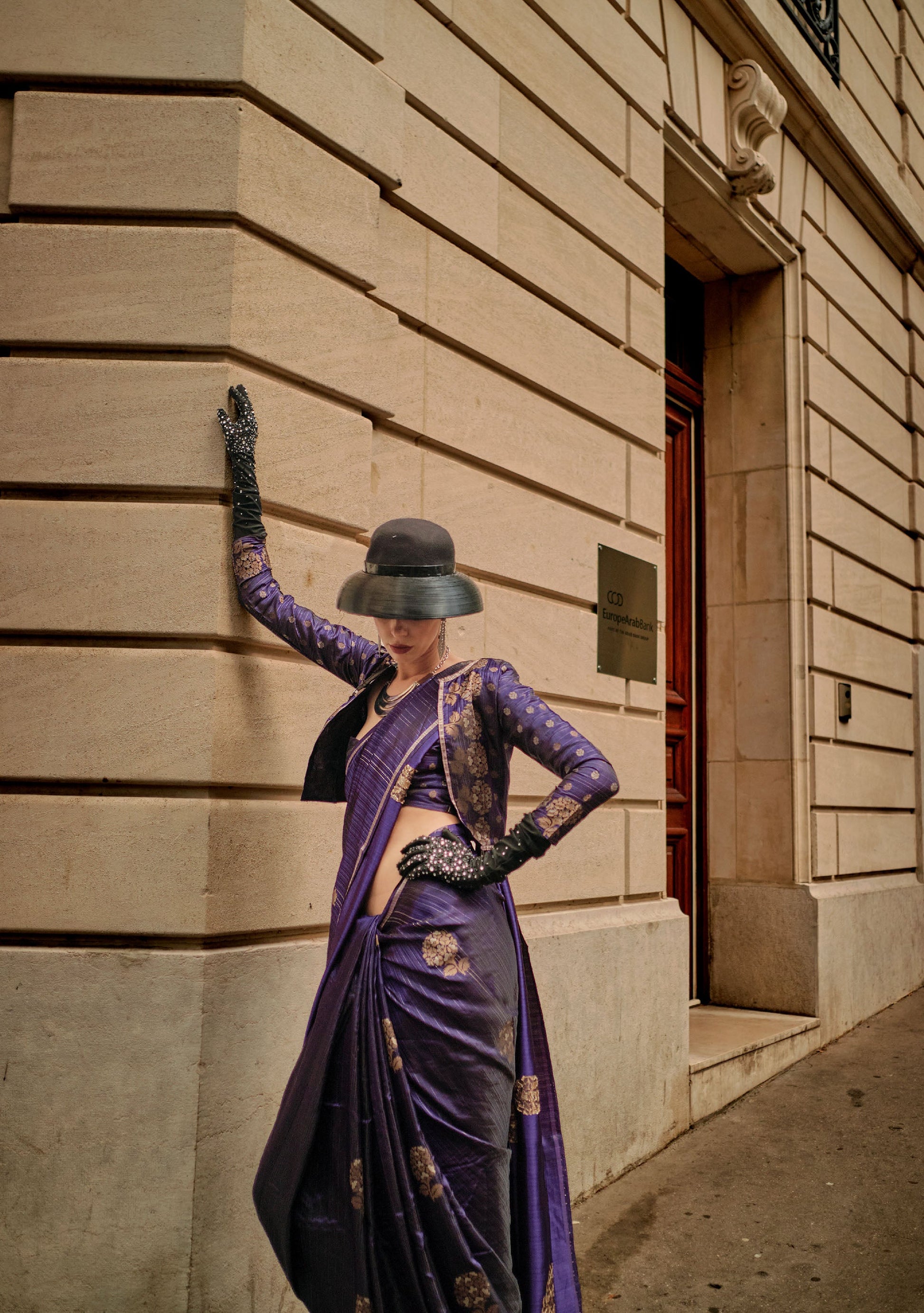 Dark Blue Kronicle Pure Satin Zari Handloom Saree