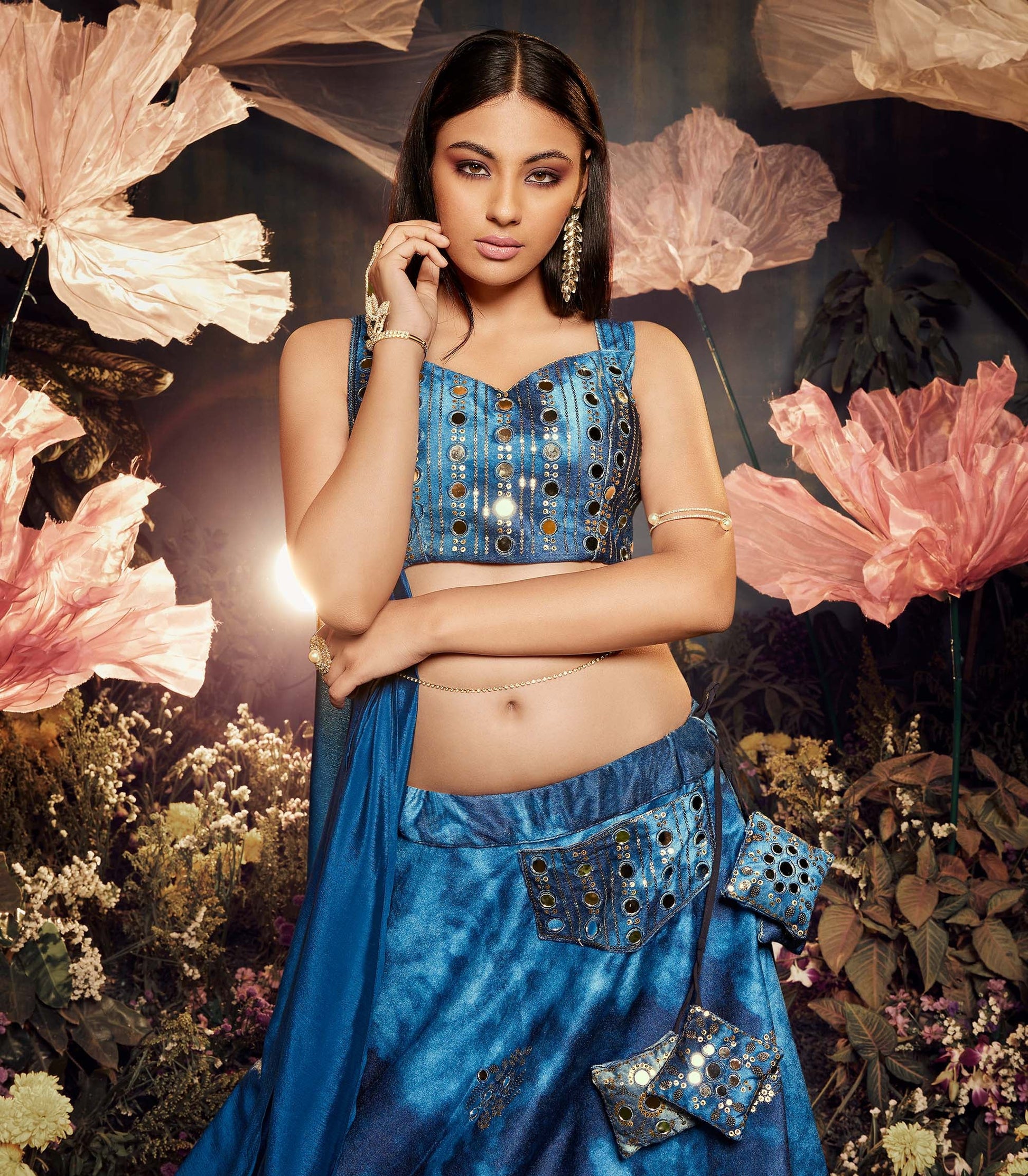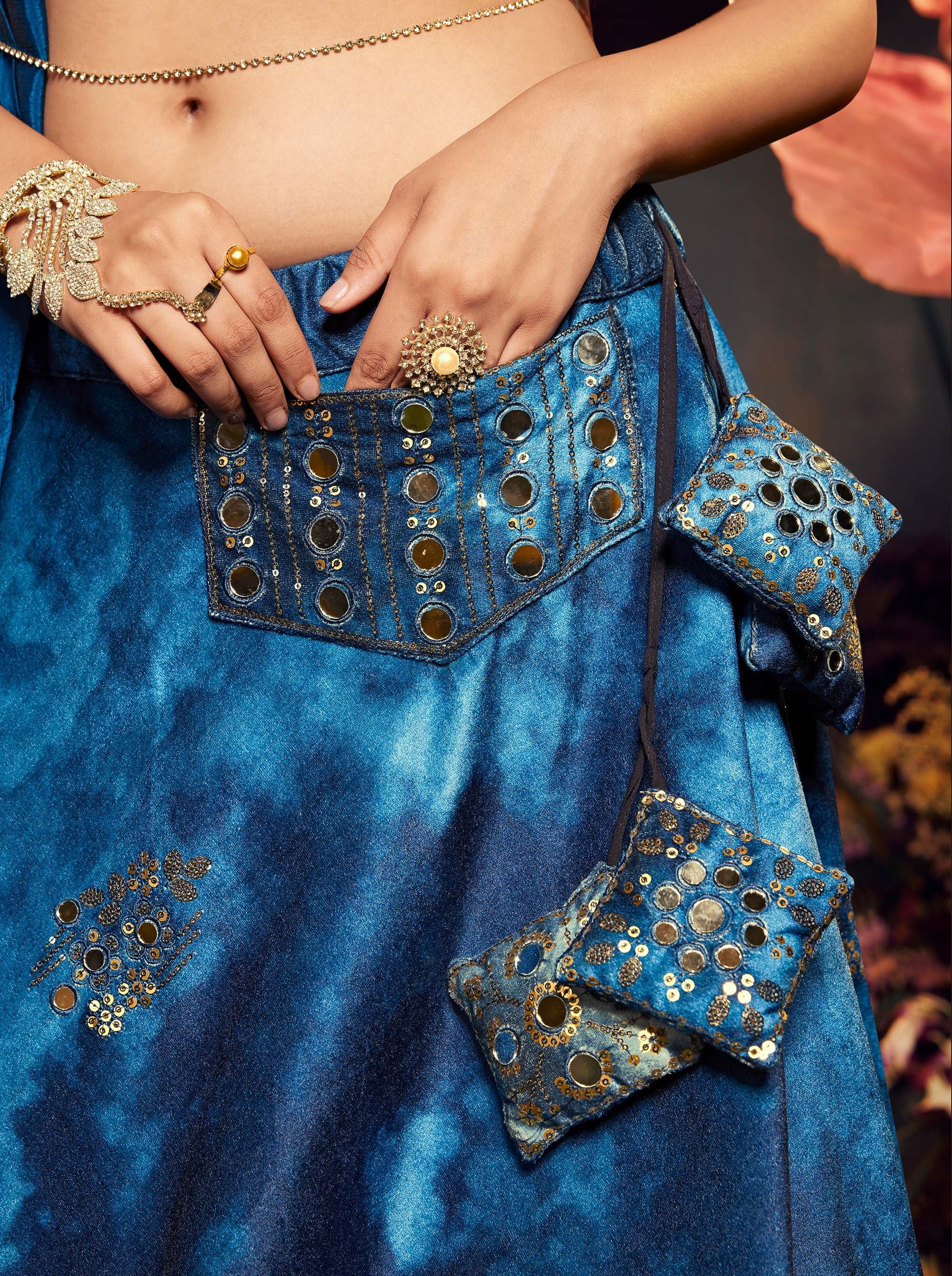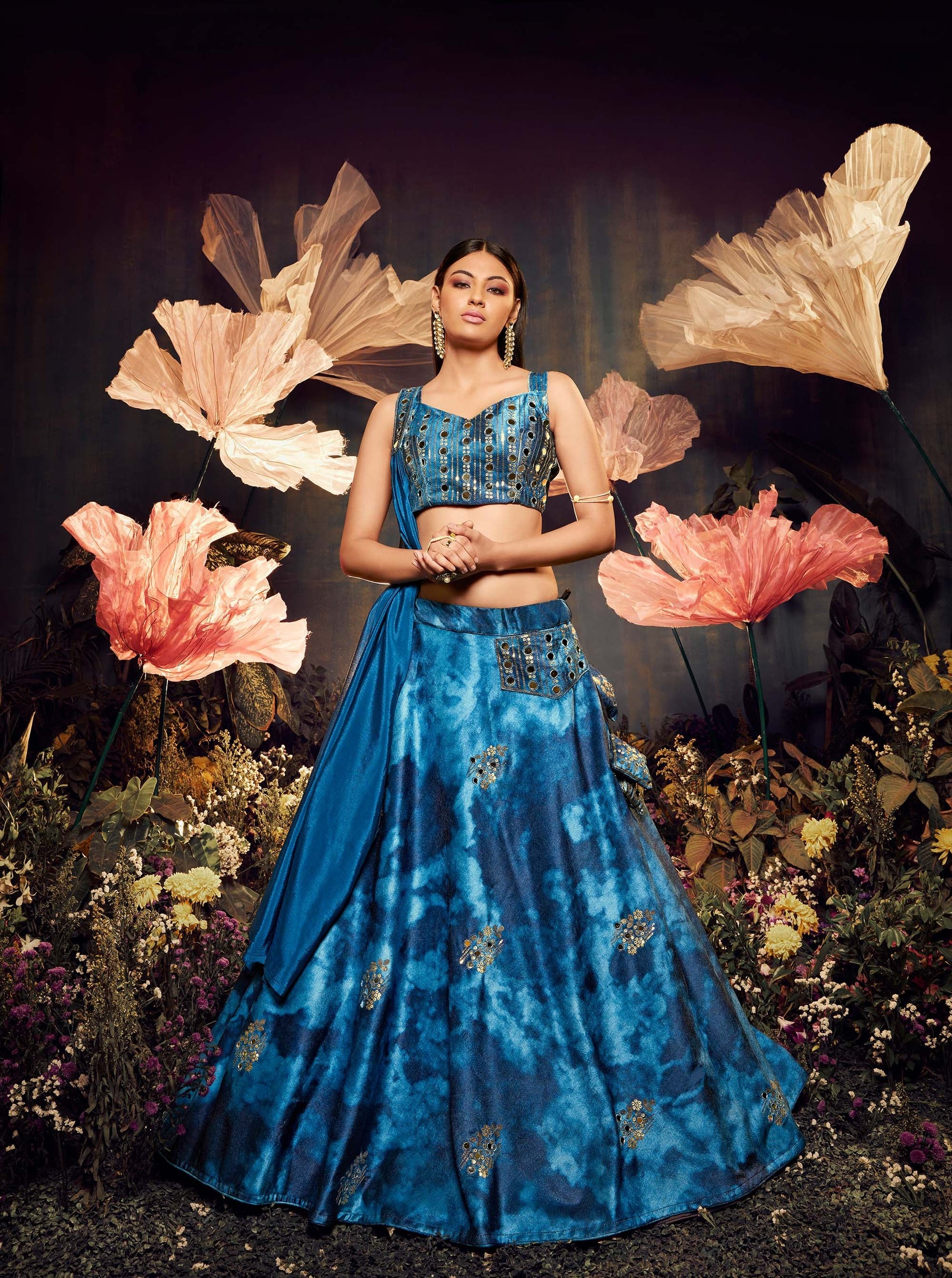 - Lehenga Choli Color: Dark Blue