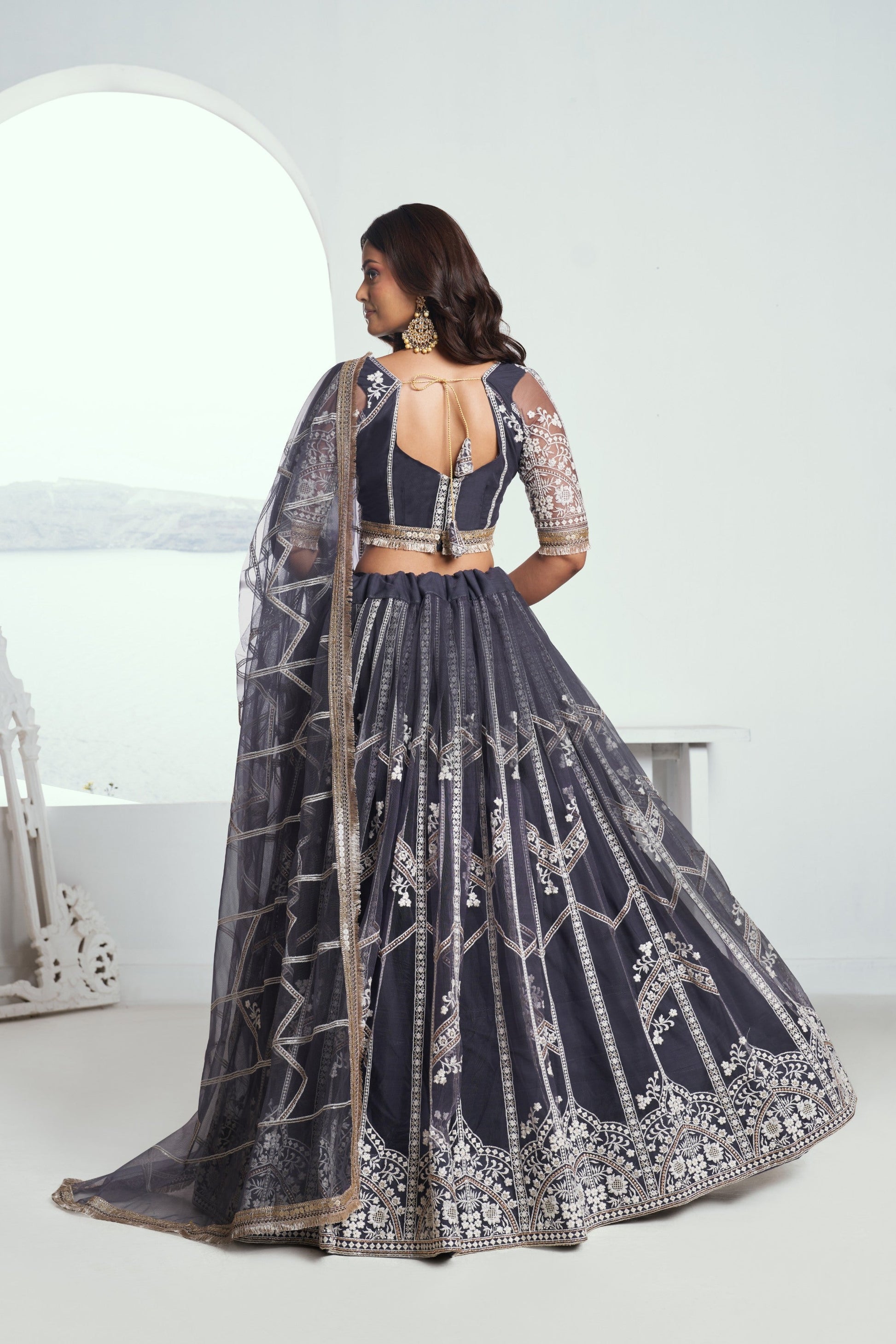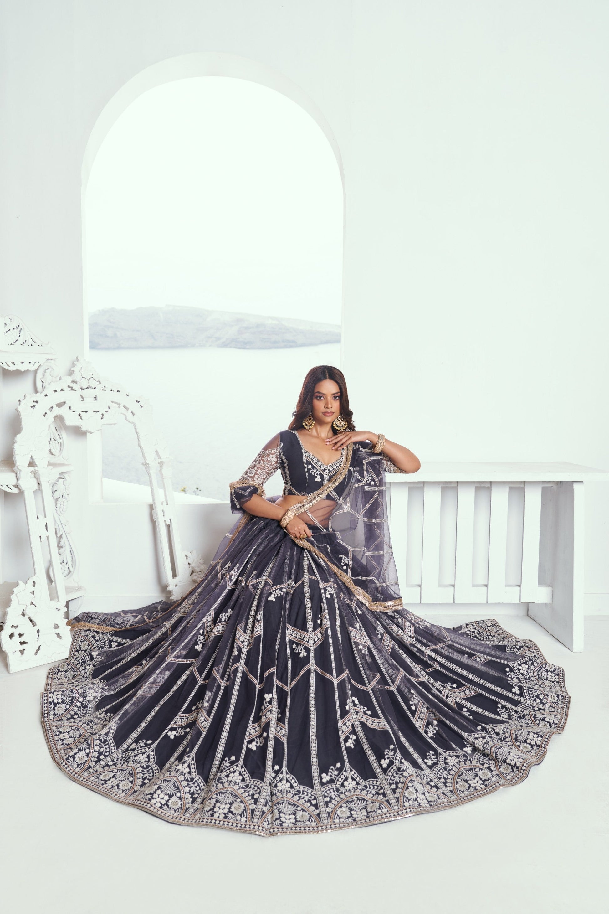 Dark Grey Sequins Embroidery Butterfly Net Bridesmaid Lehenga