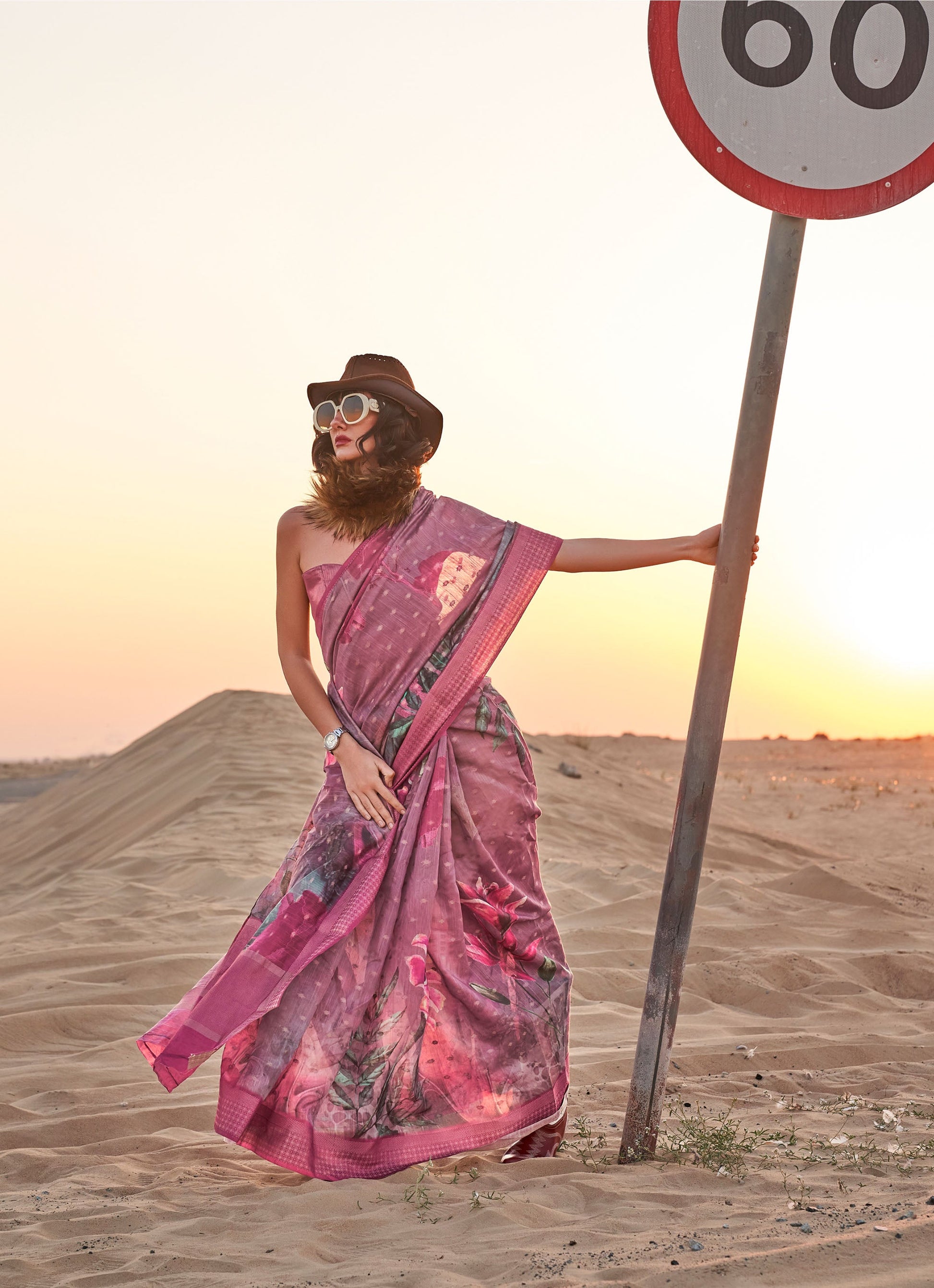Dark Lavender Kaffyn Printed Linen Handloom Saree