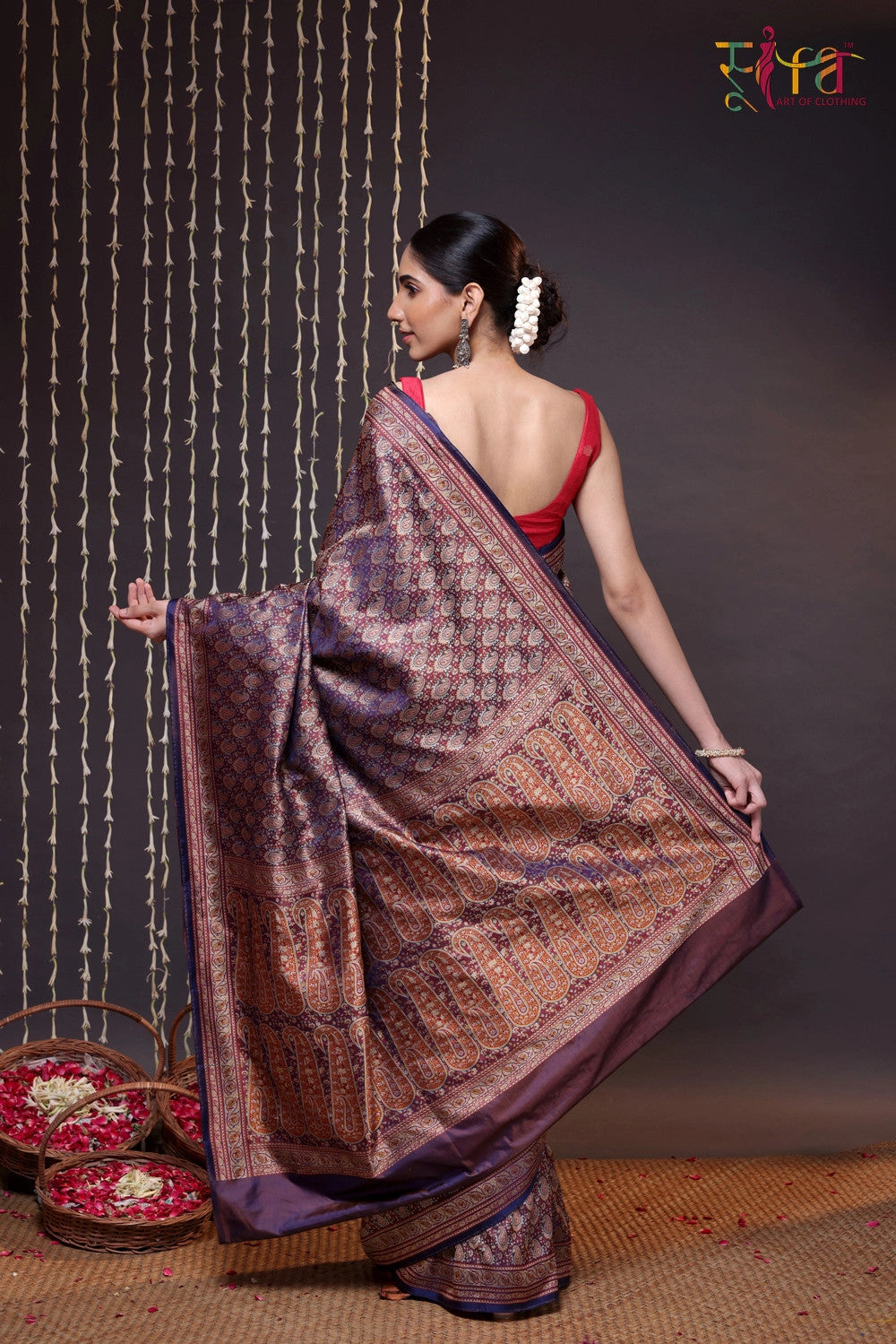 Dark Purple Handloom Pure Silk Tanchoi Banarasi Saree