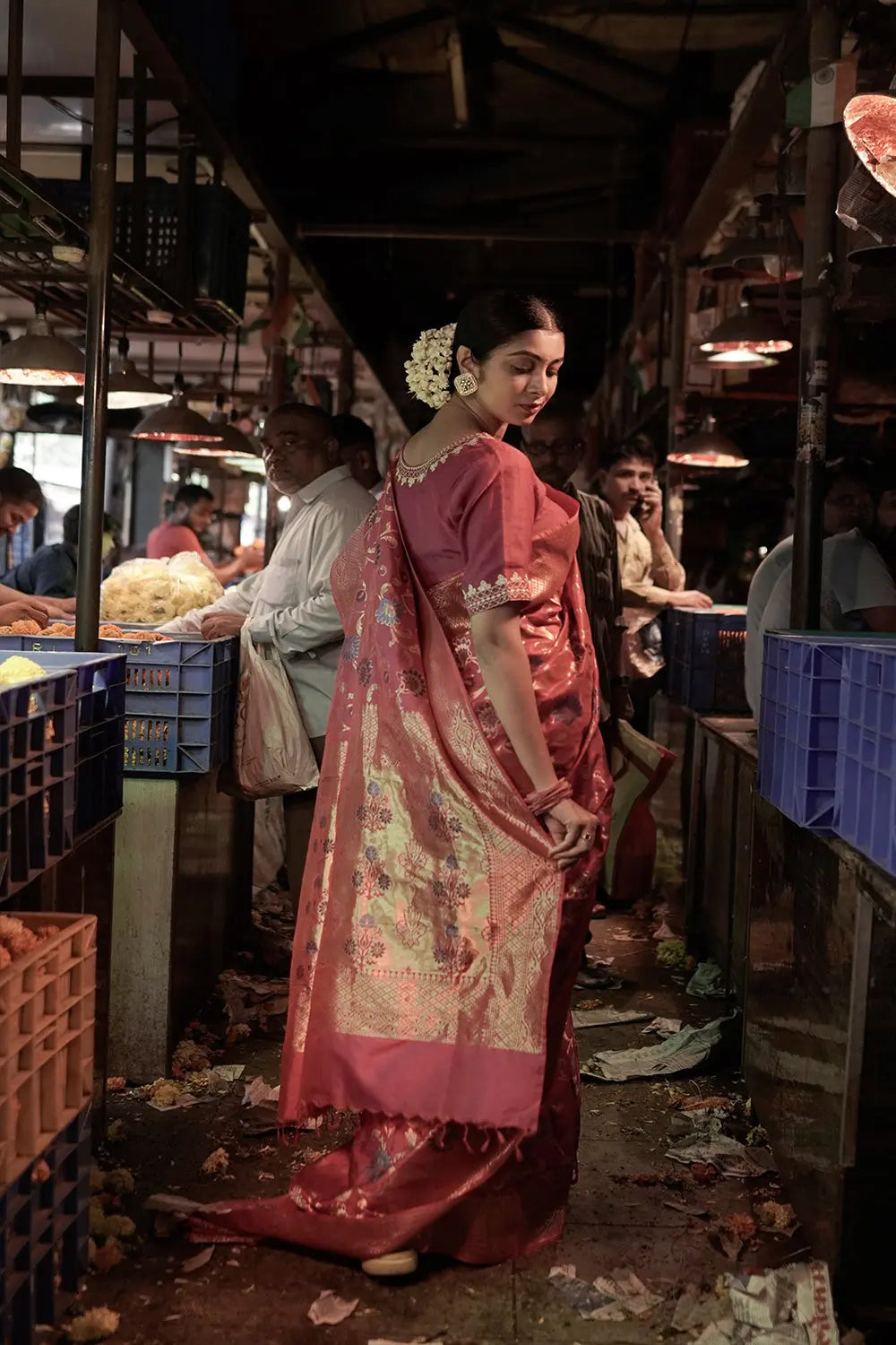 Deep Pink Handloom Pure Silk Jangla Banarasi Saree