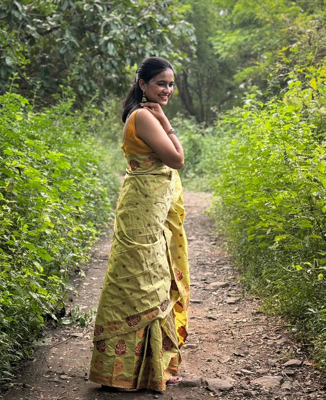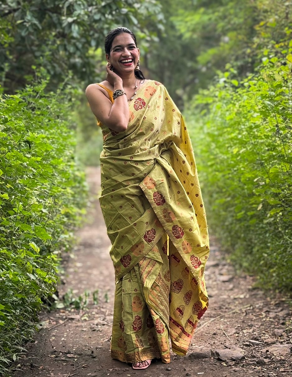 Devi Ishaani Green Handloom Mekhela Chador saree