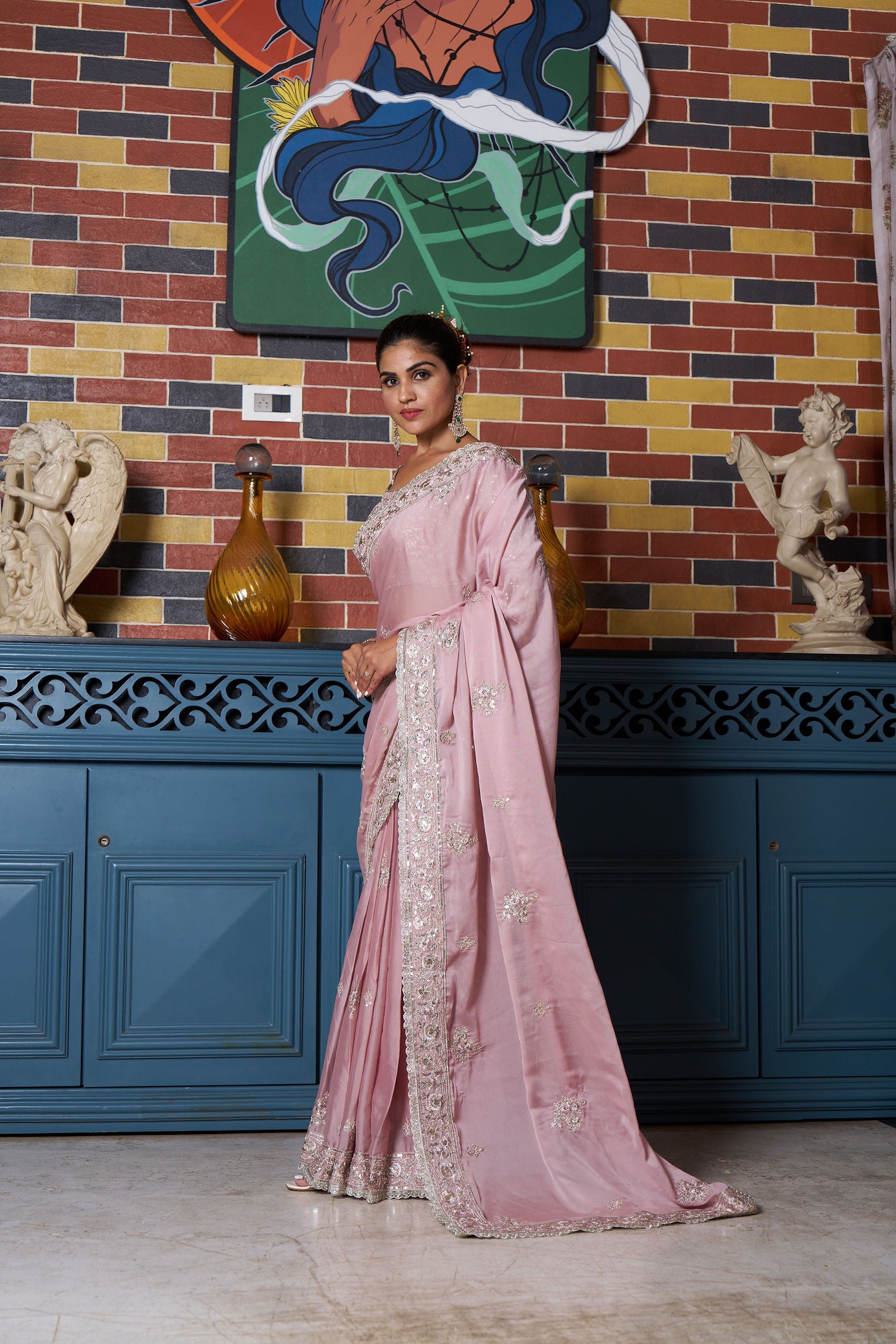 Work : Mesmerizing embroidered Shimmering diamond lace