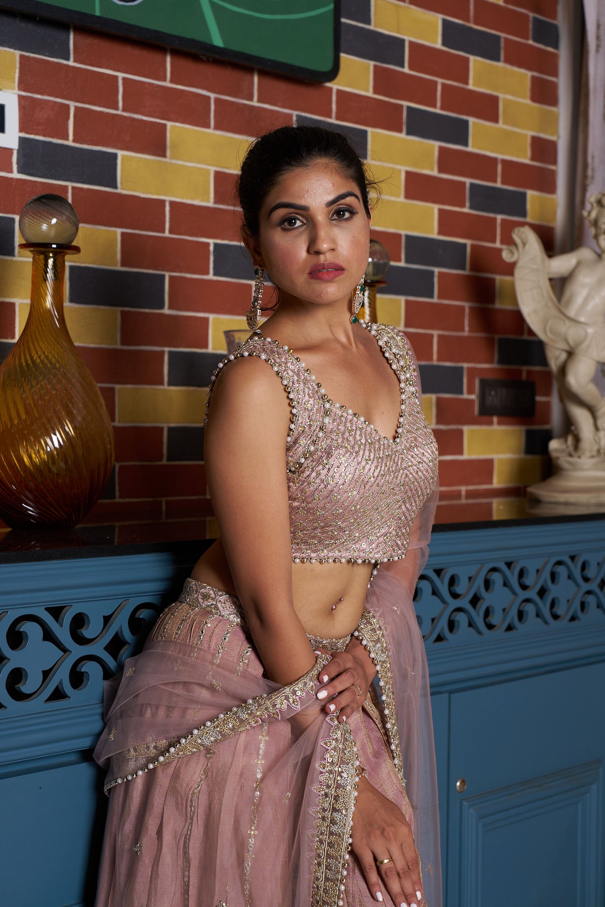 Work : Ornate moti lace detailing Intricate floral embroidery
