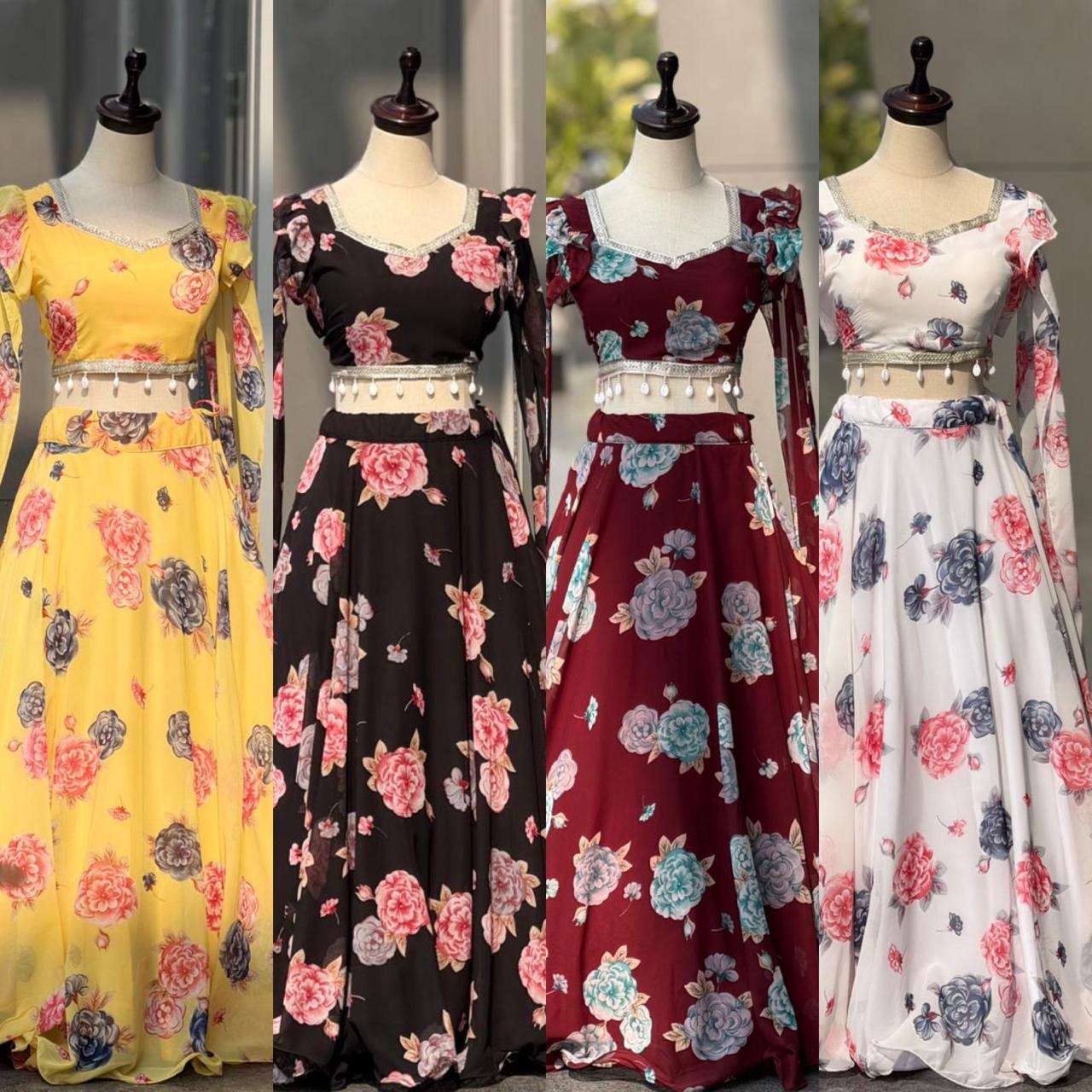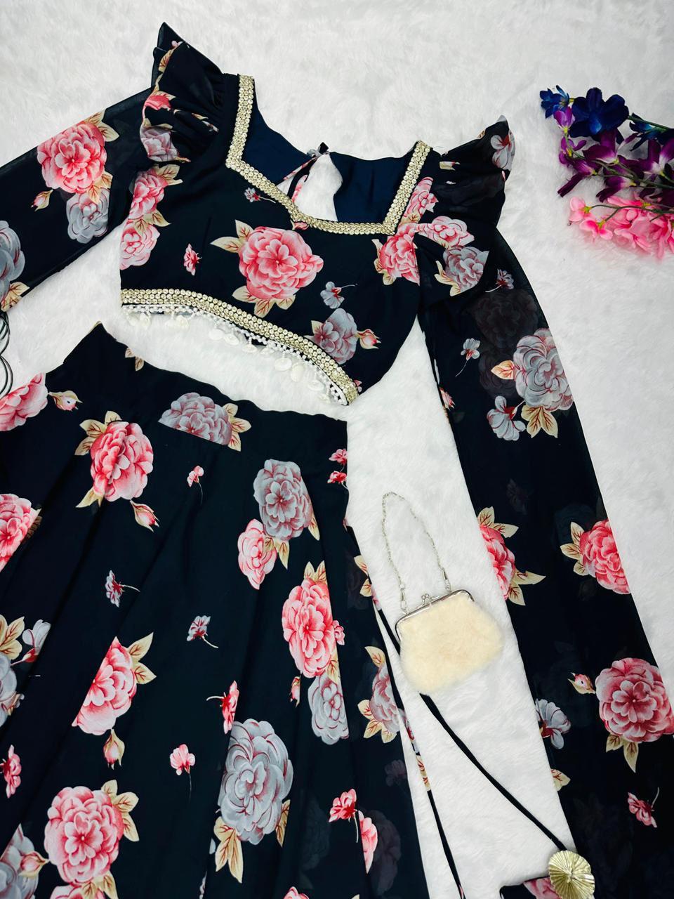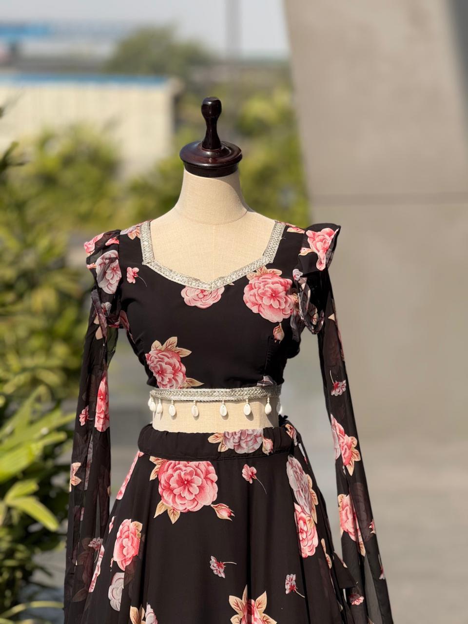 lehenga - Printed georgette lehenga with canvas patta and waist dori🌸 fully stitched