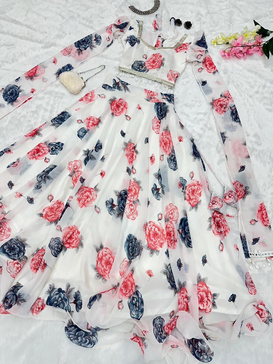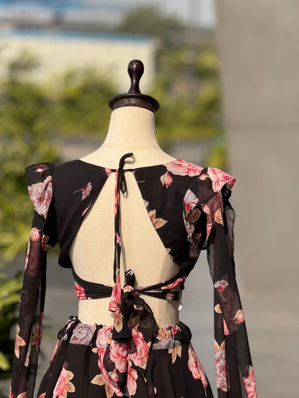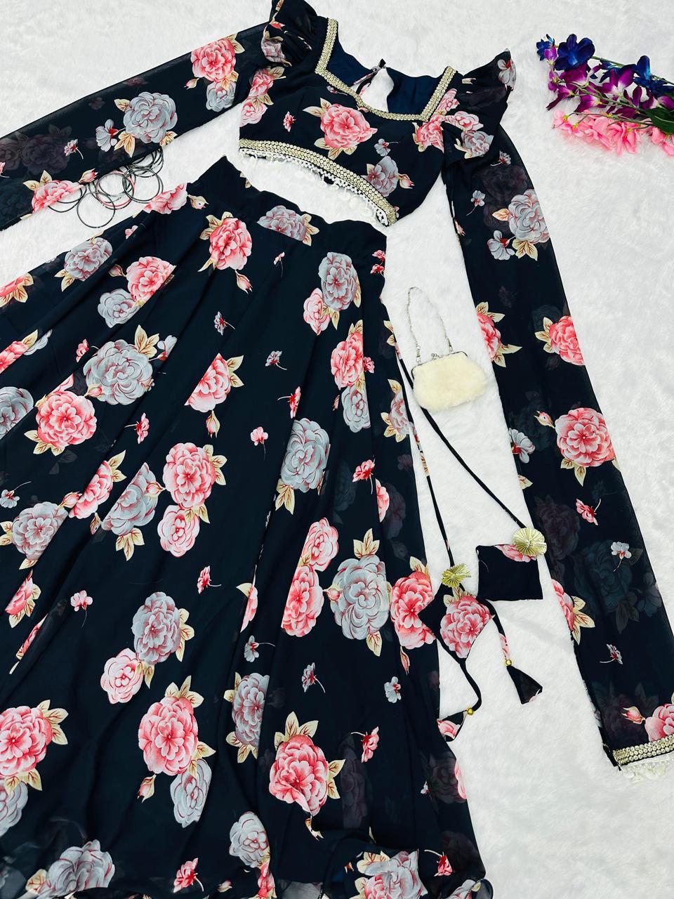 lehenga - Printed georgette lehenga with canvas patta and waist dori🌸 fully stitched