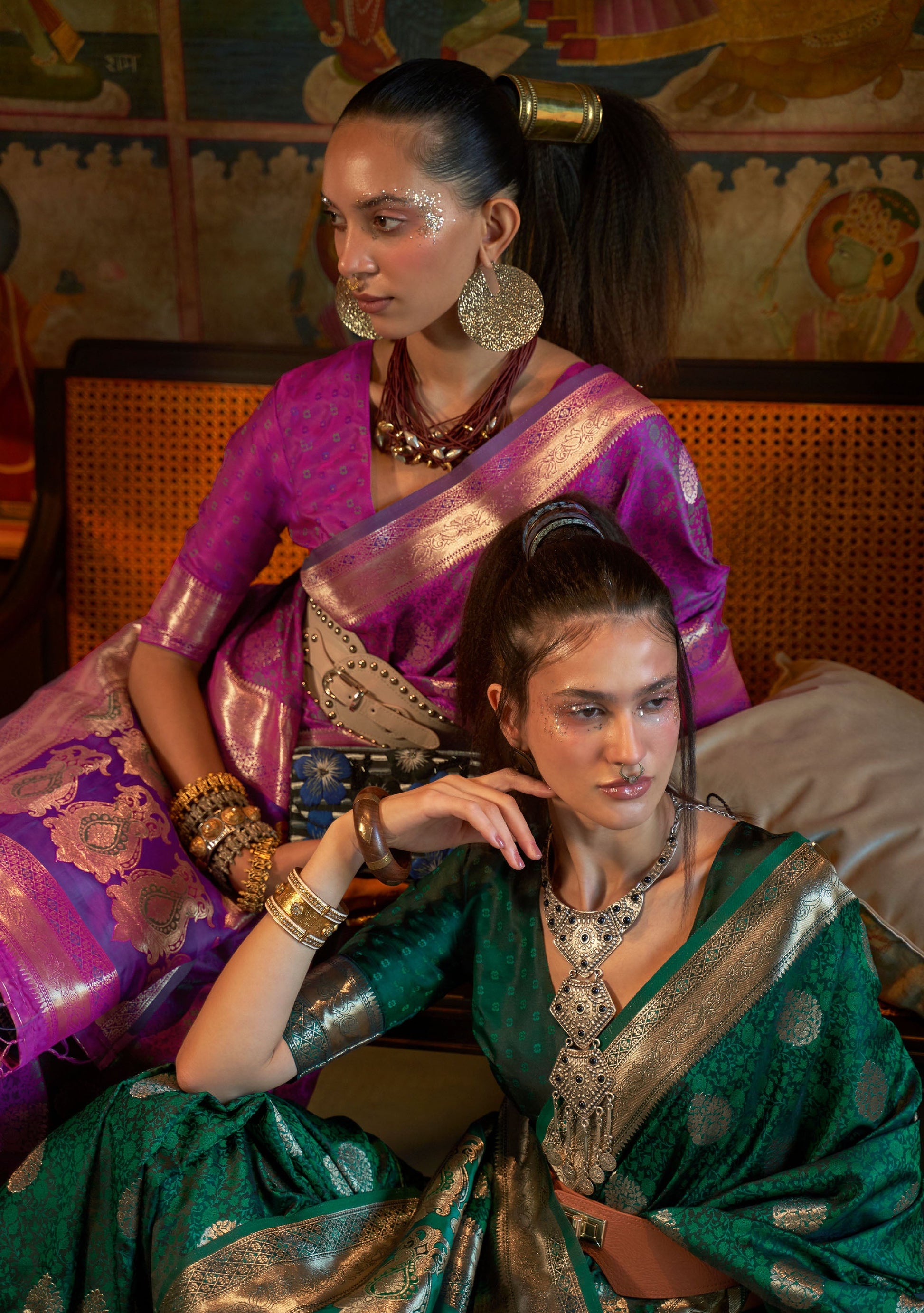 Emerald Green Kona Pure Satin Tanchoi Handloom Silk Saree