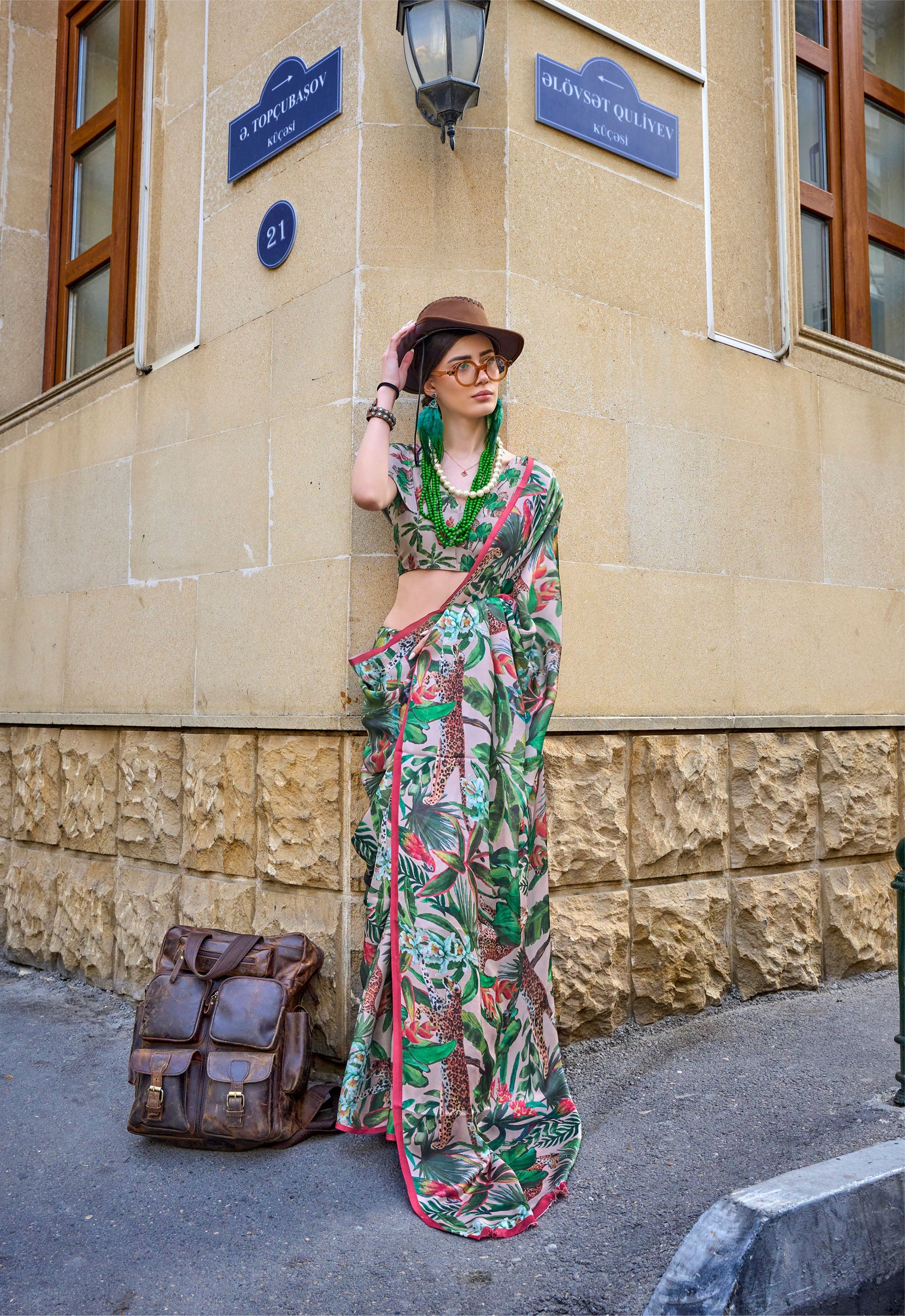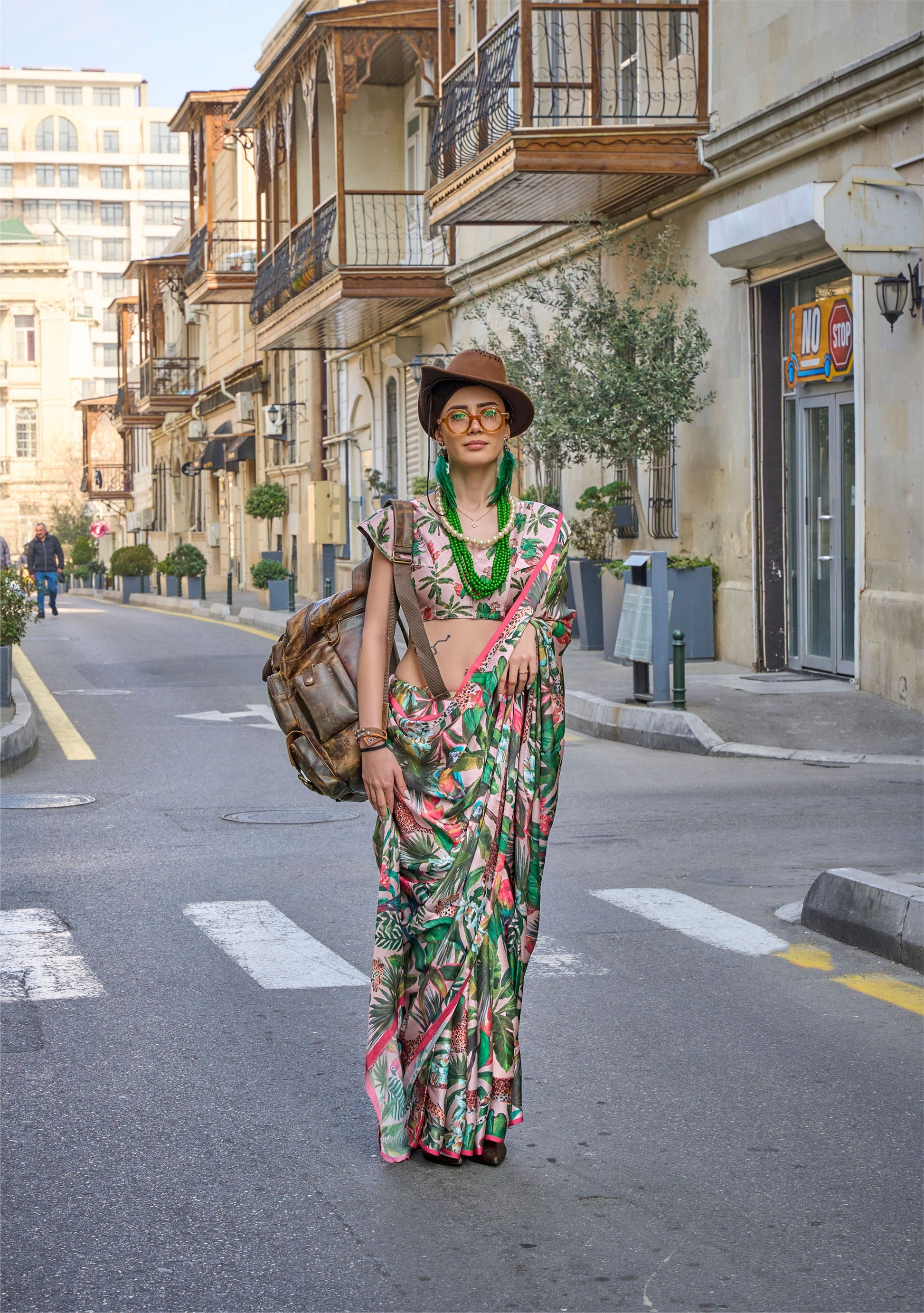 Does your wardrobe need more versatility? Then, check out this. Let your skin feel the refreshing touch as you adorn this superior-quality lightweight Saree to match the overall modest design.