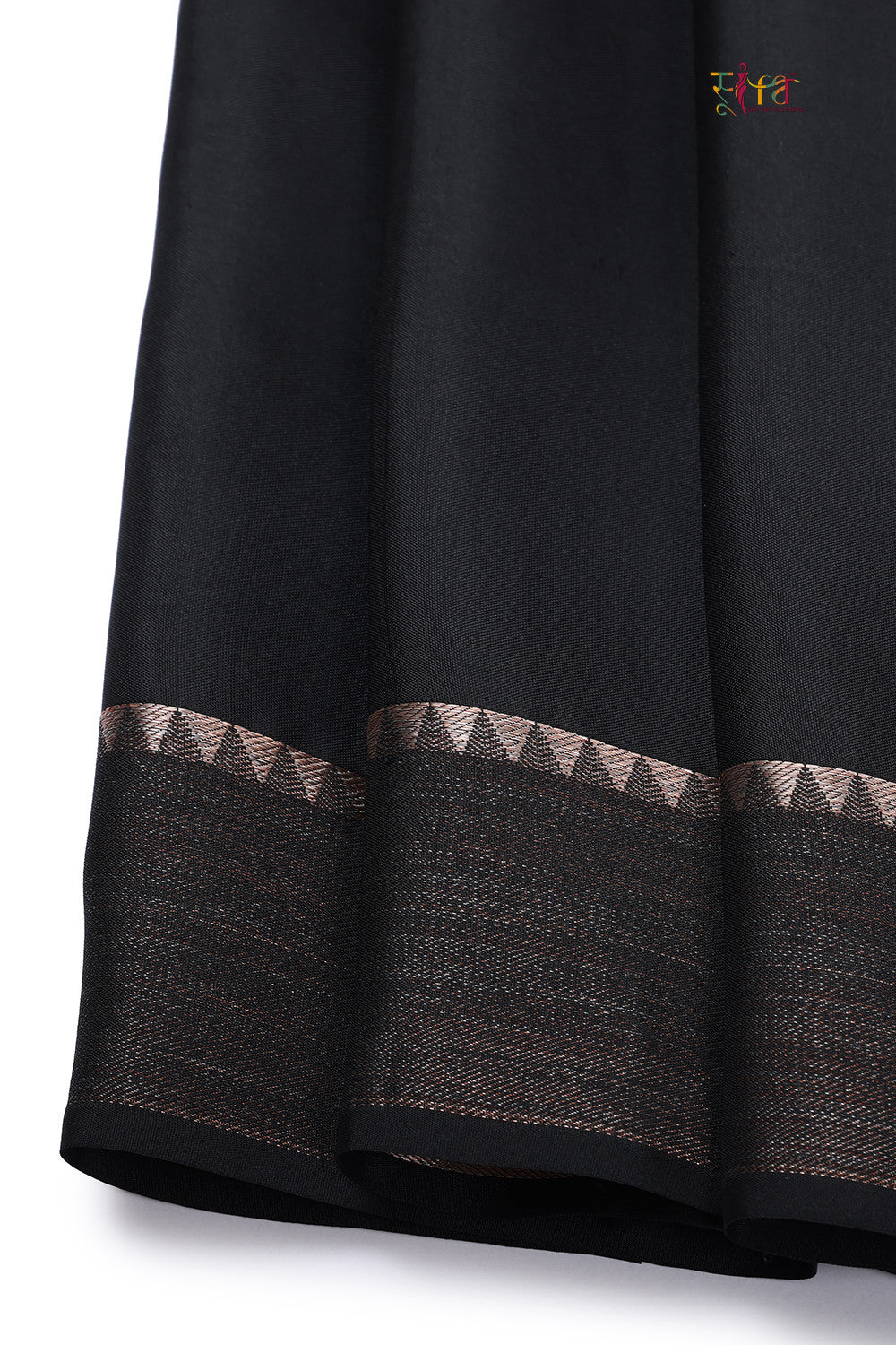 Indulge in the elegance of our Forest Green Handloom Kanchipattu saree. Crafted from pure silk with Pure Copper Zari, it exudes a subtle allure with its mesmerizing geometrical weave pattern. The intricate copper zari border showcases skilled craftsmanship. Embrace its exquisite motifs and reflect your unique style and grace with this timeless statement of elegance. The extraordinary pallu, weaved with Copper Zari and adorned with temple designs and wonderful tassels, adds a touch of grandeur.
