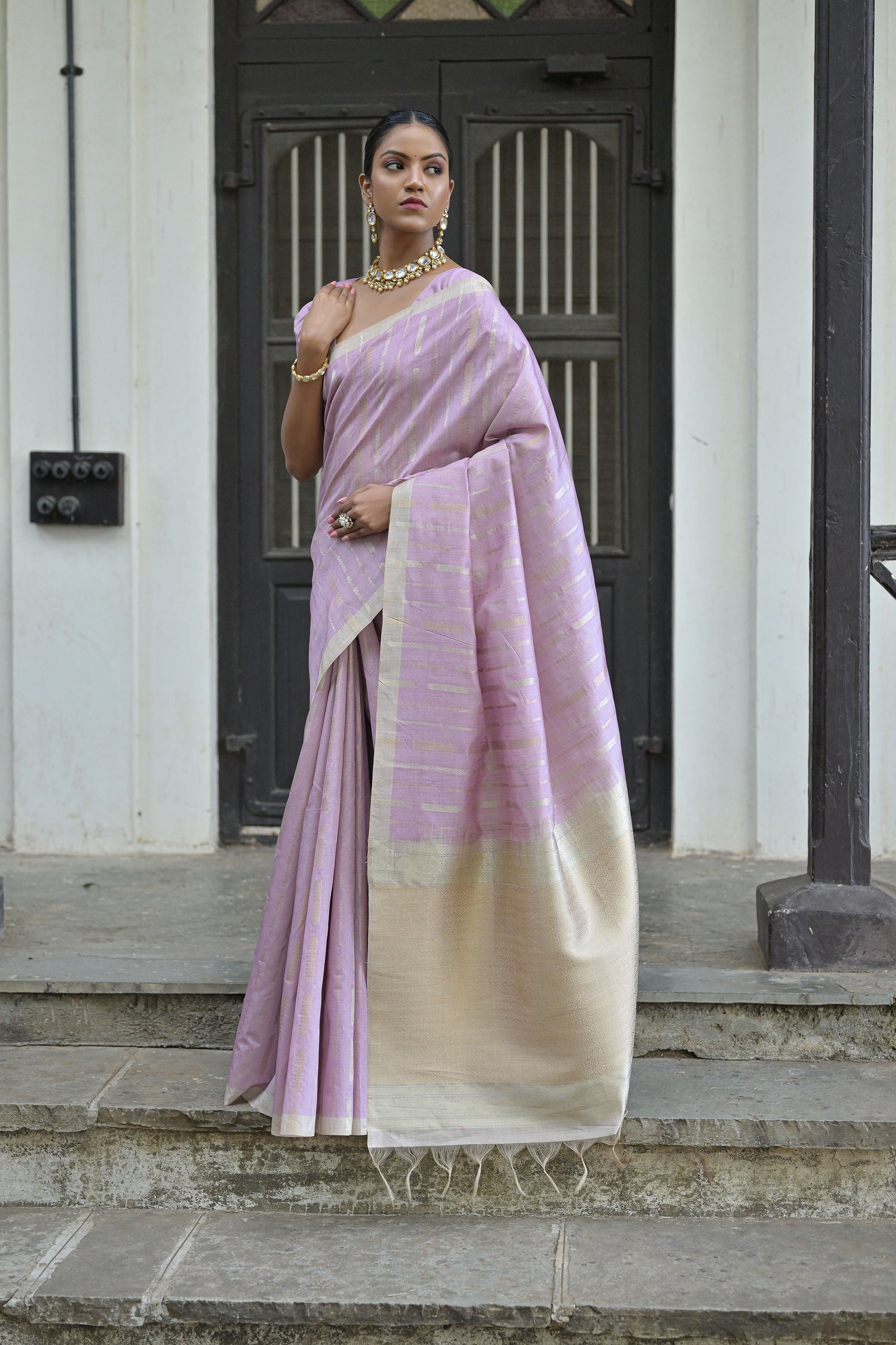 Fuji Silk Purple Premium Tussar Silk Zari woven Saree