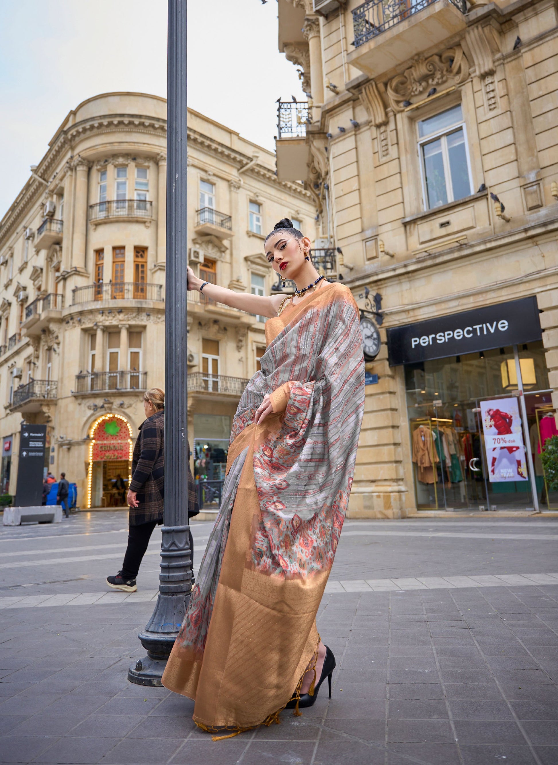 Gold and Bronze Kinsel Printed Poly Handloom Saree