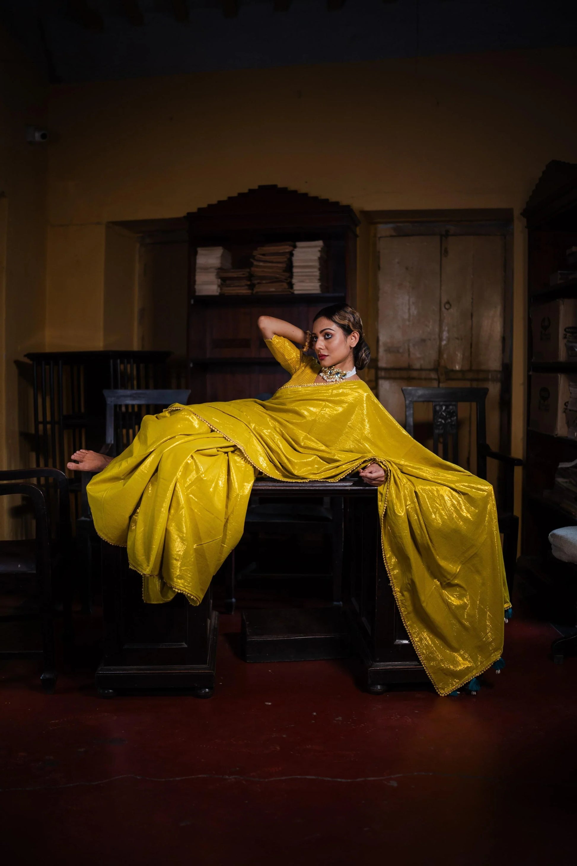 The Goldie Saree is more than just attire; it’s a statement of sophistication and celebration. Perfect for those who wish to shine with grace and elegance, this saree is a must-have for making.