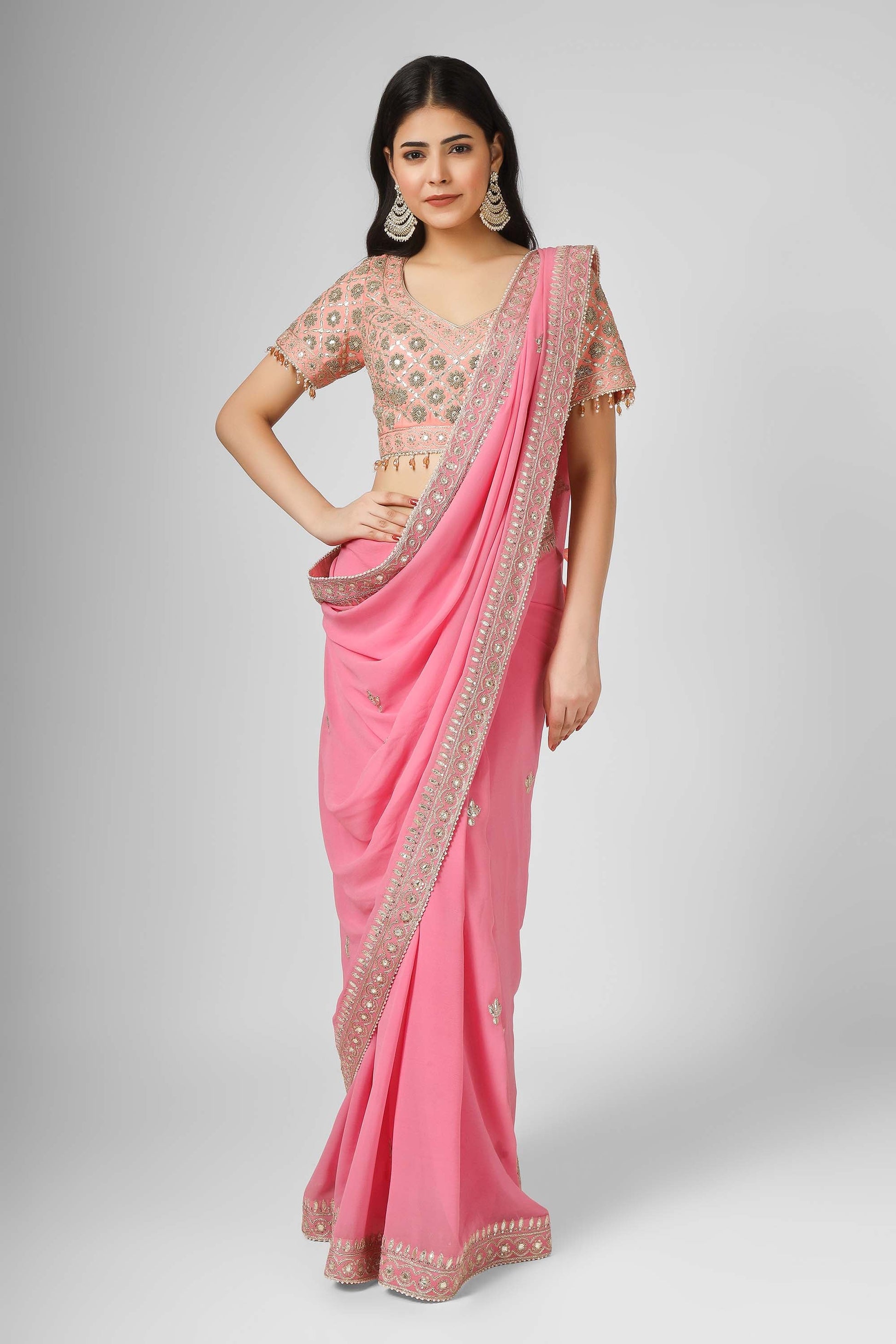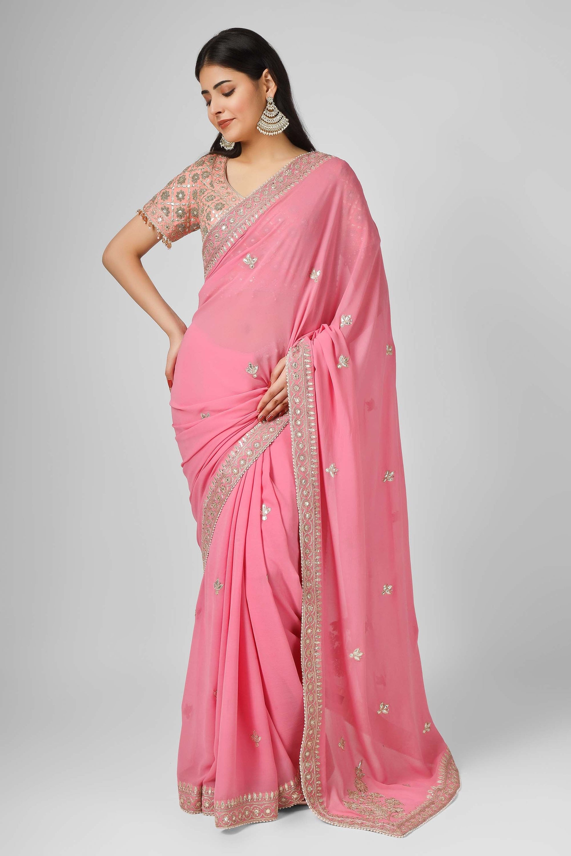 Gotta Bling Pink Georgette Gotta Dori Saree