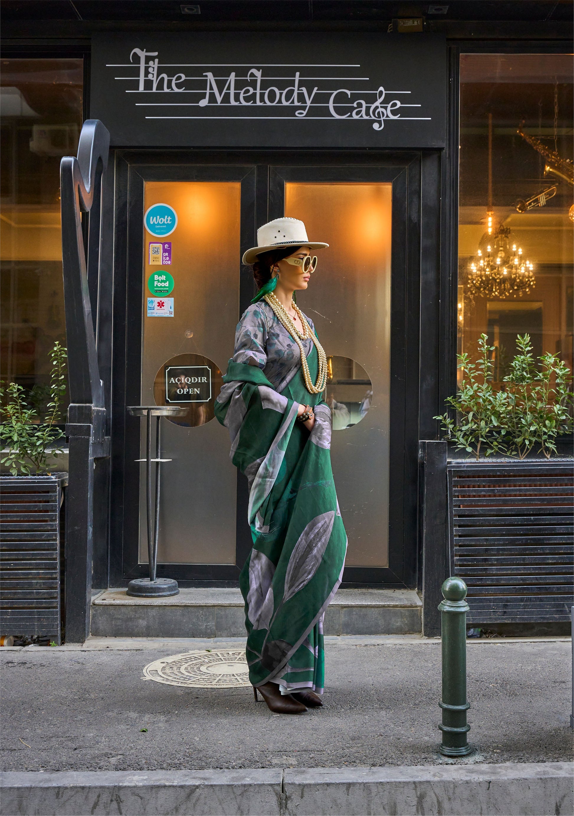 Green and Grey Floral Kolombus Satin Georgette Printed Saree