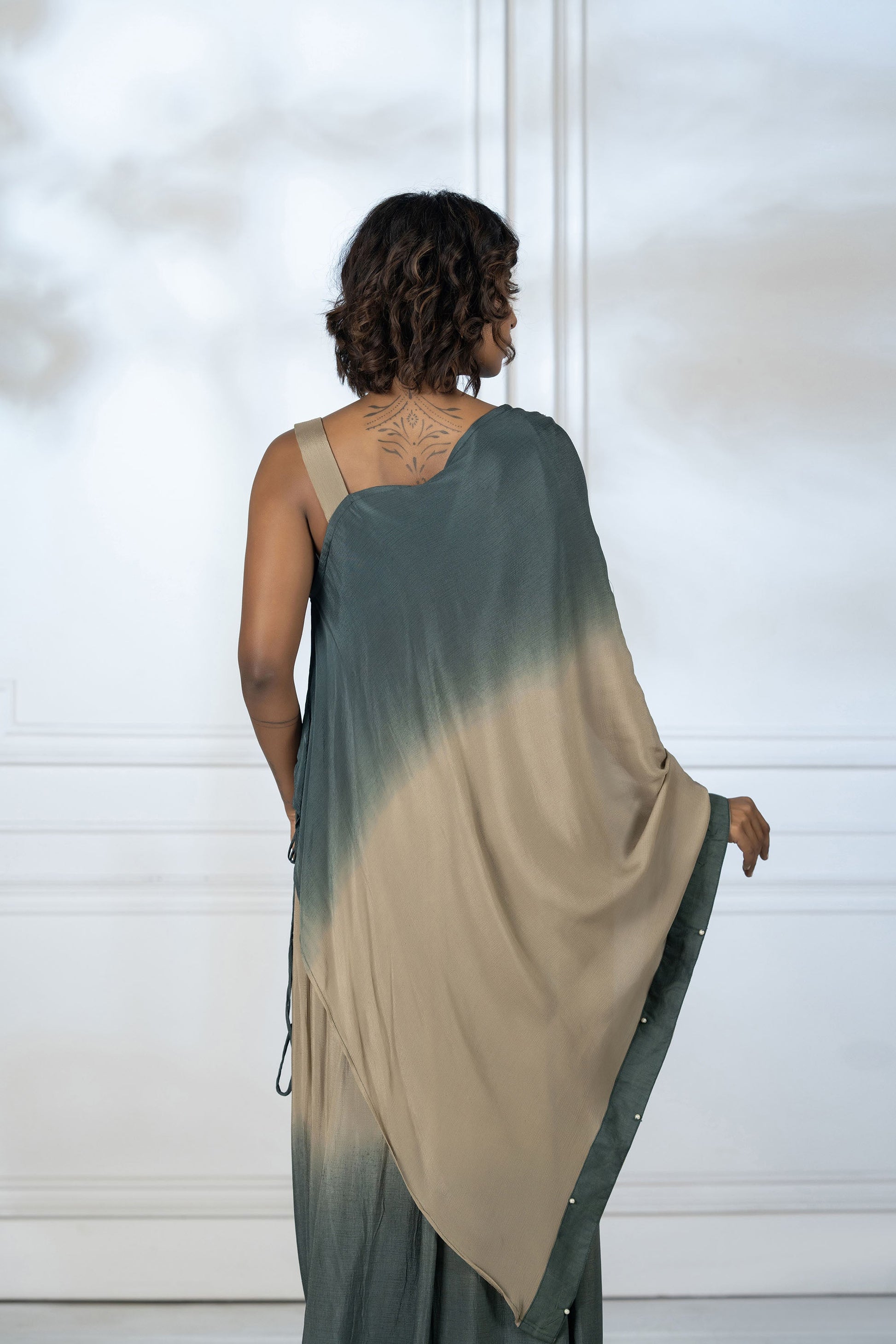 Green Asymmetric Dhoti Set