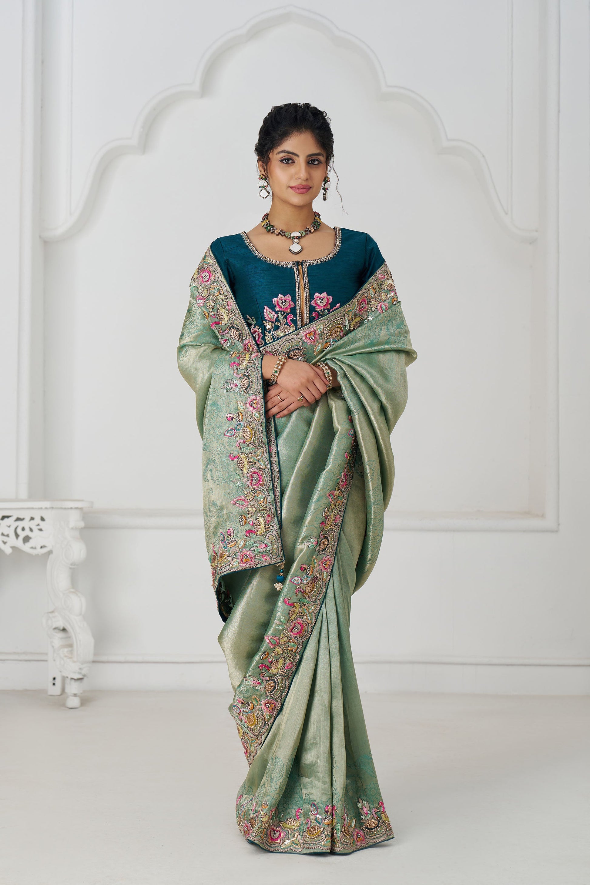 Green Dola Viscose Silk Multi-thread Embroidery Reception Saree