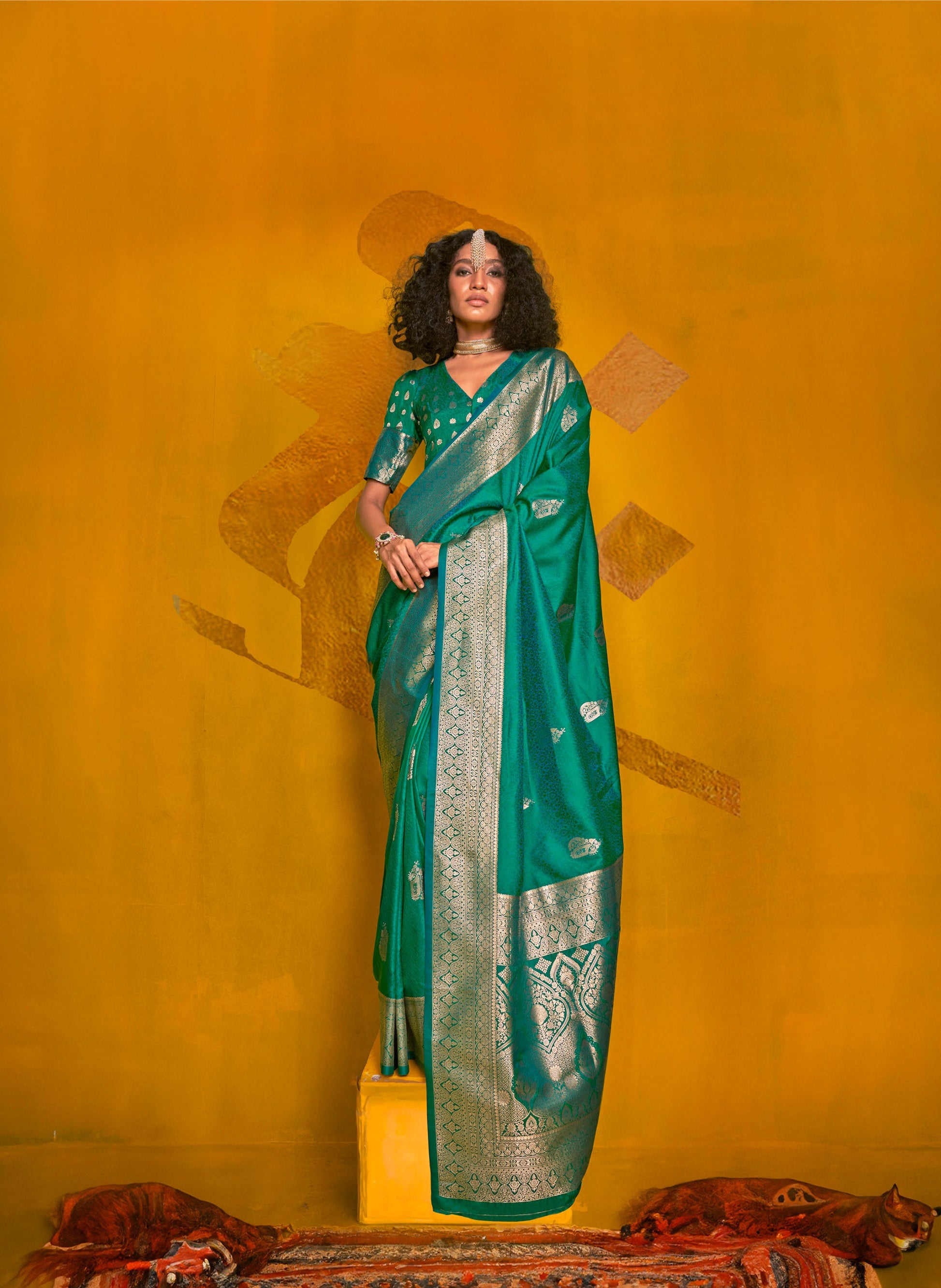 Green Karnival Two Tone Handloom Weaving Silk Saree