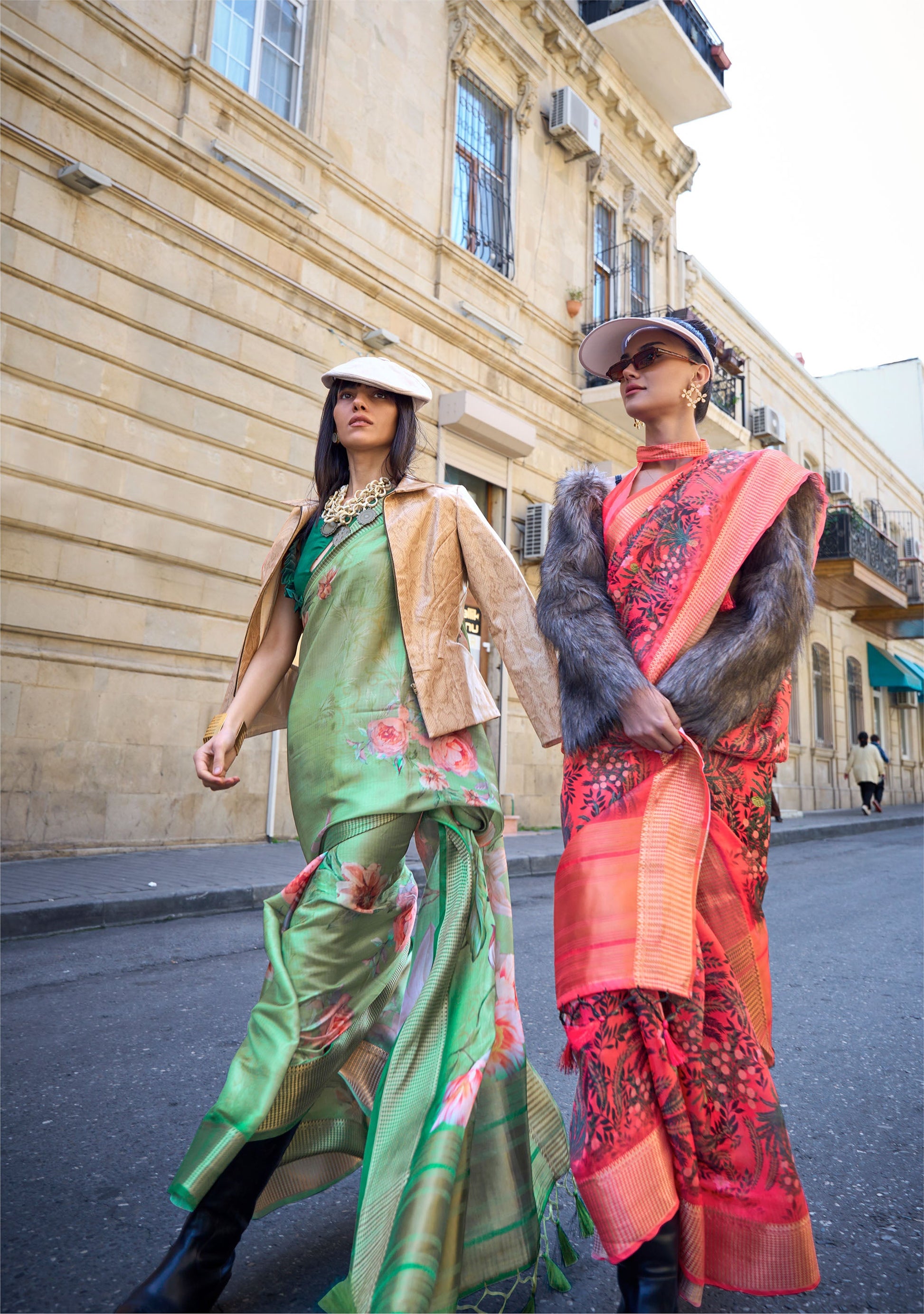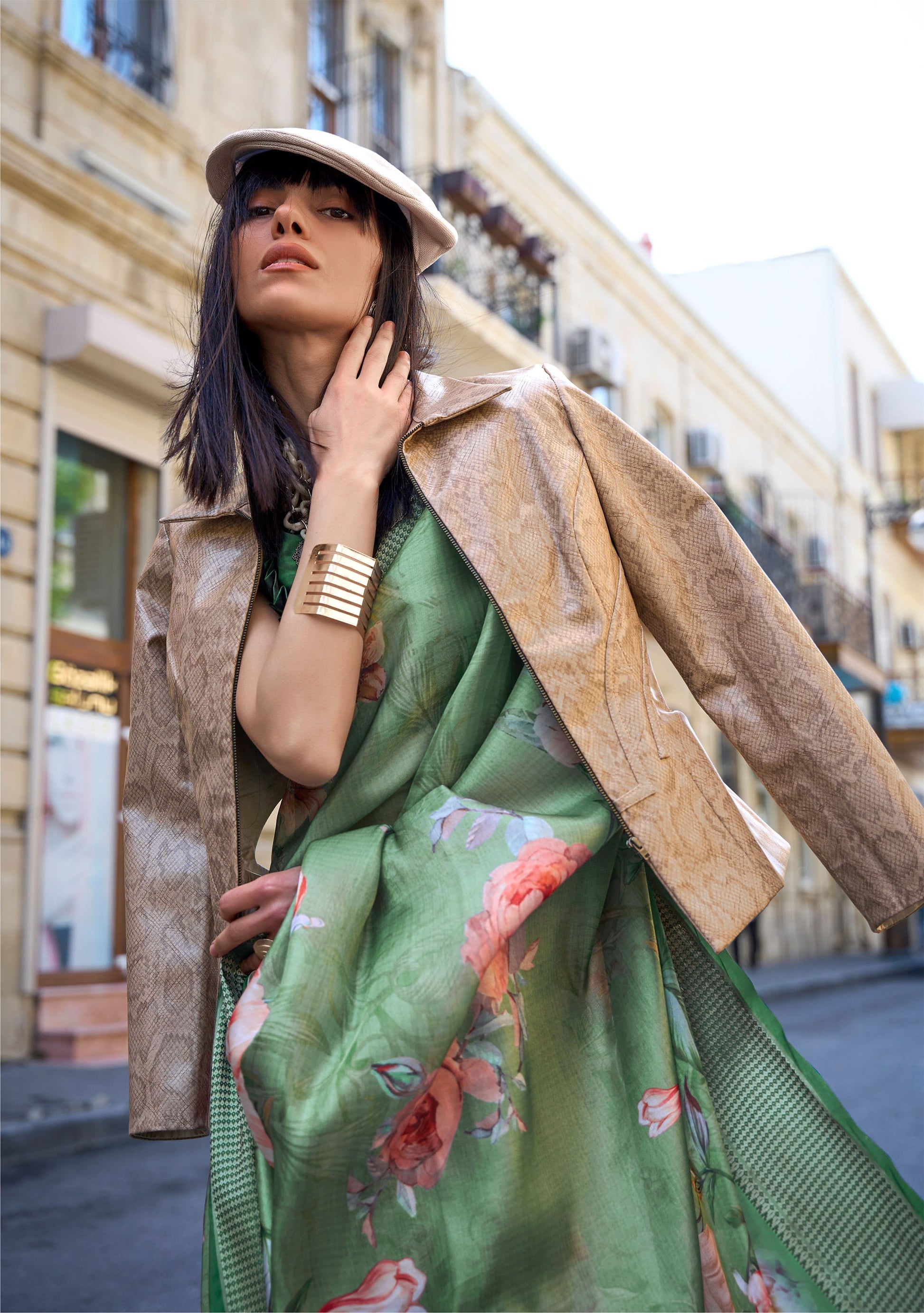 Green Klay Print Satin Organza Saree