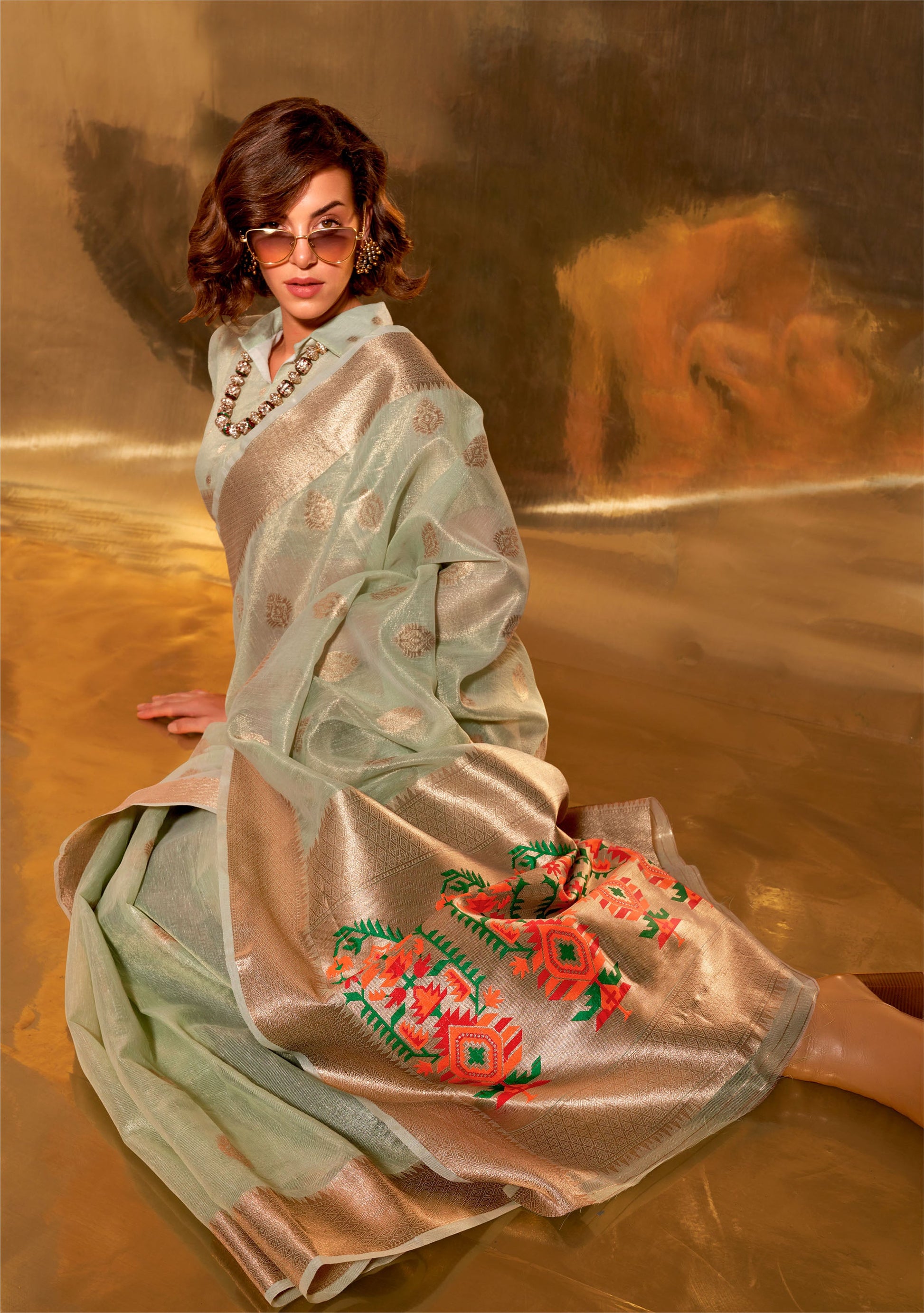 Green Korra Tissue Paithani Zari Saree