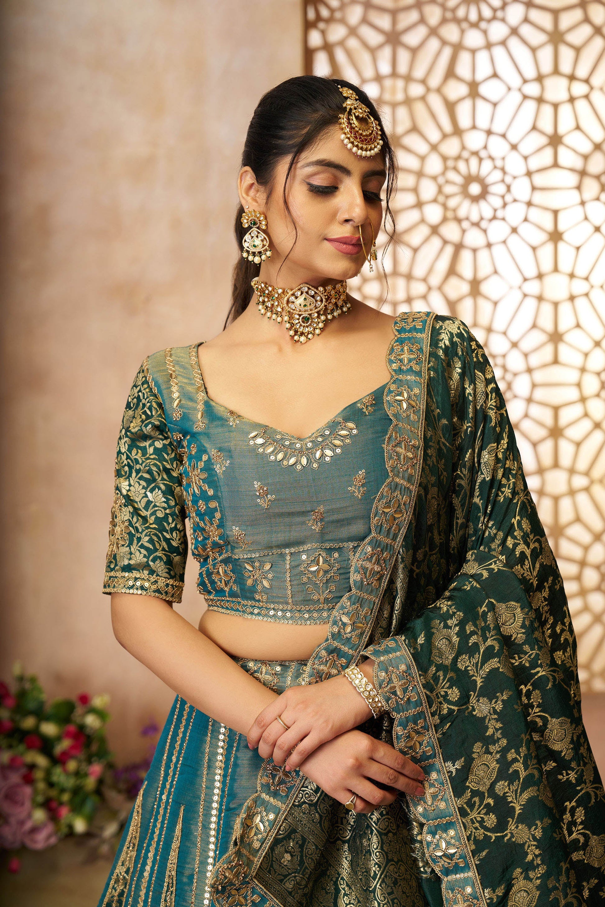 Green Tissue & Banarasi Zari Work Bridal Lehenga