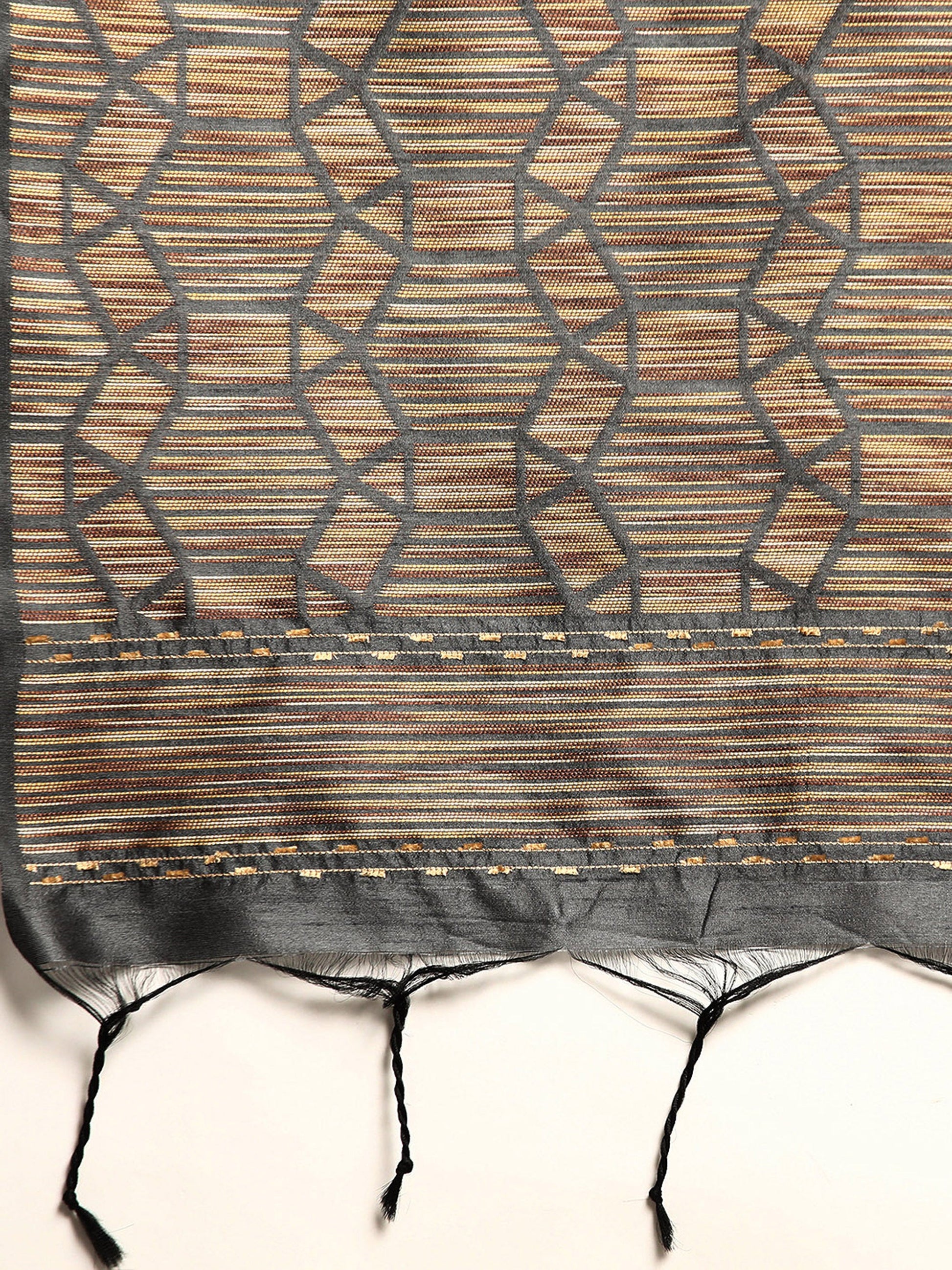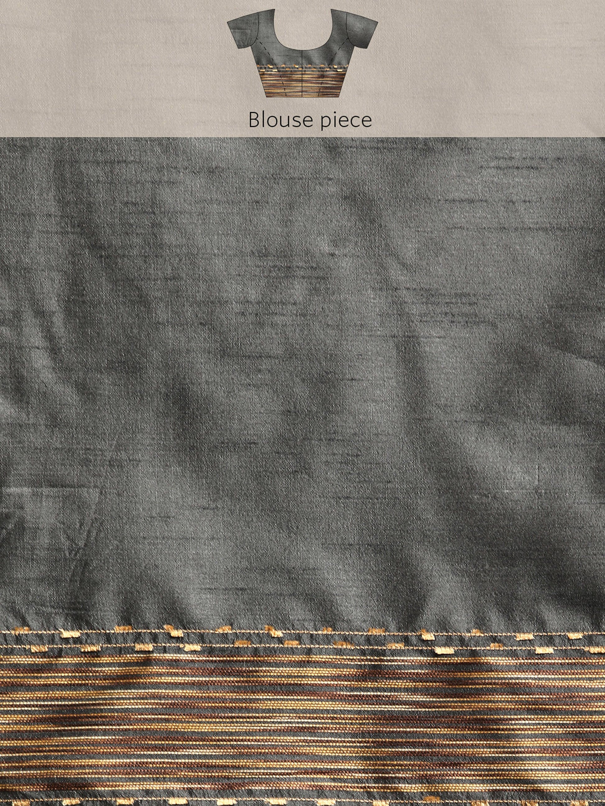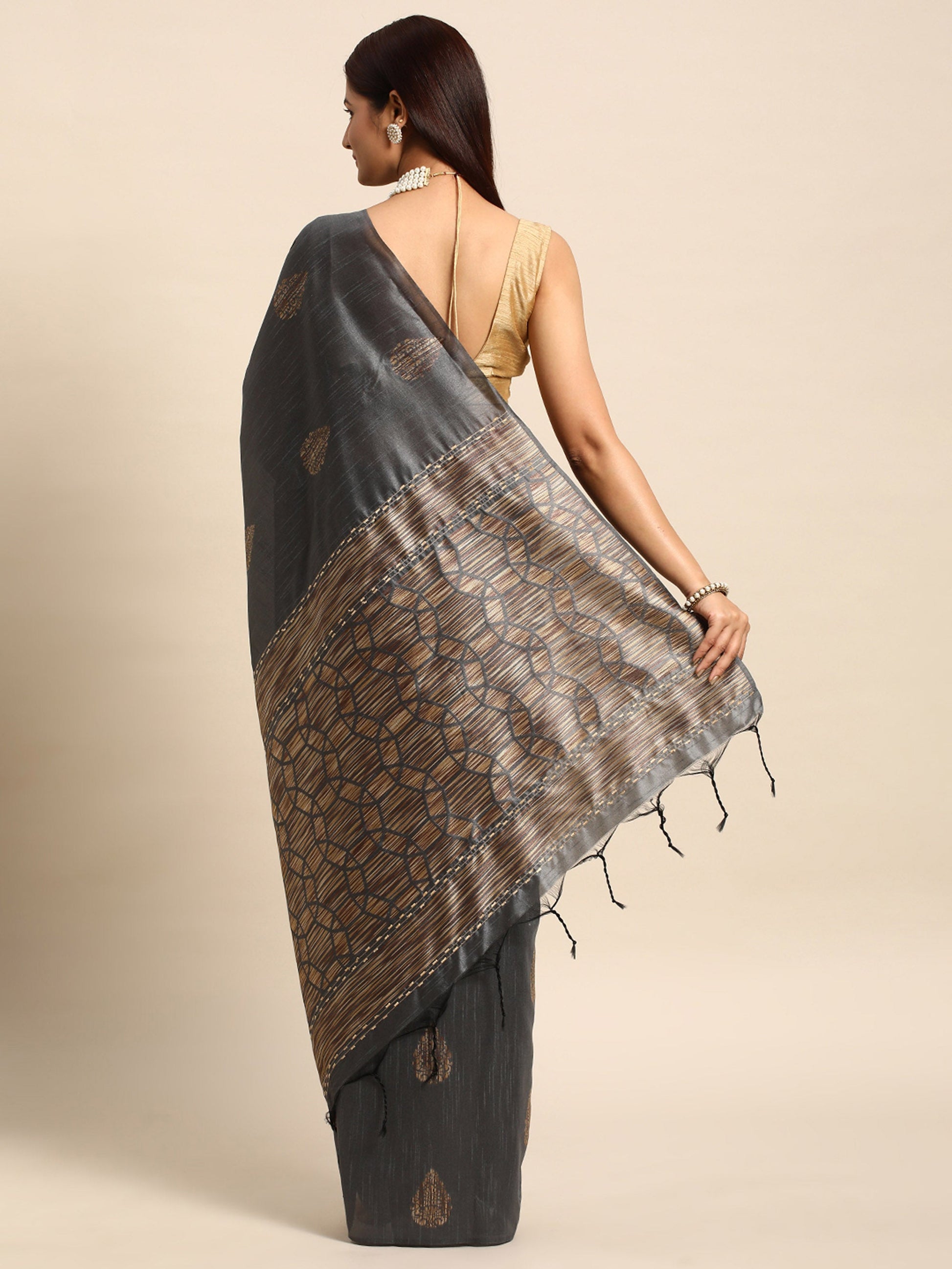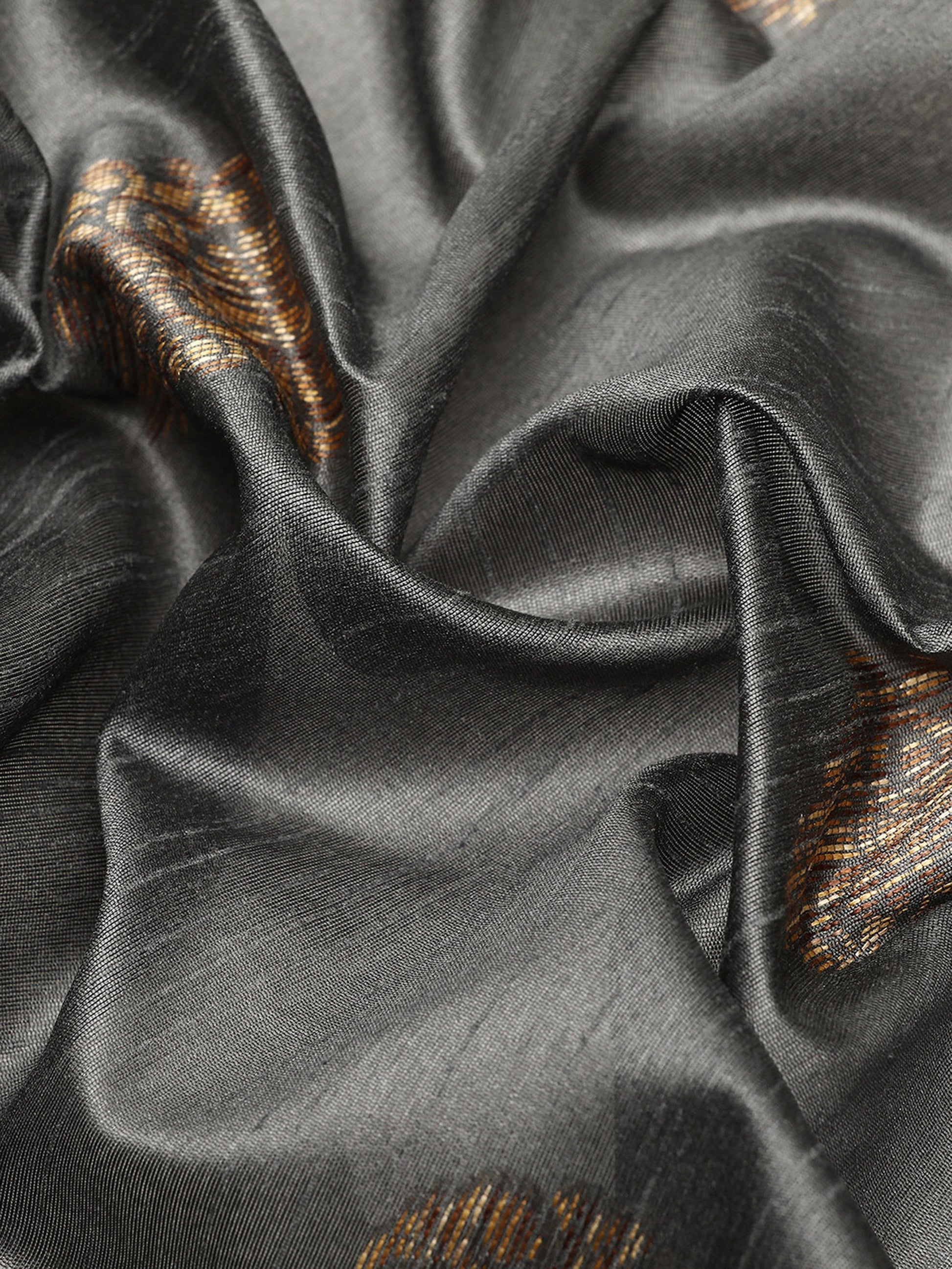 Grey Handloom Ghicha Raw Silk Butti woven saree
