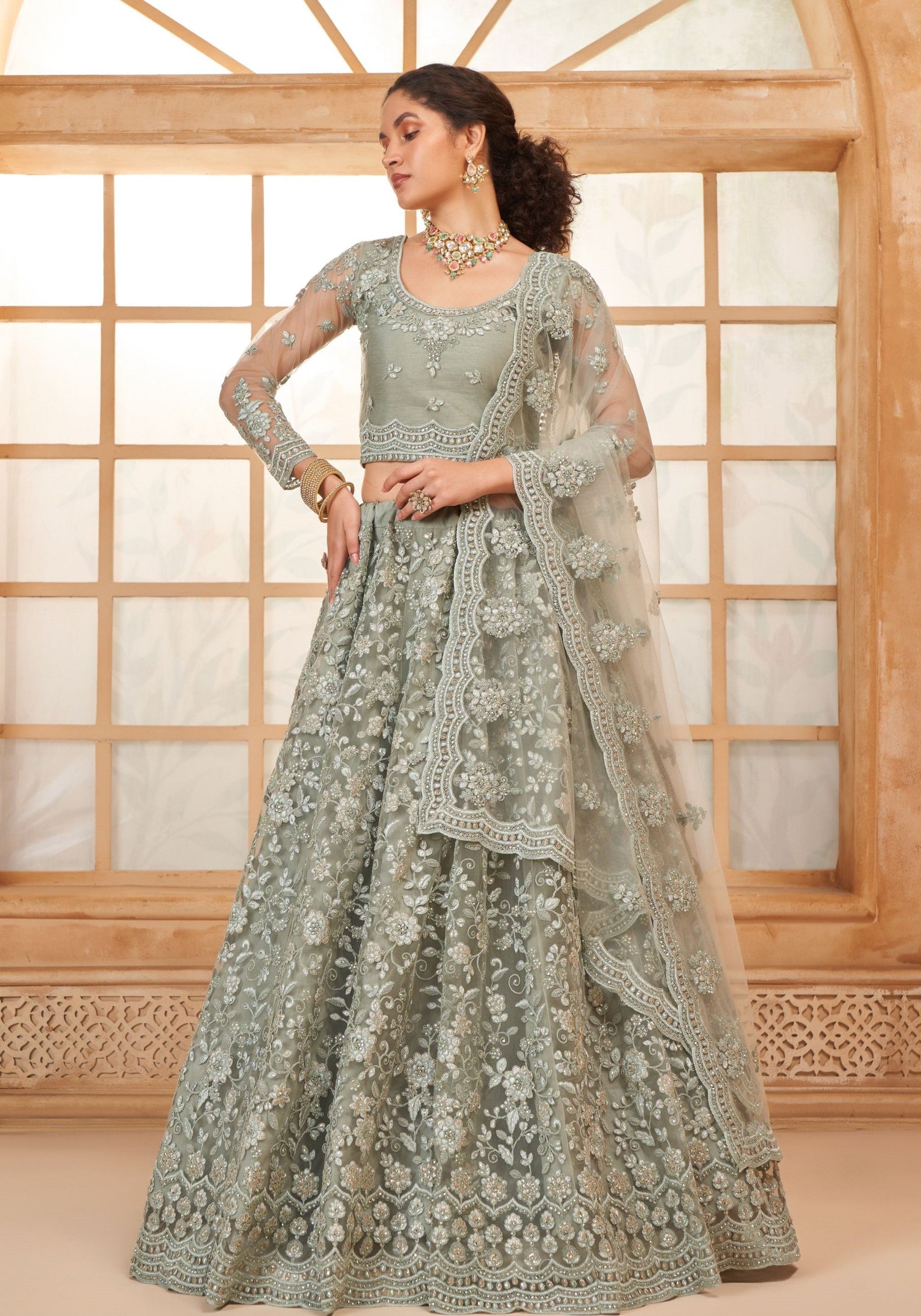 Looking for something a little out of the ordinary? We've got just the thing! This Grey Heavy Cording Embroidered Net Reception Lehenga Choli is perfect for those who want to make a statement. With its beautiful sequins embroidery and vibrant grey color, this lehenga is sure to make you the center of attention. A bridesmaid would look gorgeous in this outfit. It is suitable for any occasion, such as weddings, receptions, engagement parties, and sangeets. So don't wait any longer, add this Grey Heavy Cording Embroidered Net Reception Lehenga Choli to your wardrobe today!