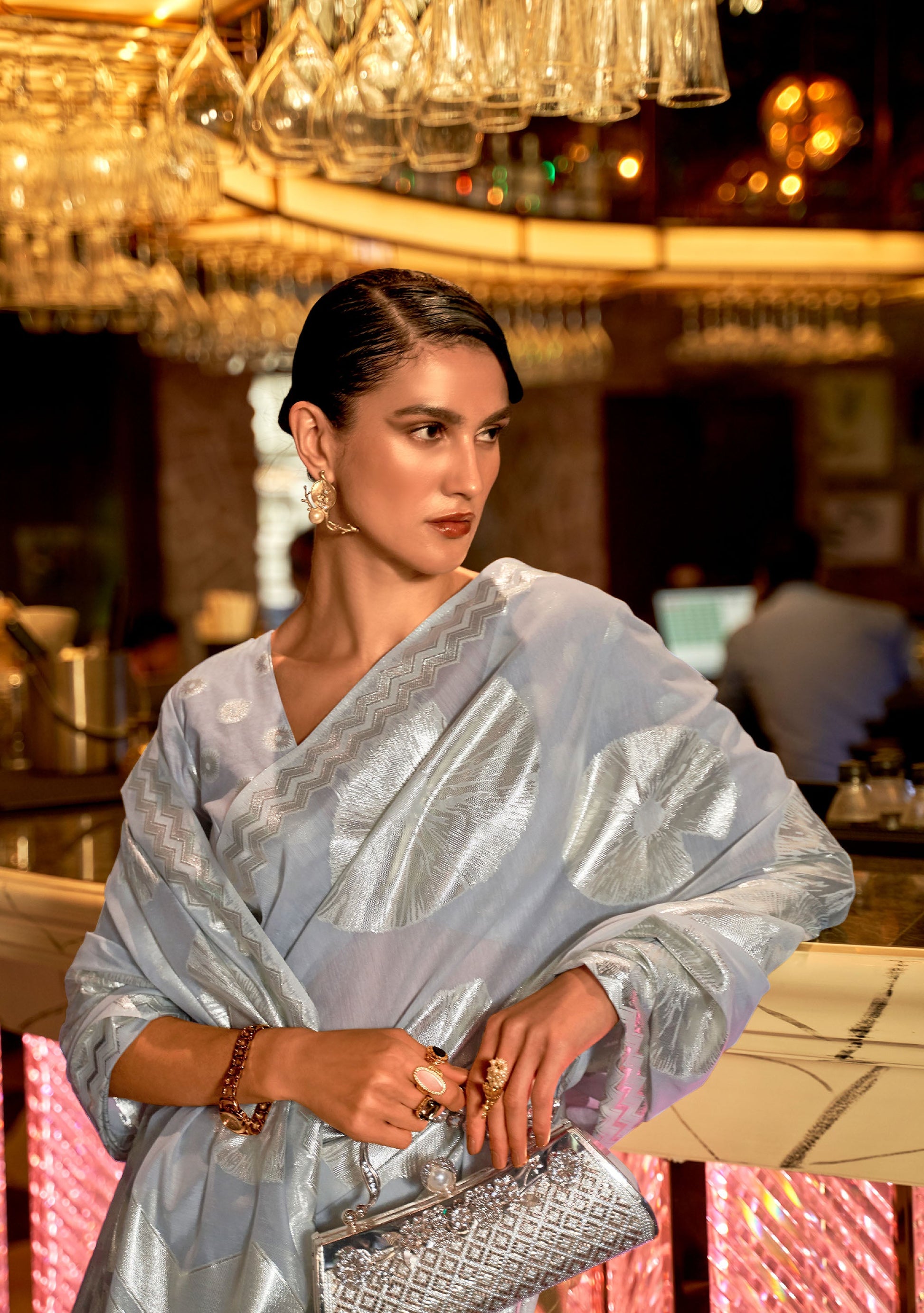 Grey Krown Silk Modal Zari woven saree