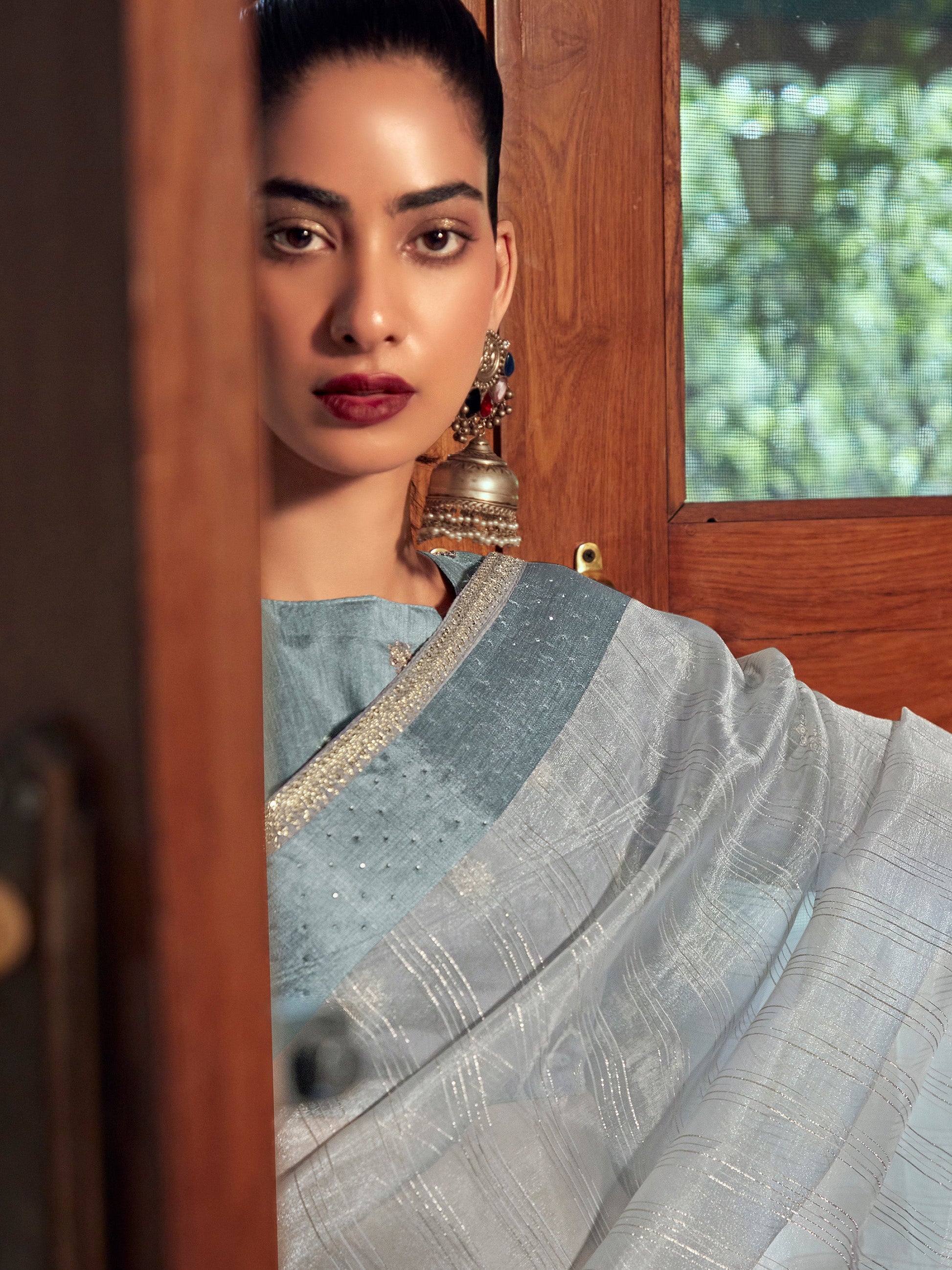 Organza Woven Saree. Pair them with matching accessories to look trendy and gorgeous. Organza Fabric With Jari & Embroidered Blouse With Crystal, Tassels.