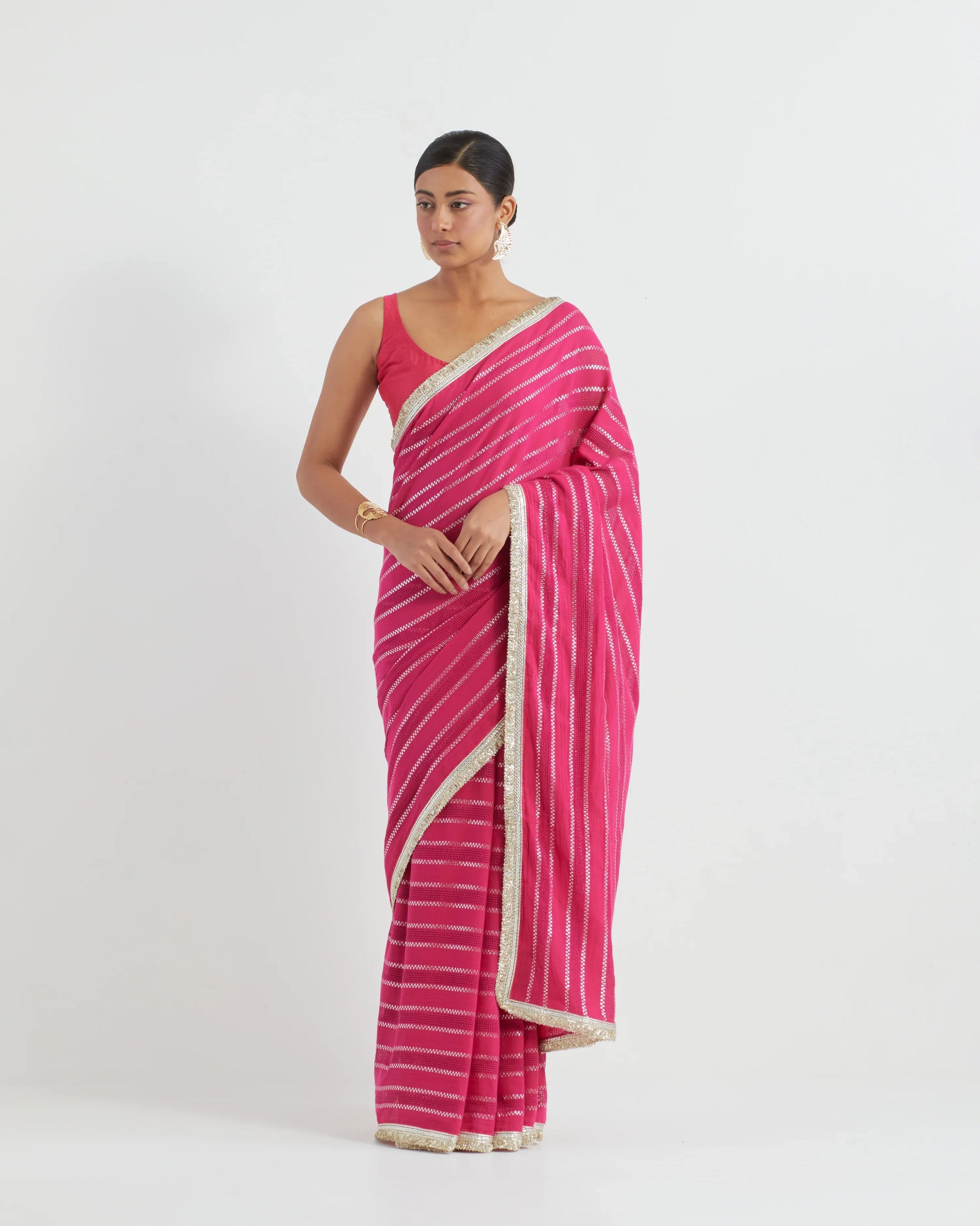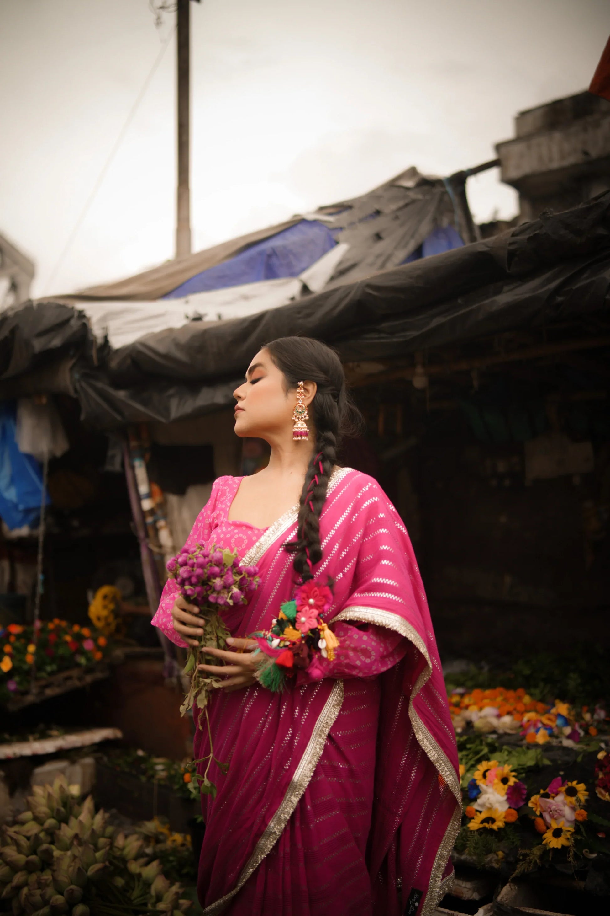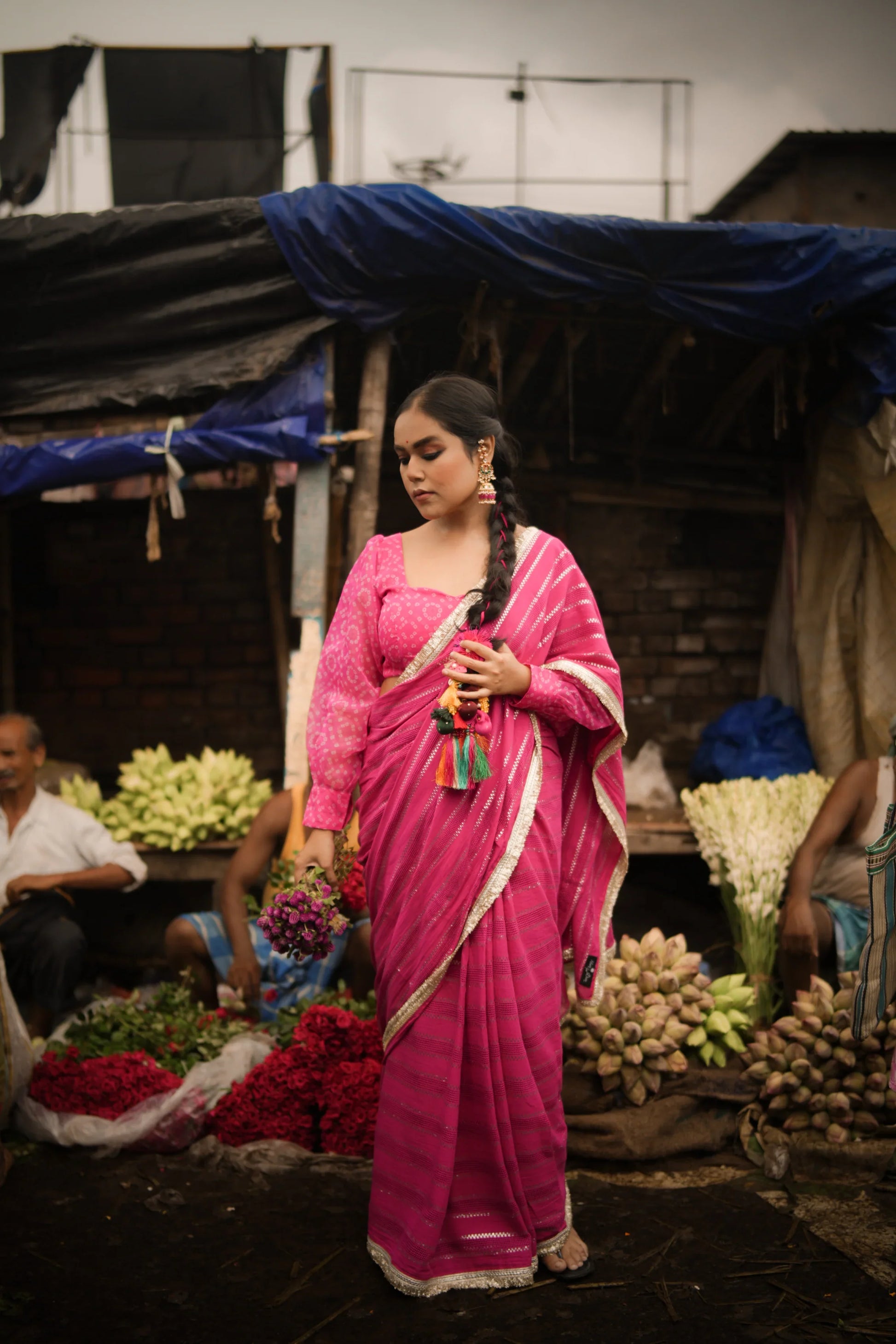 Blouse Piece: 1MTR unstitched matching Fuschia colour.