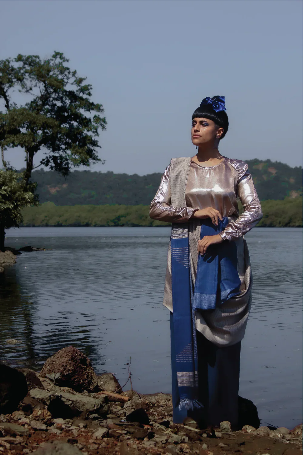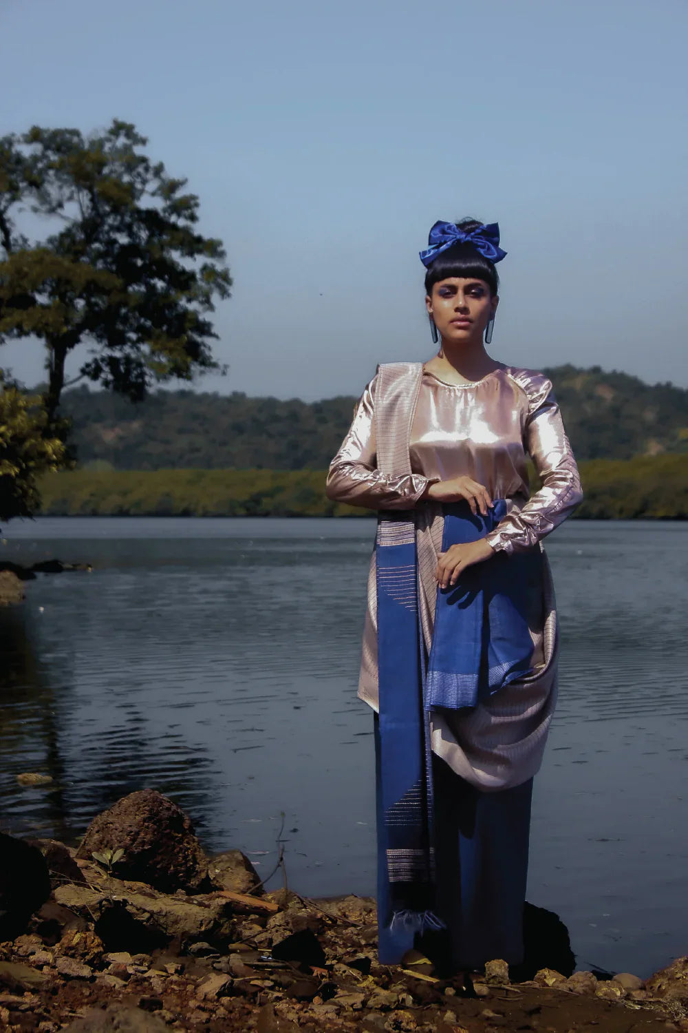 Discover elegance in our Handloom Beige Mugha Silk Saree, a seamless blend of tradition and contemporary flair. Adorned with woven Navy Blue stripes, this saree emanates subtle charm. Embrace a distinctive draping style inspired by the provided picture for a modern, chic look. The luminous beige Mugha silk infuses sophistication, offering a contemporary twist to the timeless saree. Elevate your fashion with this unique piece that effortlessly marries traditional craftsmanship with a modern aesthetic, redefining your saree style in an unprecedented manner.