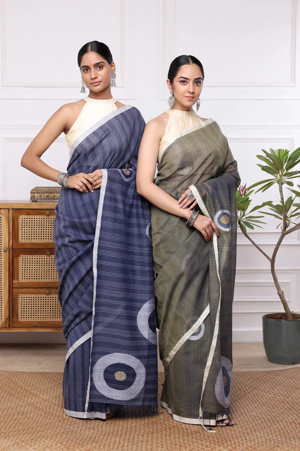 Discover unique elegance with our Handloom Blue Stripes Mul Cotton Jamdani Eye Ball Saree. This saree features distinctive Jamdani 'eye ball' motifs intertwined with classic blue stripes, showcasing exceptional craftsmanship. Made from soft mul cotton, it ensures all-day comfort and breathability. Perfect for any occasion, this saree combines traditional artistry with modern style, making it a standout addition to your wardrobe.