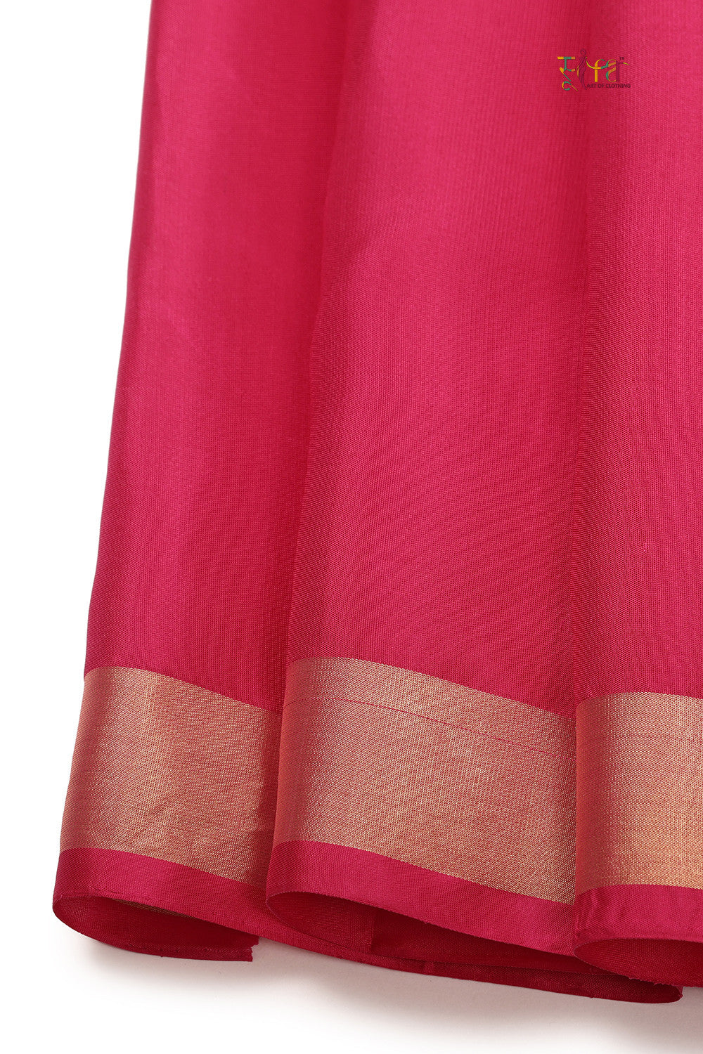 Immerse yourself in the sheer elegance of our exquisite Bright Yellow silk saree, adorned with delicate Silk Thread Motifs, exuding a captivating blend of modernity and sophistication. The contrasting Hot Pink Colour Pallu adds a touch of intrigue, making it the perfect choice for any evening gathering. Prepare to leave an unforgettable impression as you grace the occasion with this remarkable saree that effortlessly captures attention and admiration.