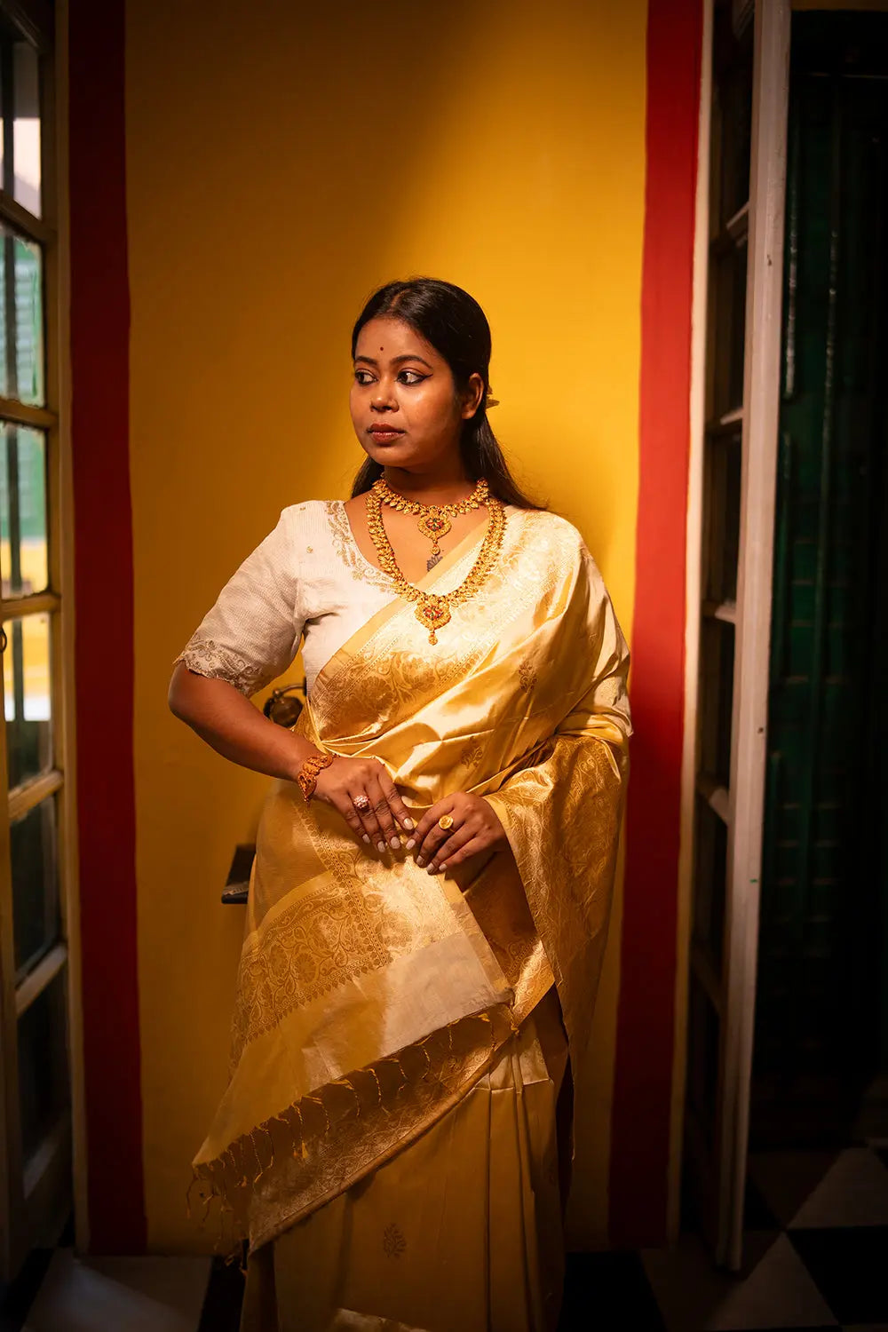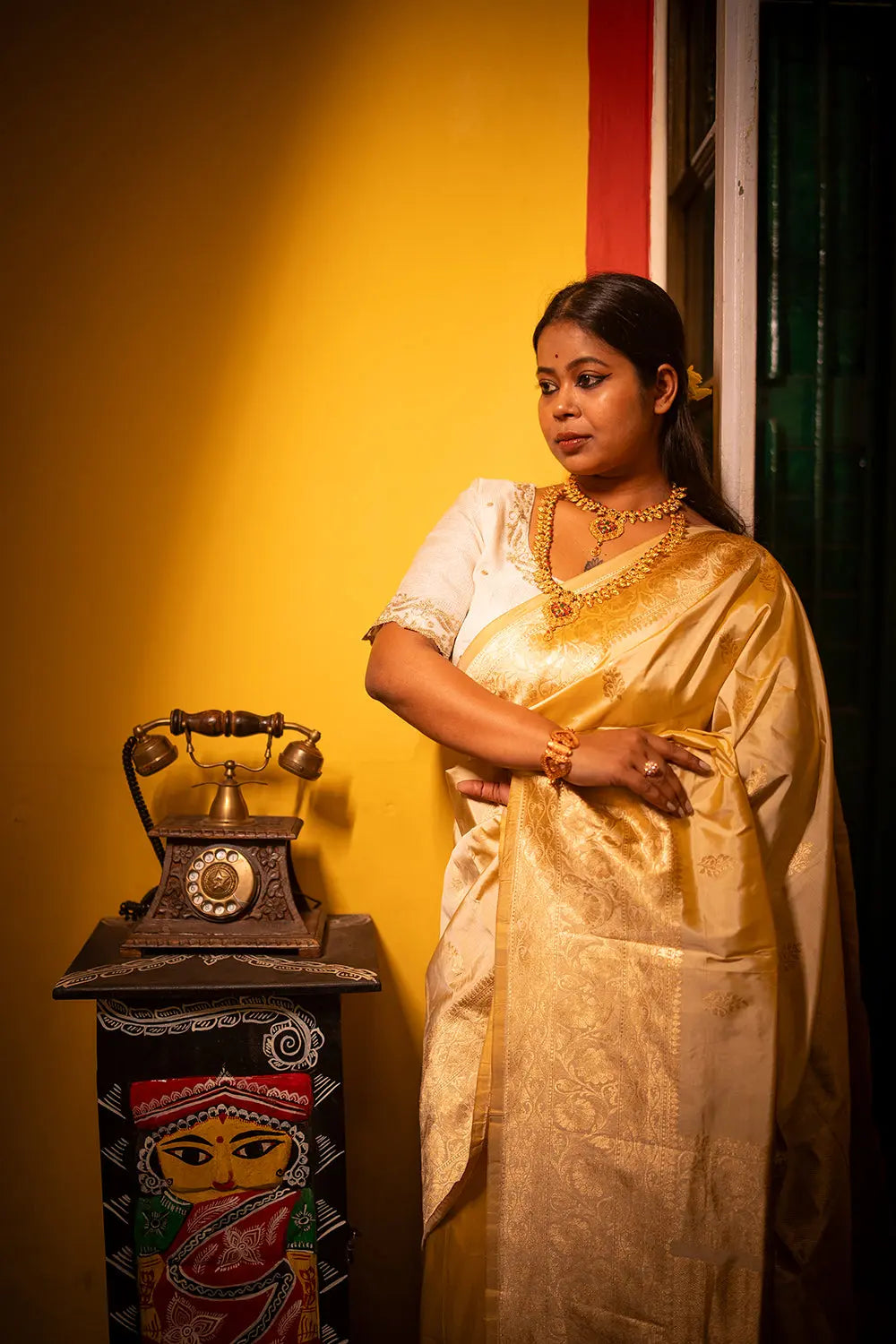 Handloom Cream Pure Silk Banarasi Saree
