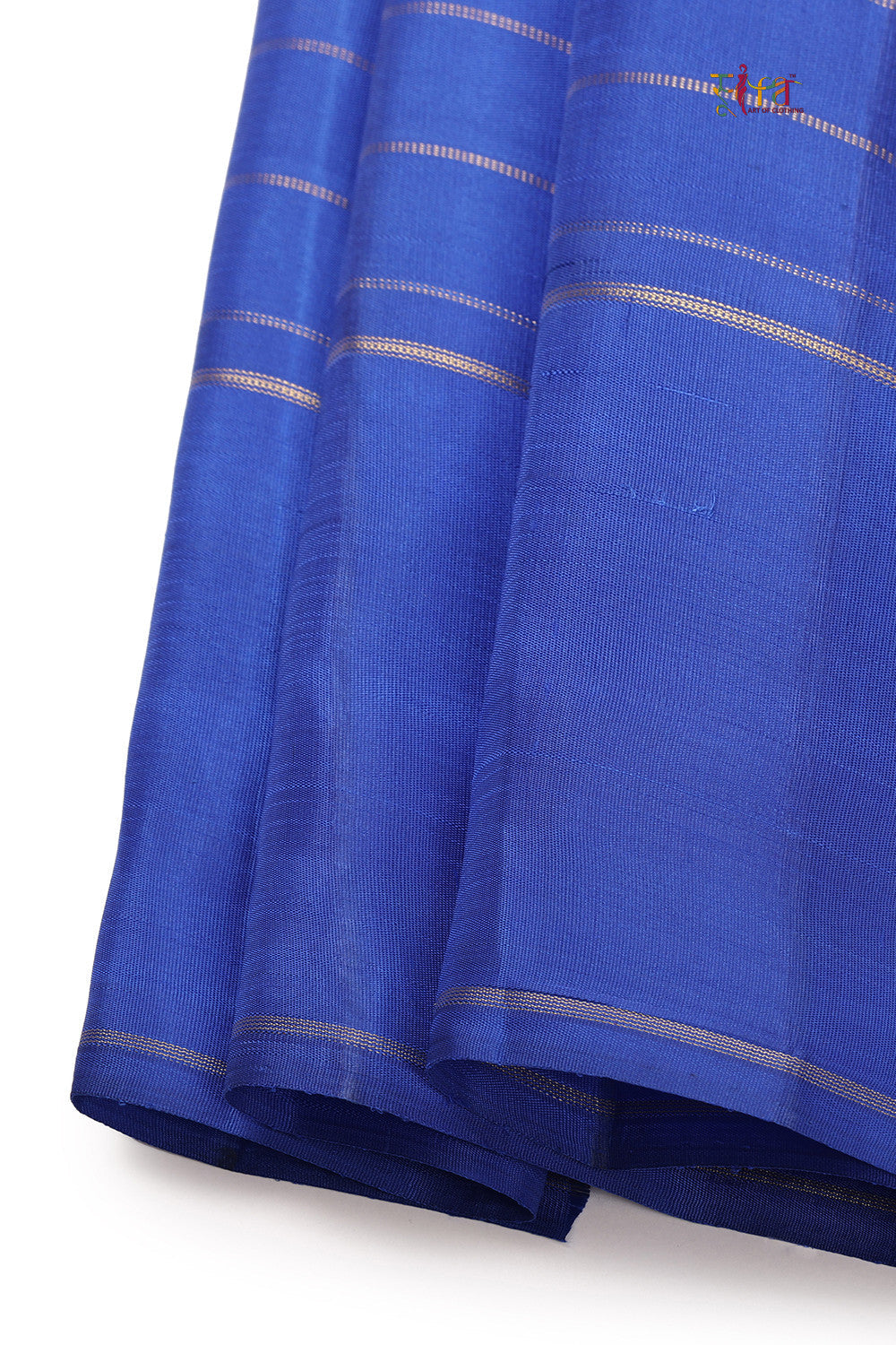 Experience the enchantment of our Exotic Green Zari check body with Blue Border Kanjivaram saree. Meticulously handwoven by our finest artisans, this exquisite piece showcases unparalleled intricacy and dedication. Perfect for wedding or any ethnic occasion, it exudes timeless elegance. Crafted with enduring silk, this saree ensures longevity and embraces your traditional charm. Celebrate your festivities with a touch of royal sophistication through its regal black checks.