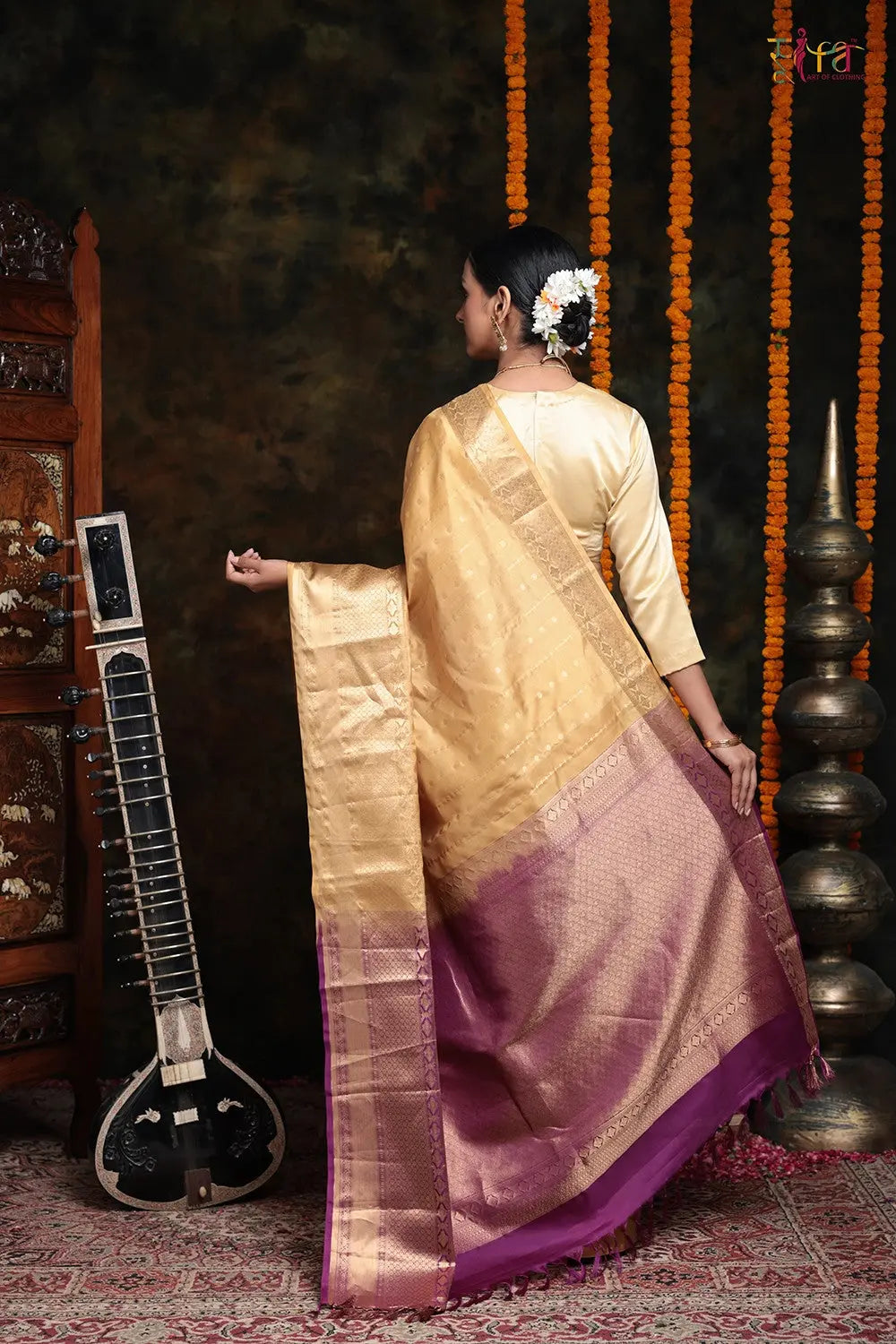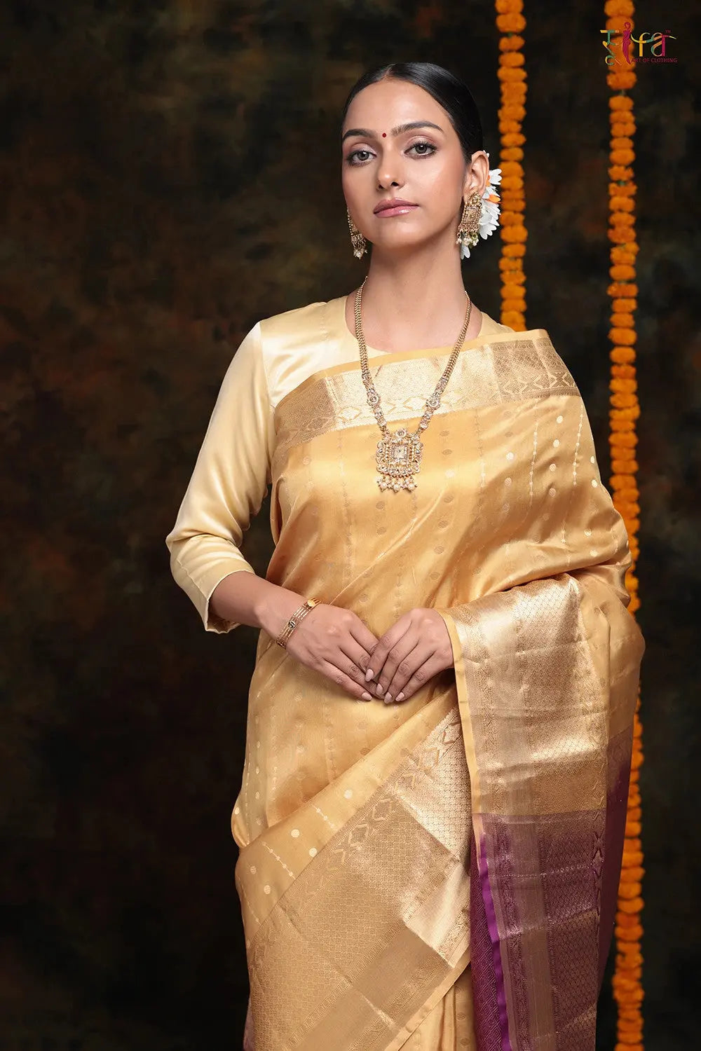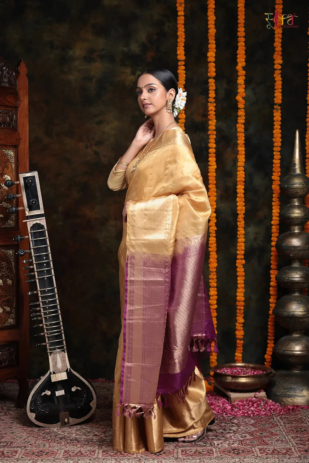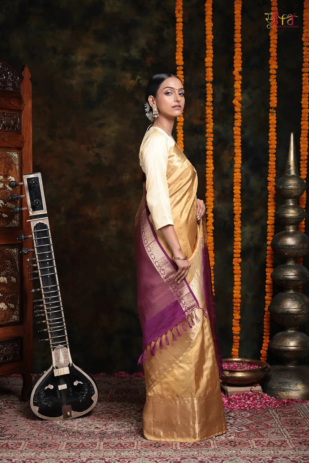 Handloom Gold Colour Pure Silk With Contrasting Violet Pallu