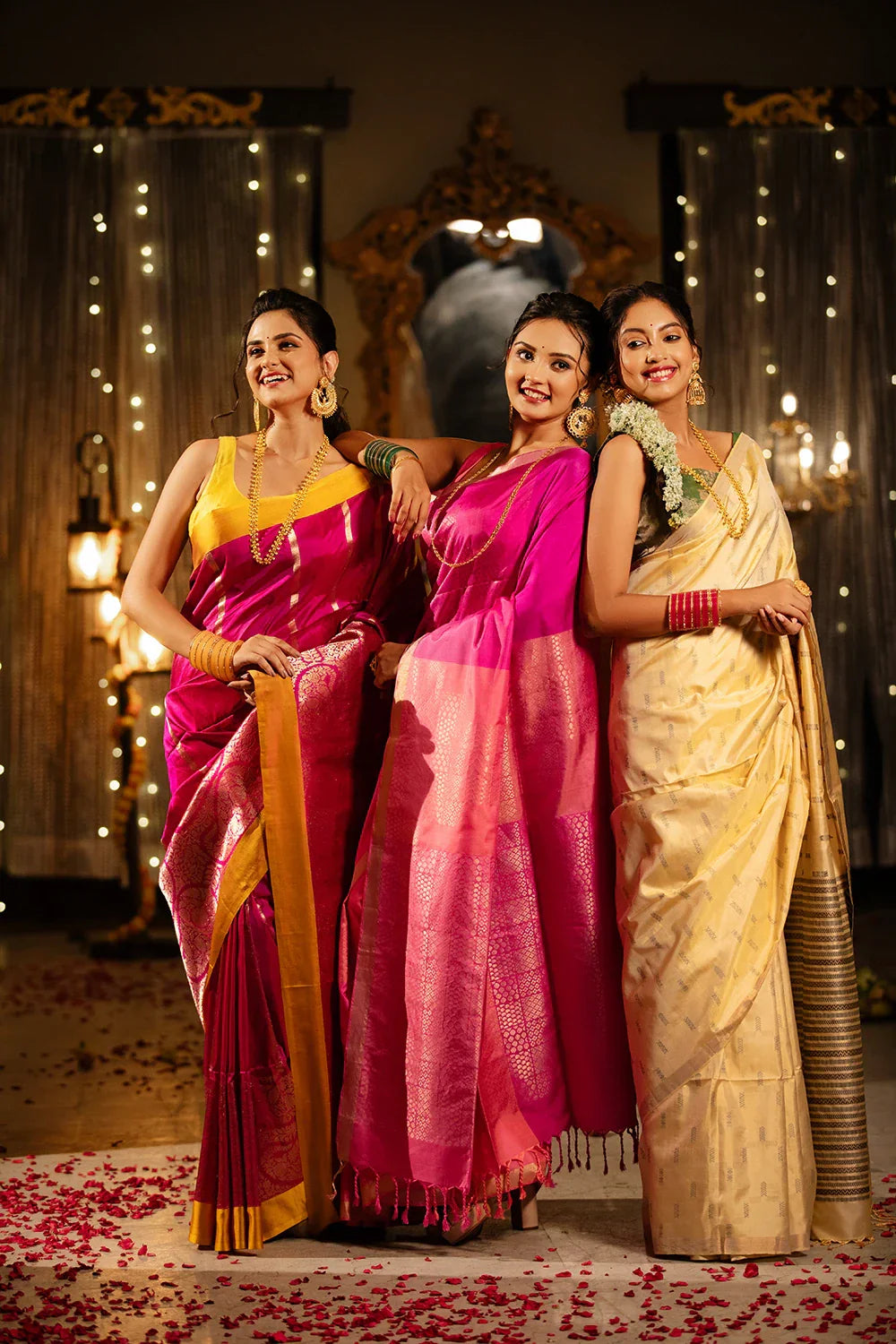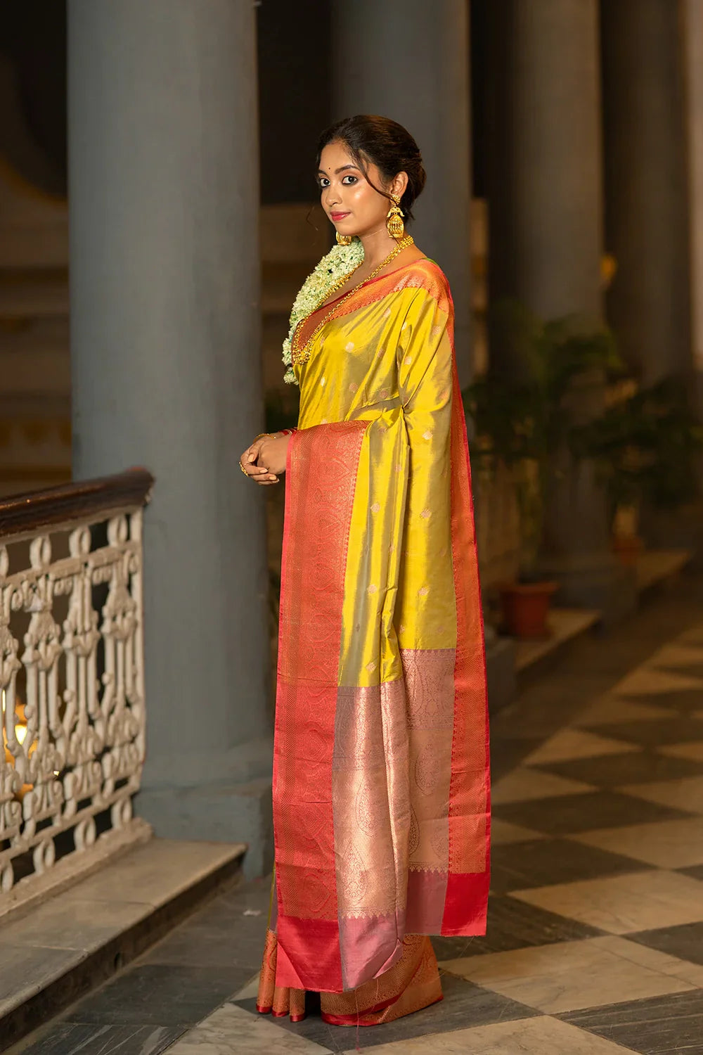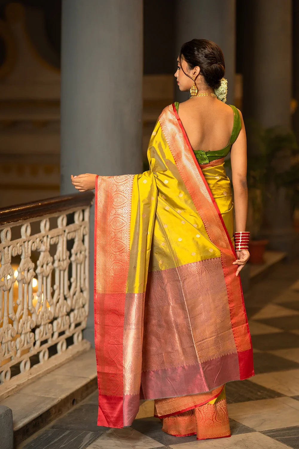 Handloom Green & Red Pure Silk Zari Banarasi Saree