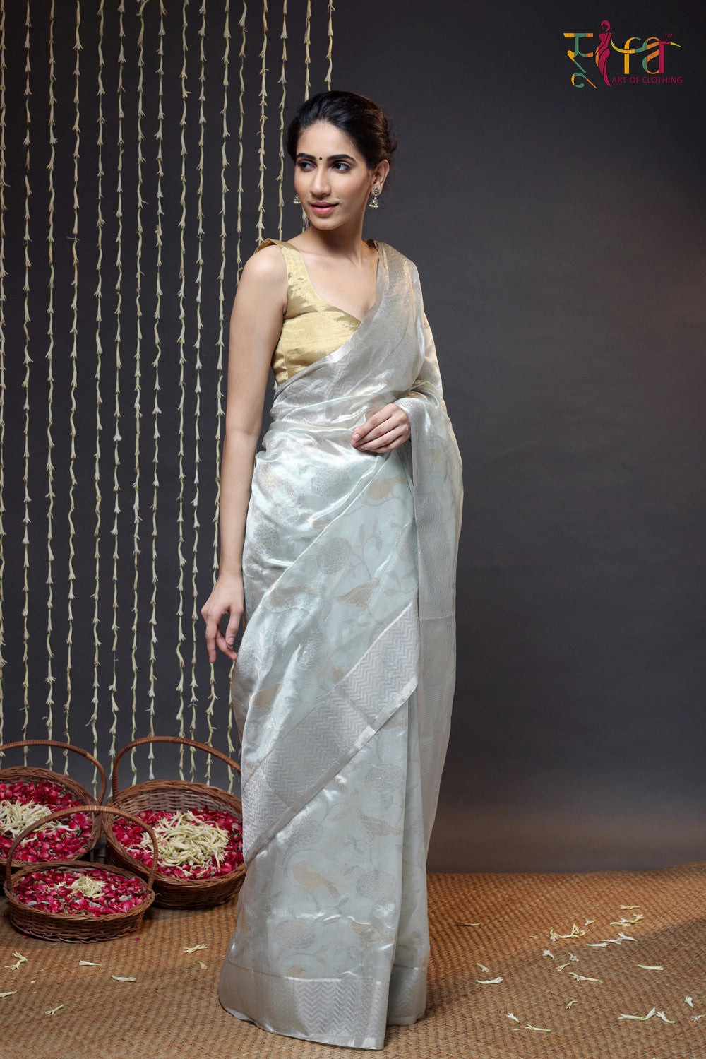 Handloom Grey Pure Silk Chanderi Saree