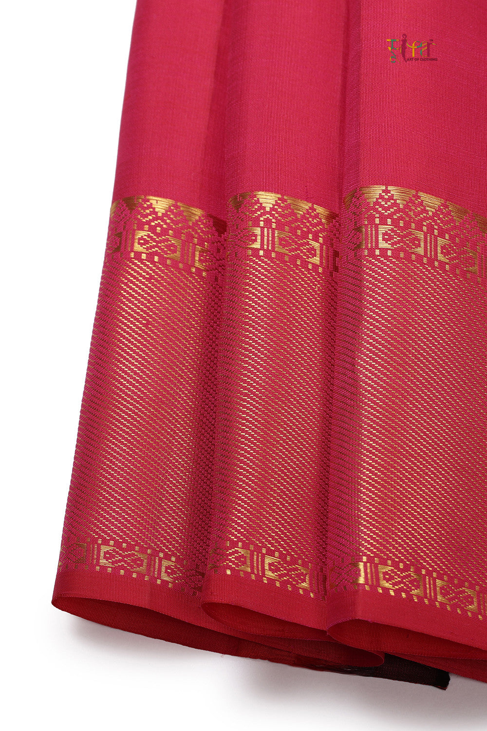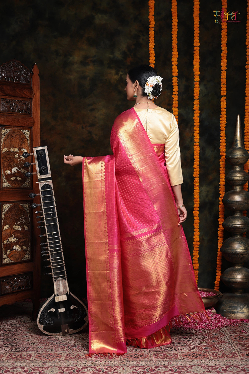 Handloom Hot Pink Kanchipattu With Gold Zari Checks