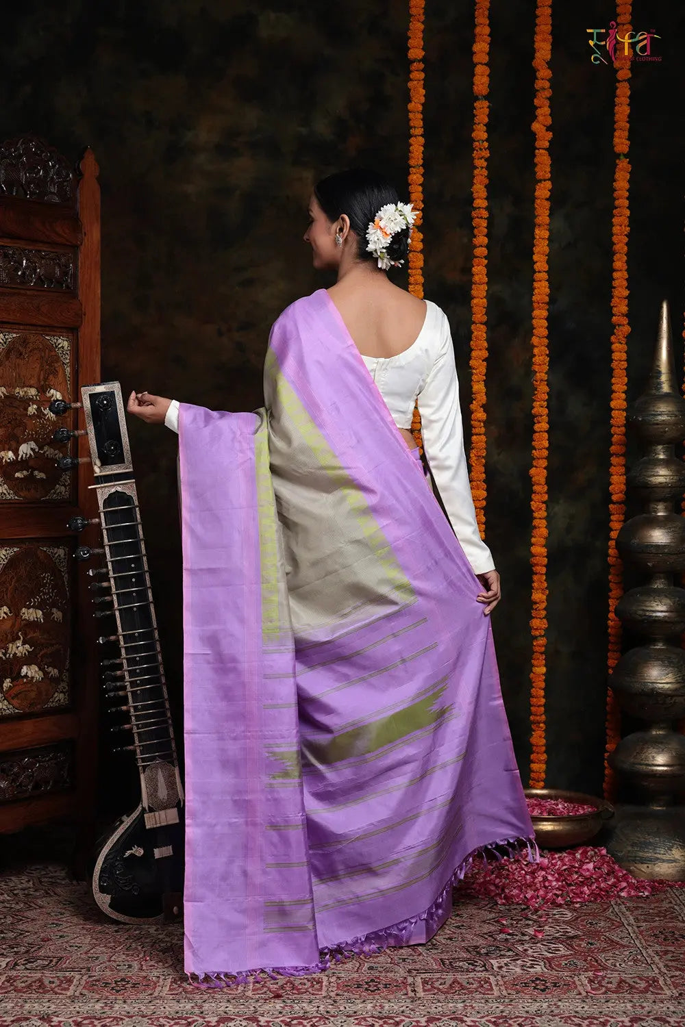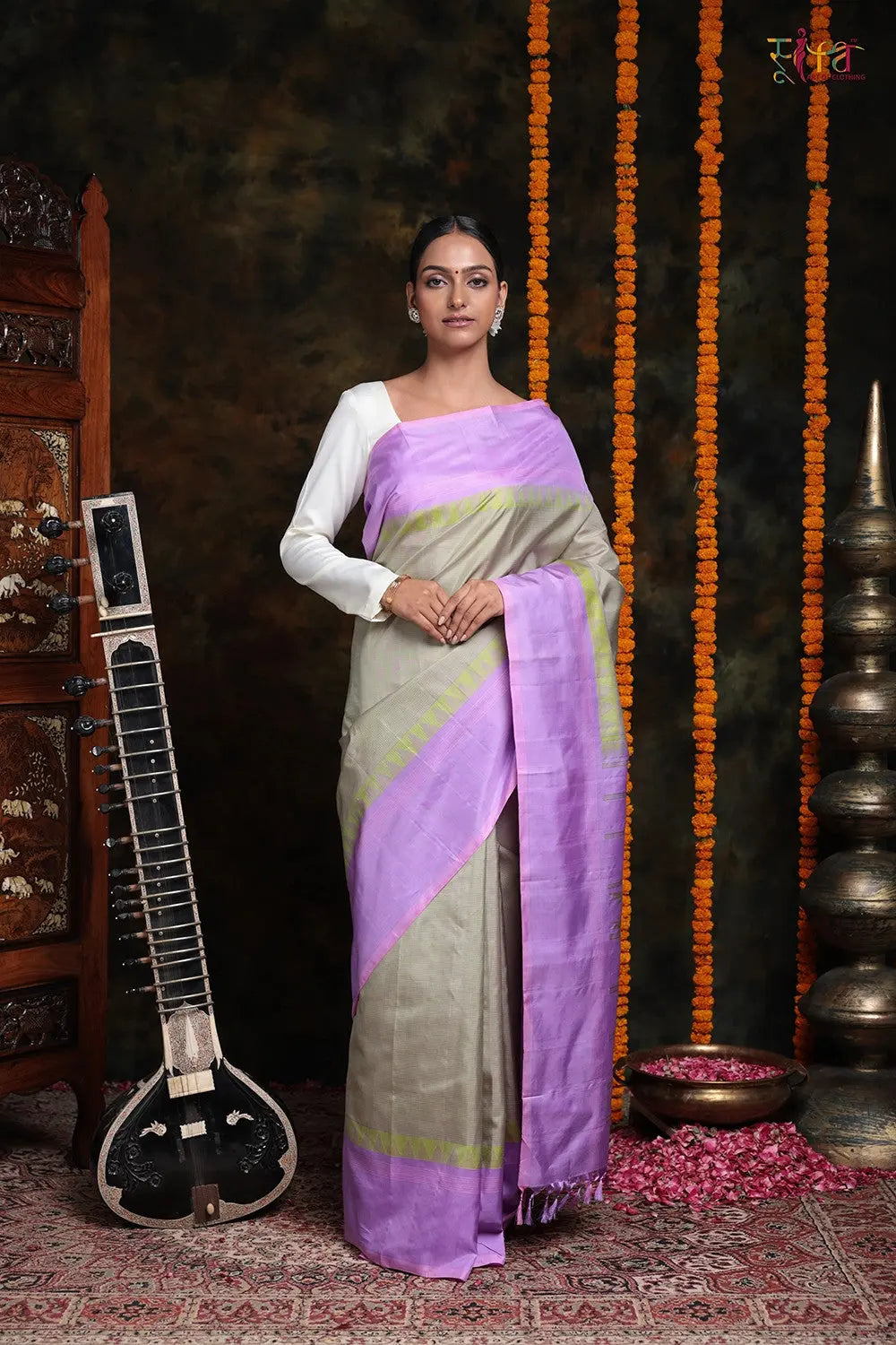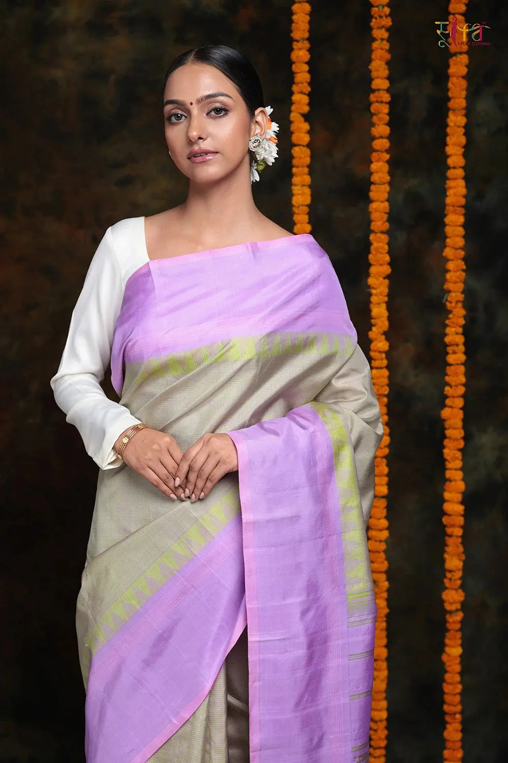 Handloom Lavender & Lime Green Check Pure Silk Saree