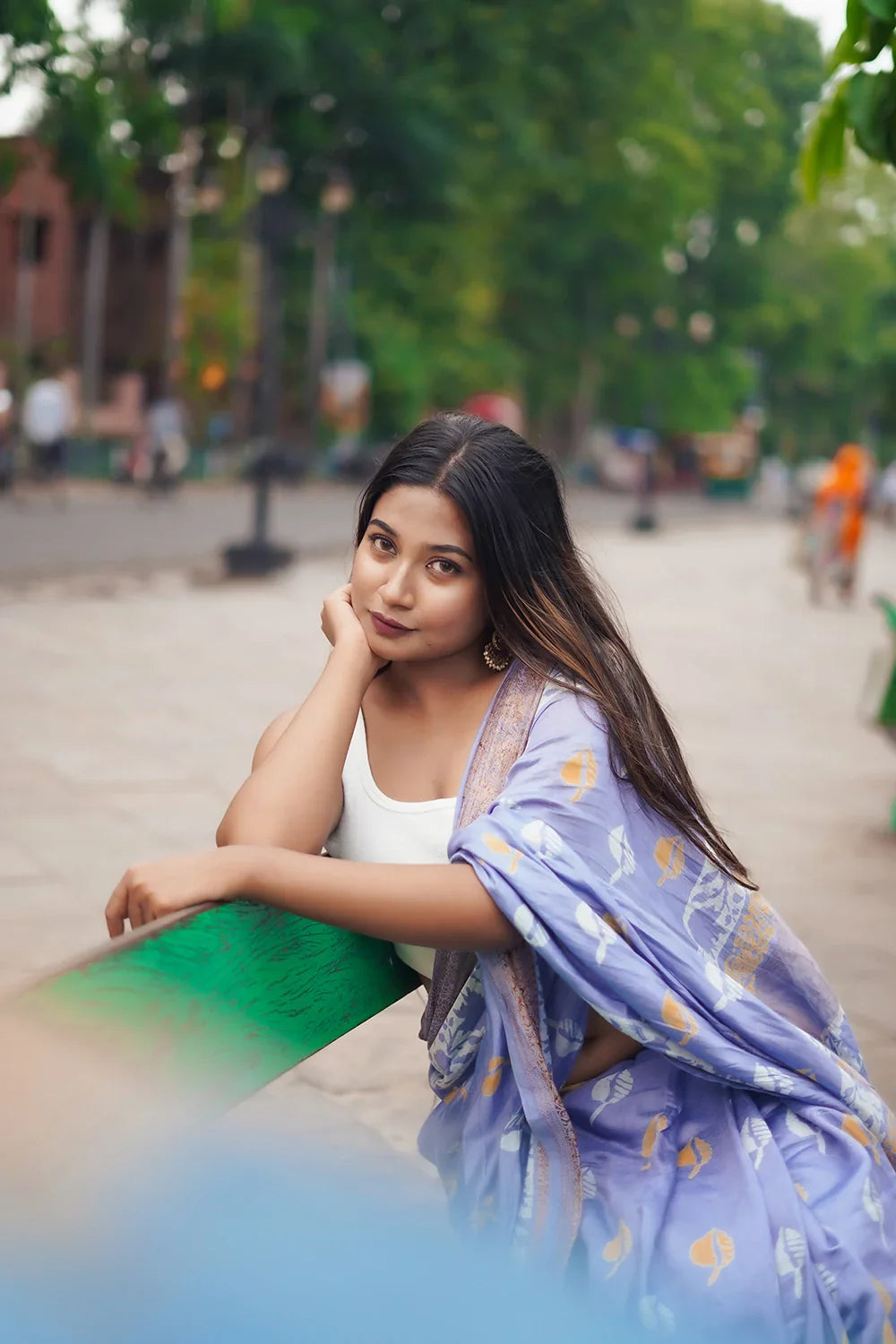 Handloom Lavender Purple Modal Cotton Hand Block Print Saree